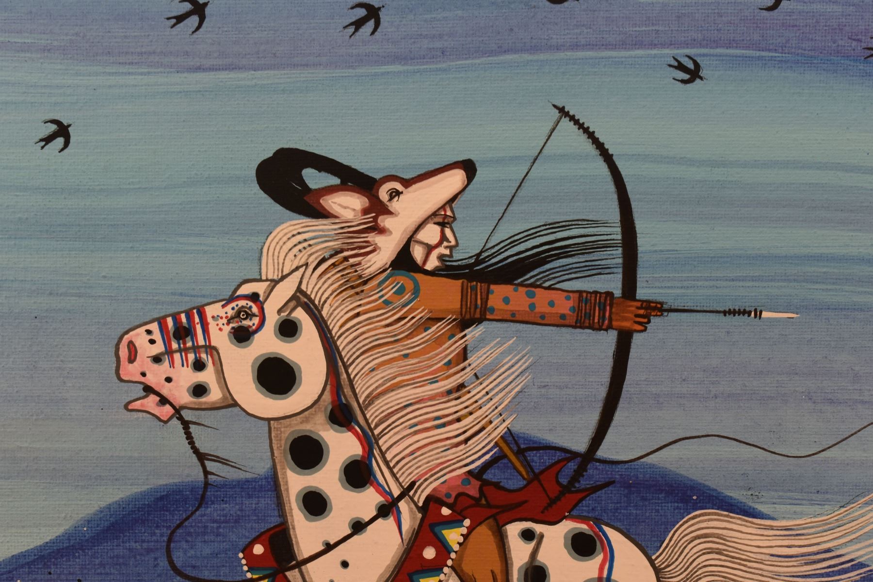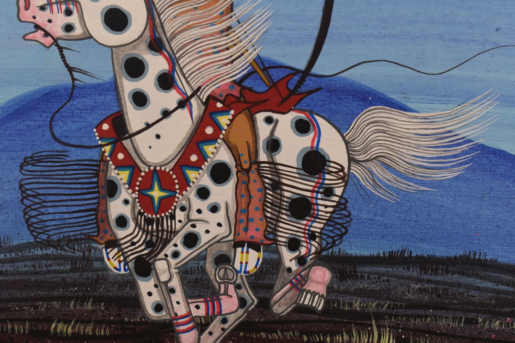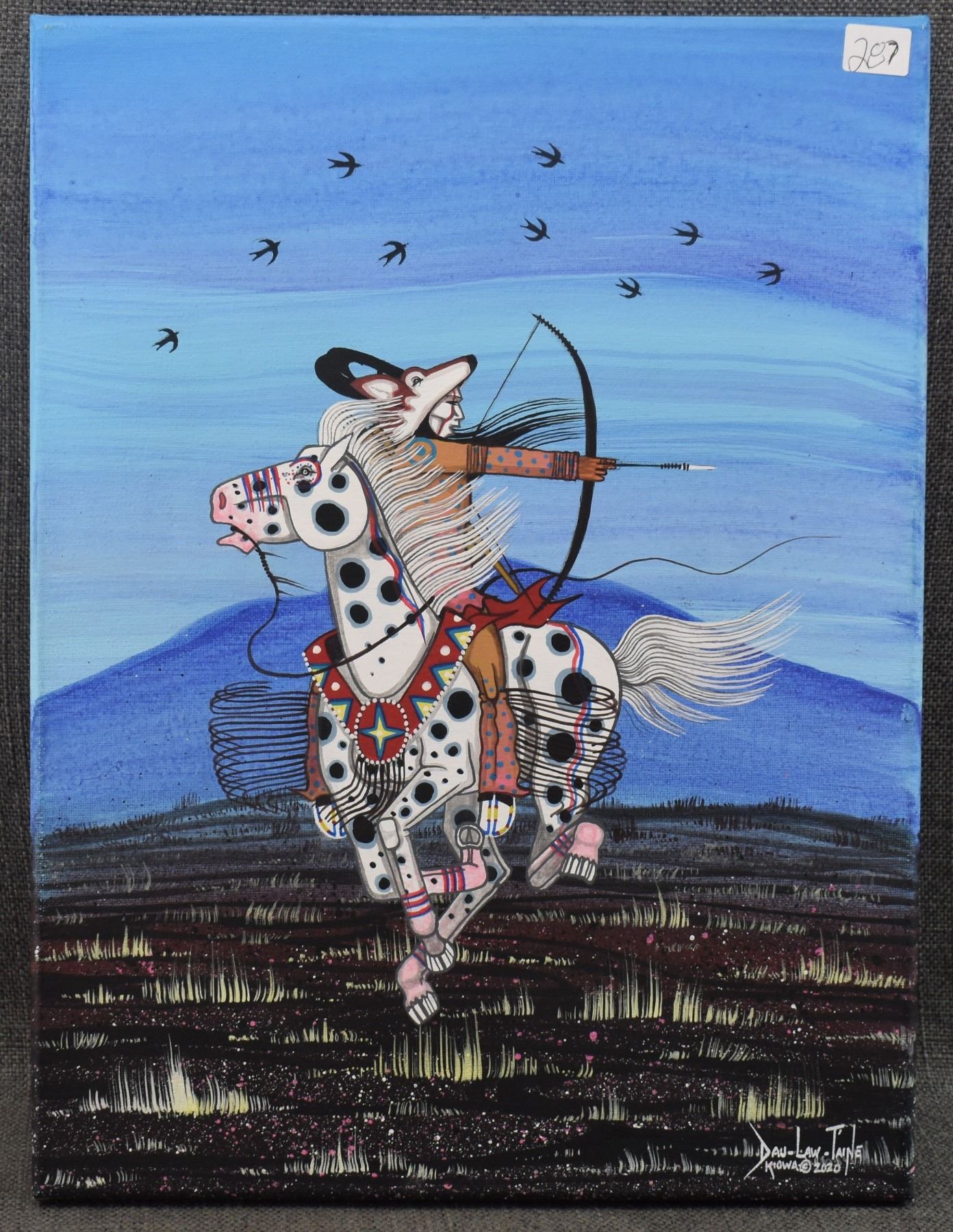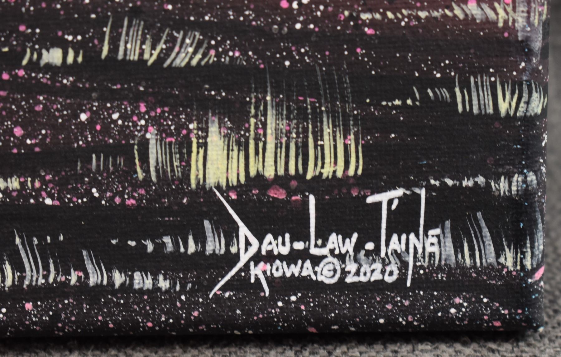 2020 kiowa. Original on canvas native warrior. Signed Dau-Law-Taine. 16'' x 12''
