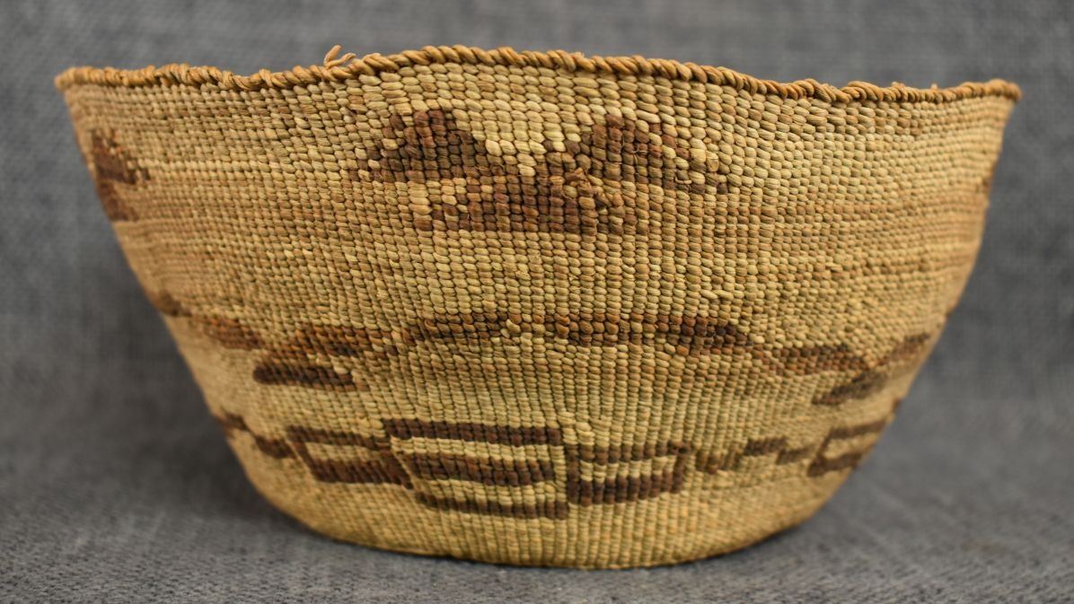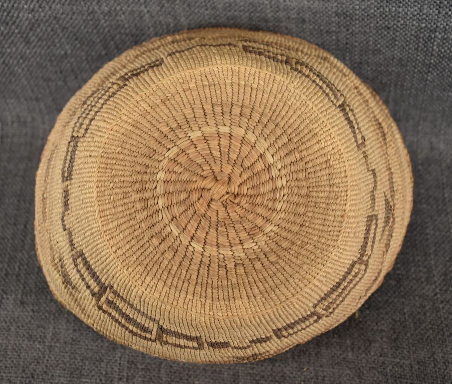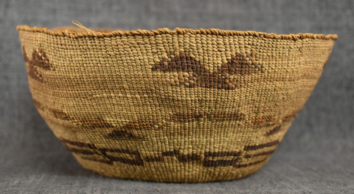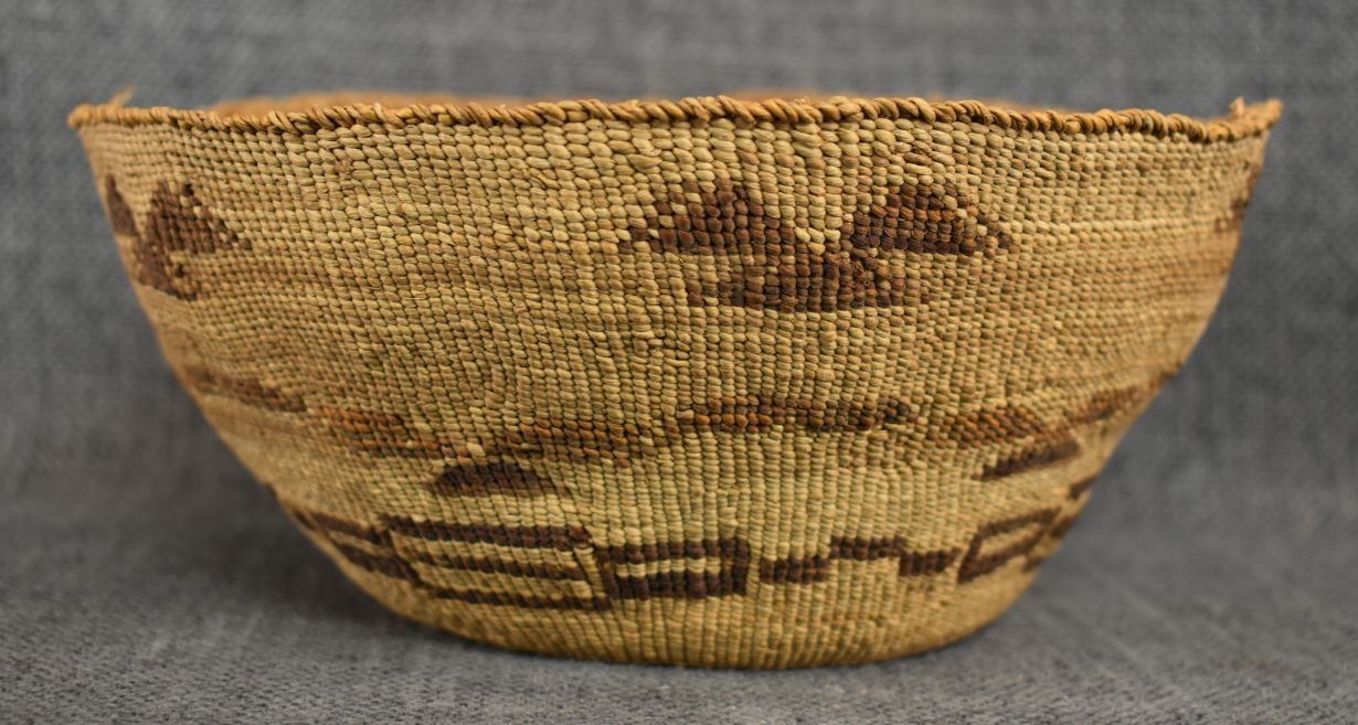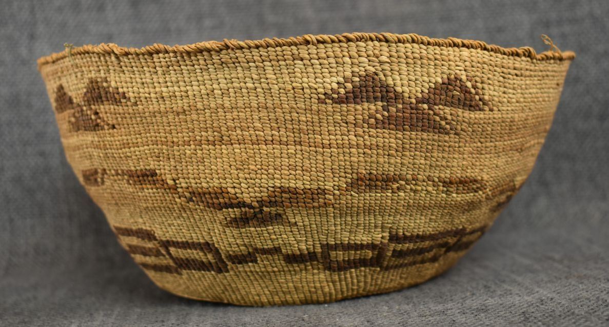 1920's Klamath . Hand woven geometric design basketry bowl , no breaks or splits. 3.5'' x 7.5''