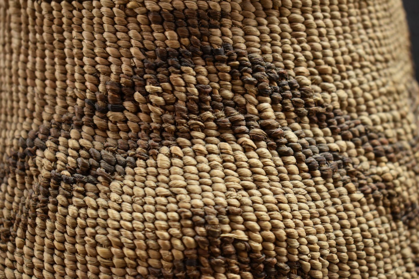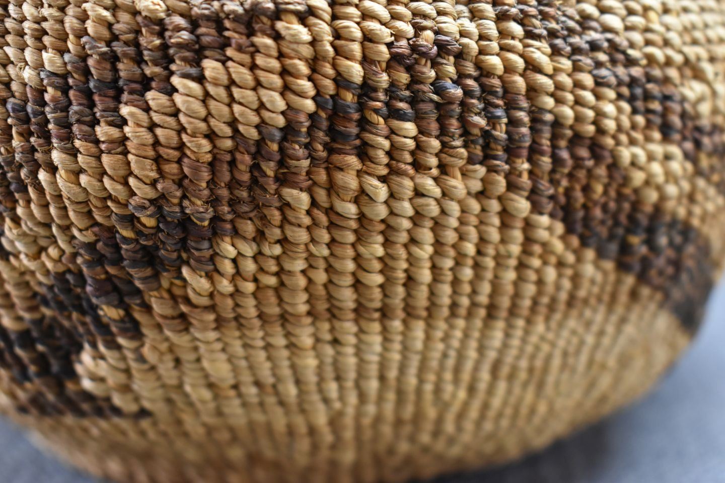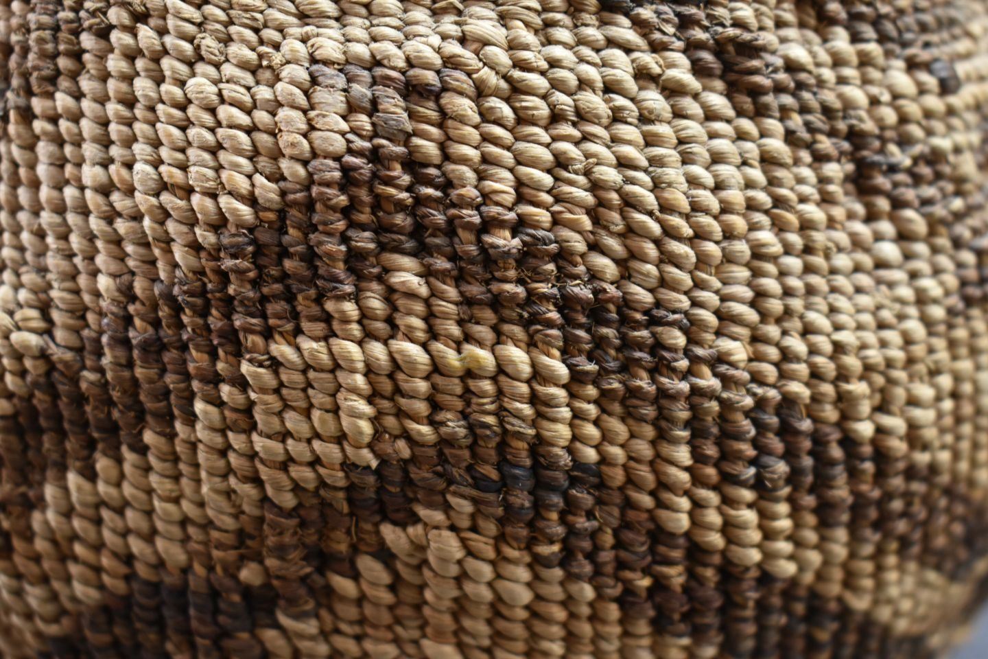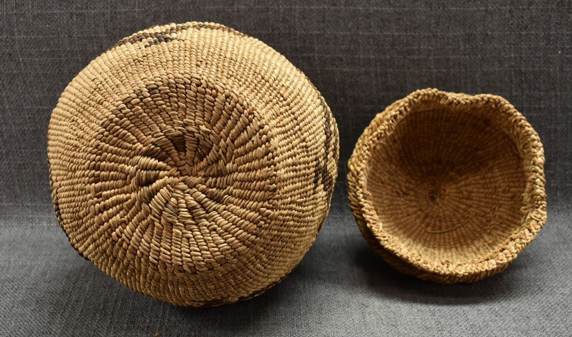 1900's Klamath. Hand woven design lidded basket. 10'' x 7''