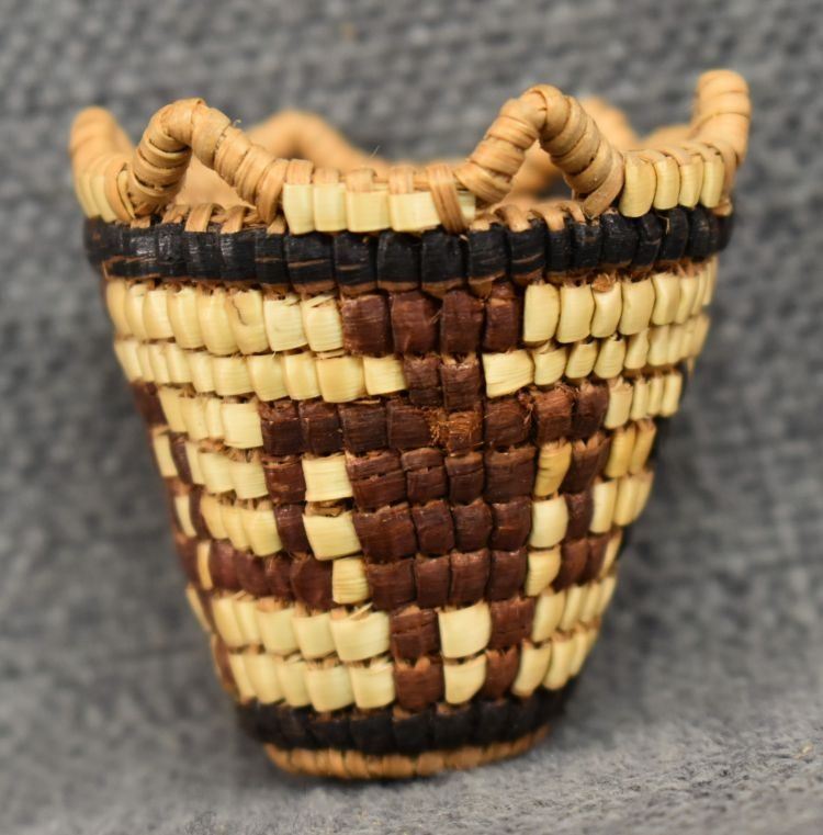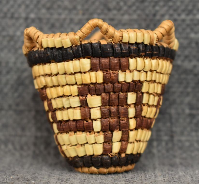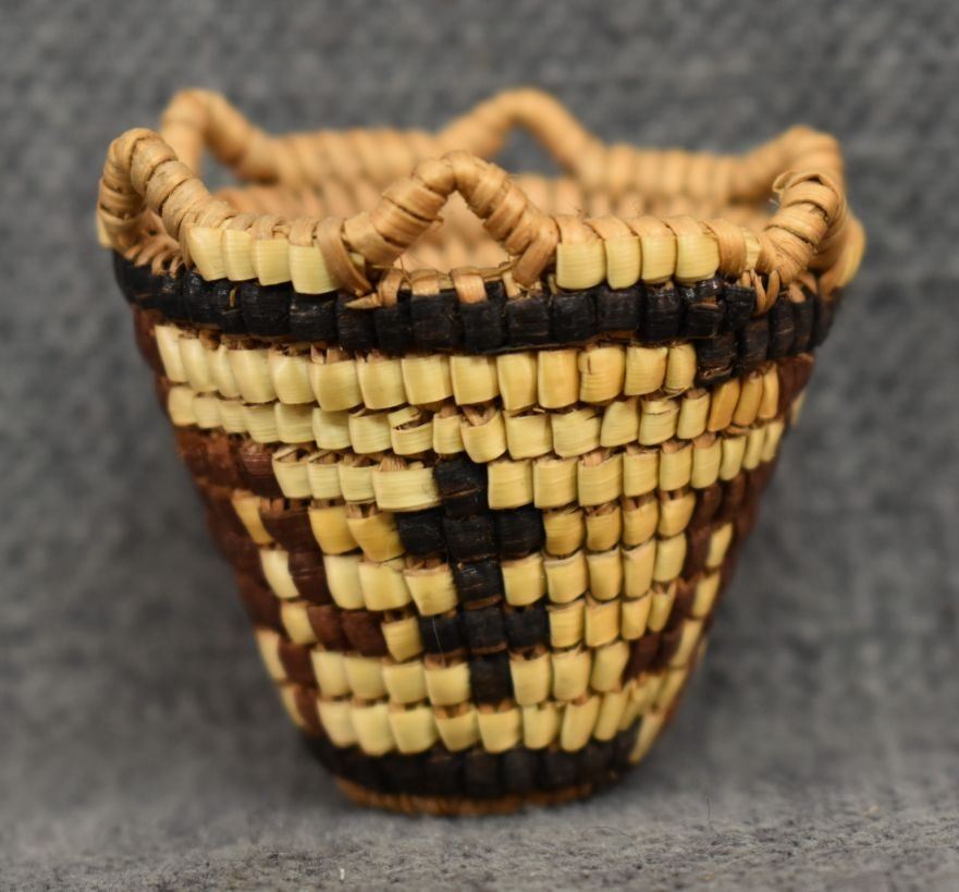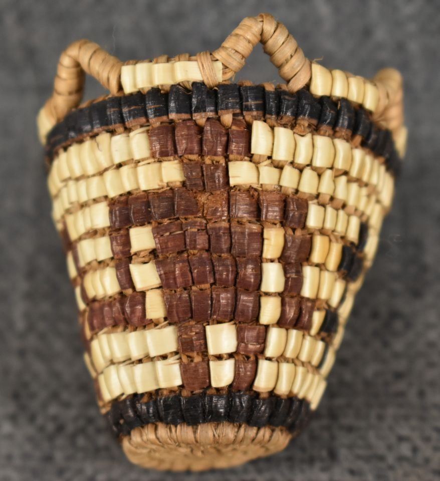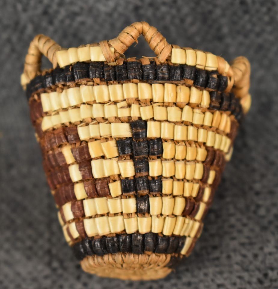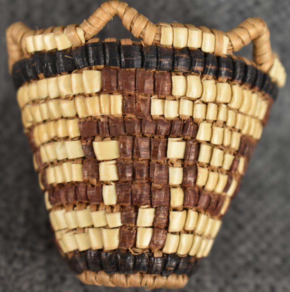 1960's Klickitat. Hand woven friendship design basket. 2'' x 2''