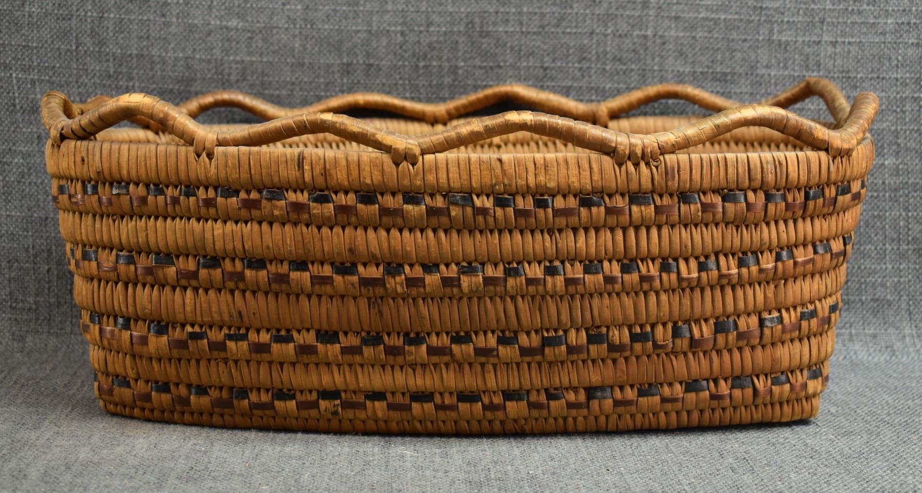 1930's Klickitat, hand woven polychrome banded design 5.5" x 7.25" x 14.5"