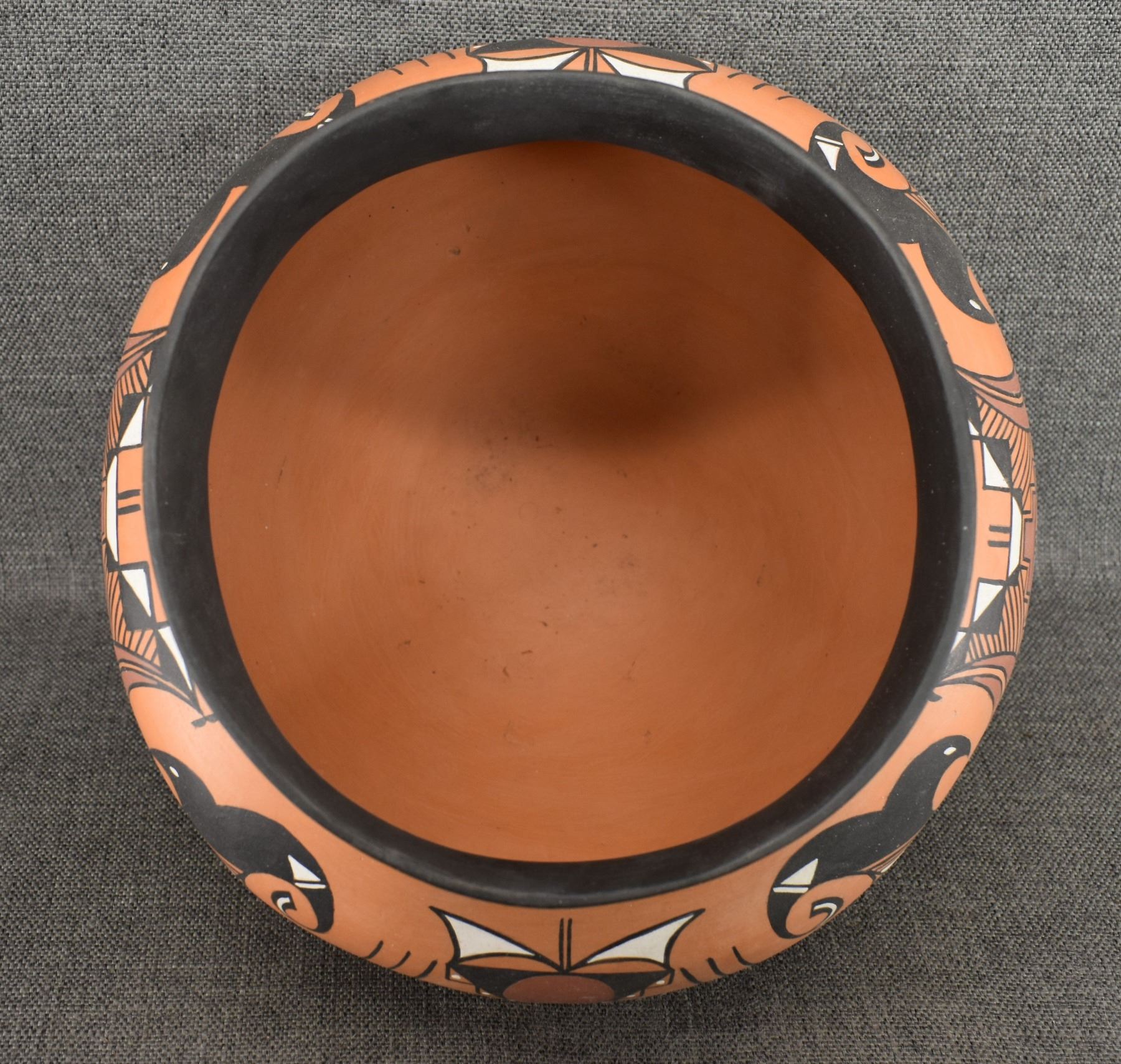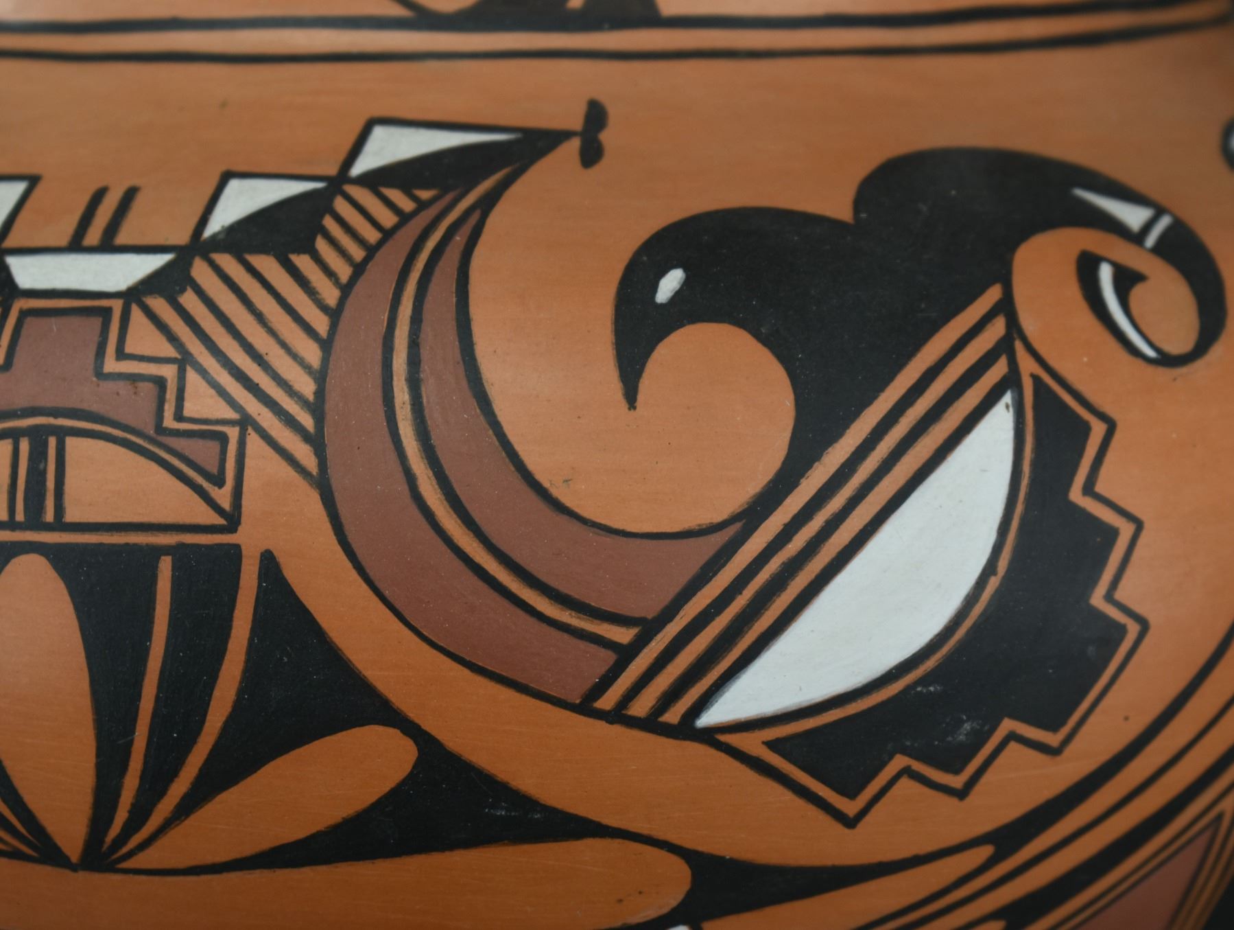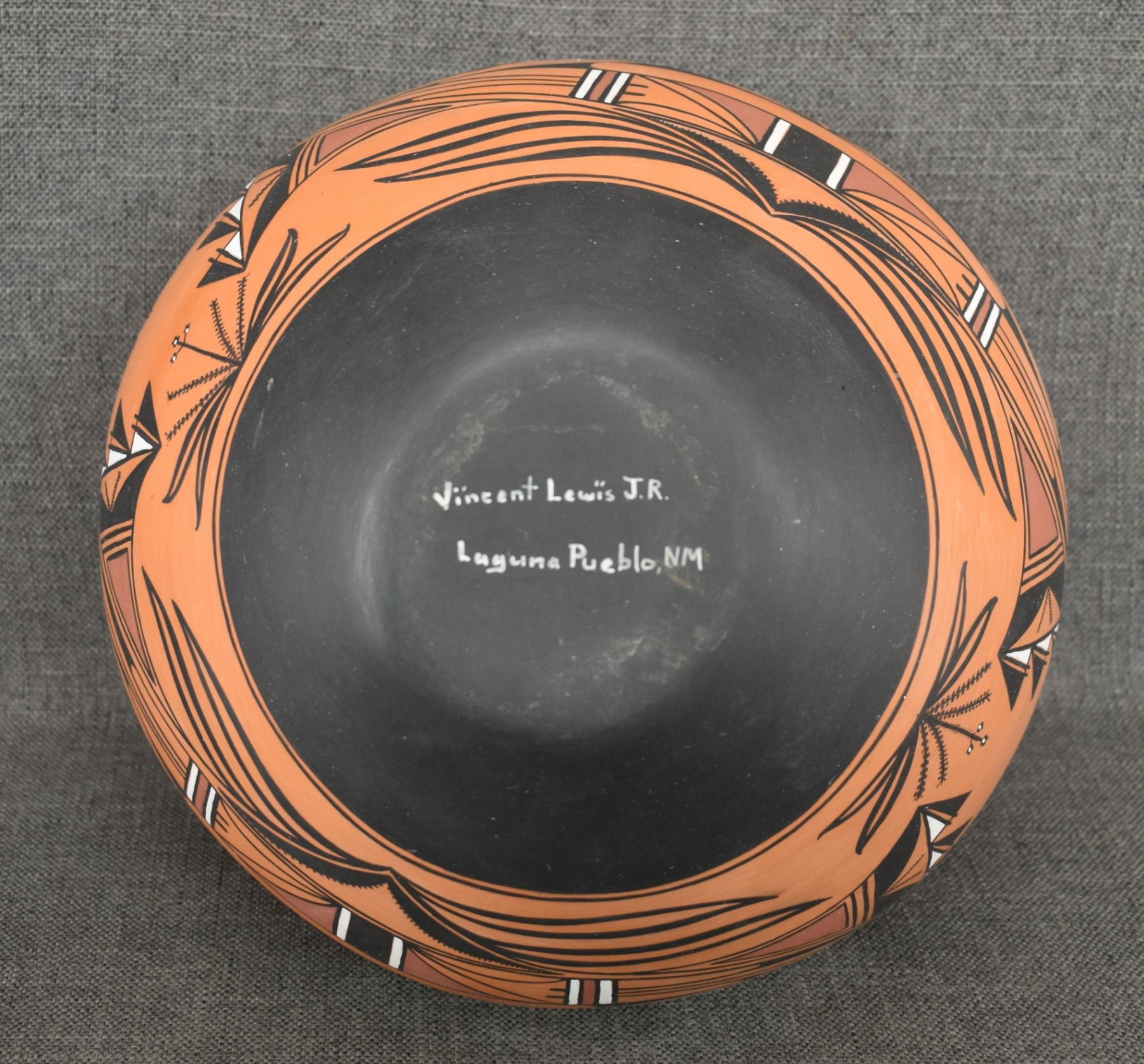 1990-2000's Laguna, hand coiled with polychrome painted design by Vincent Lewis Jr. 10.25" x 11.5"