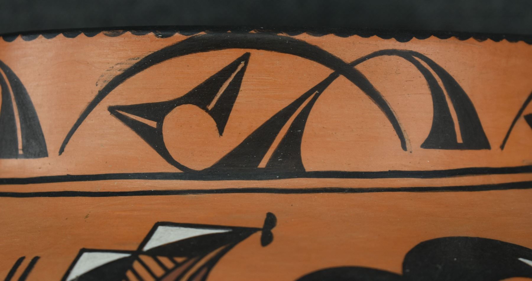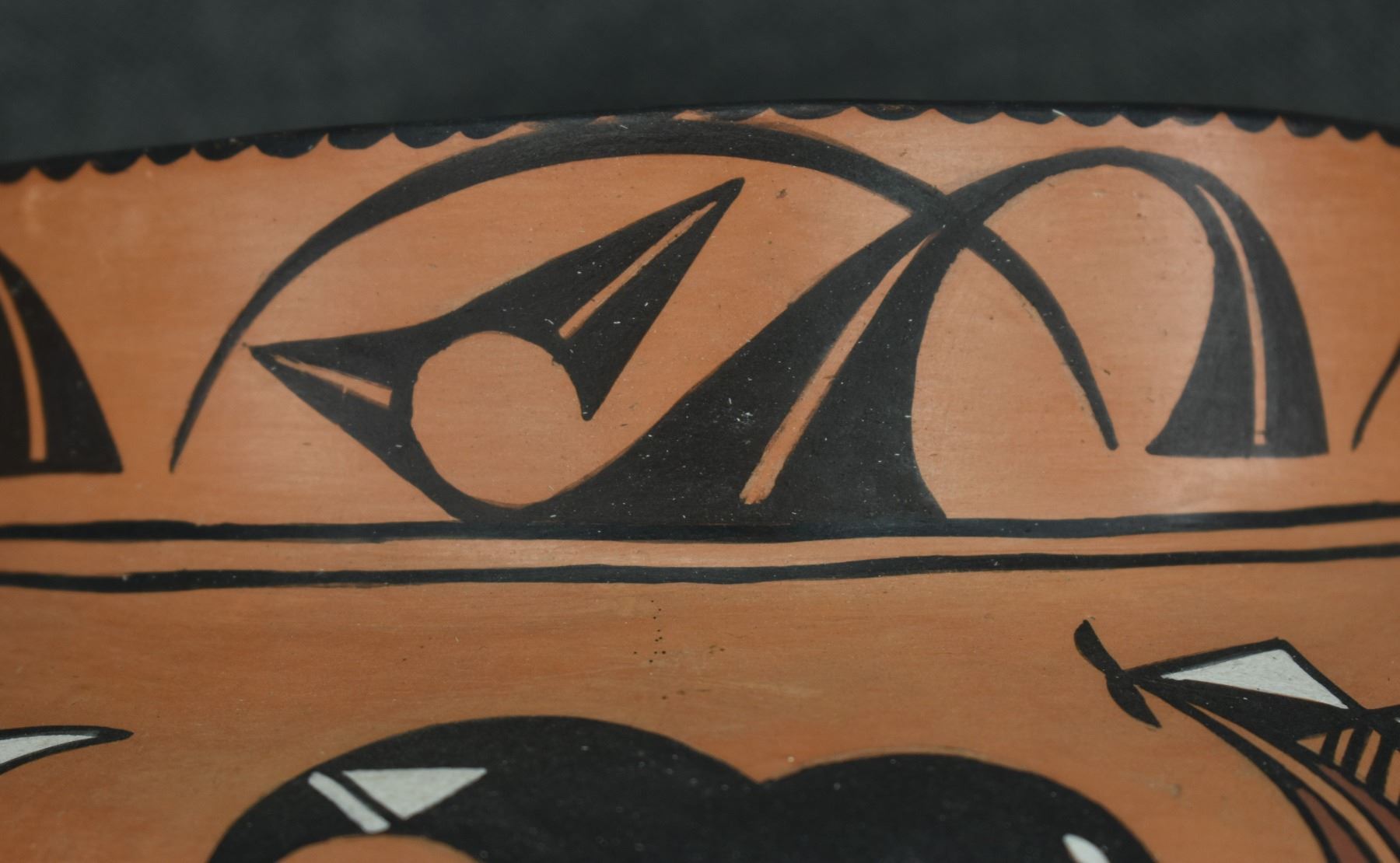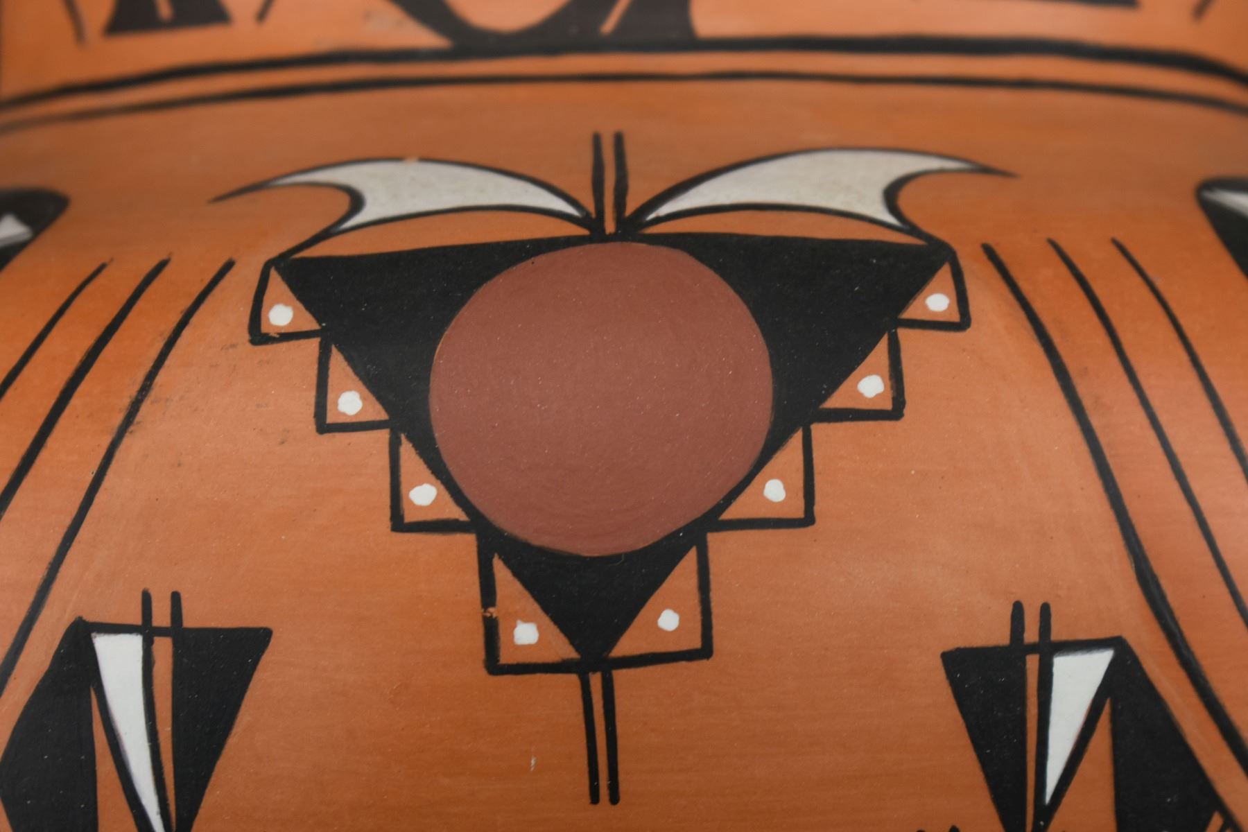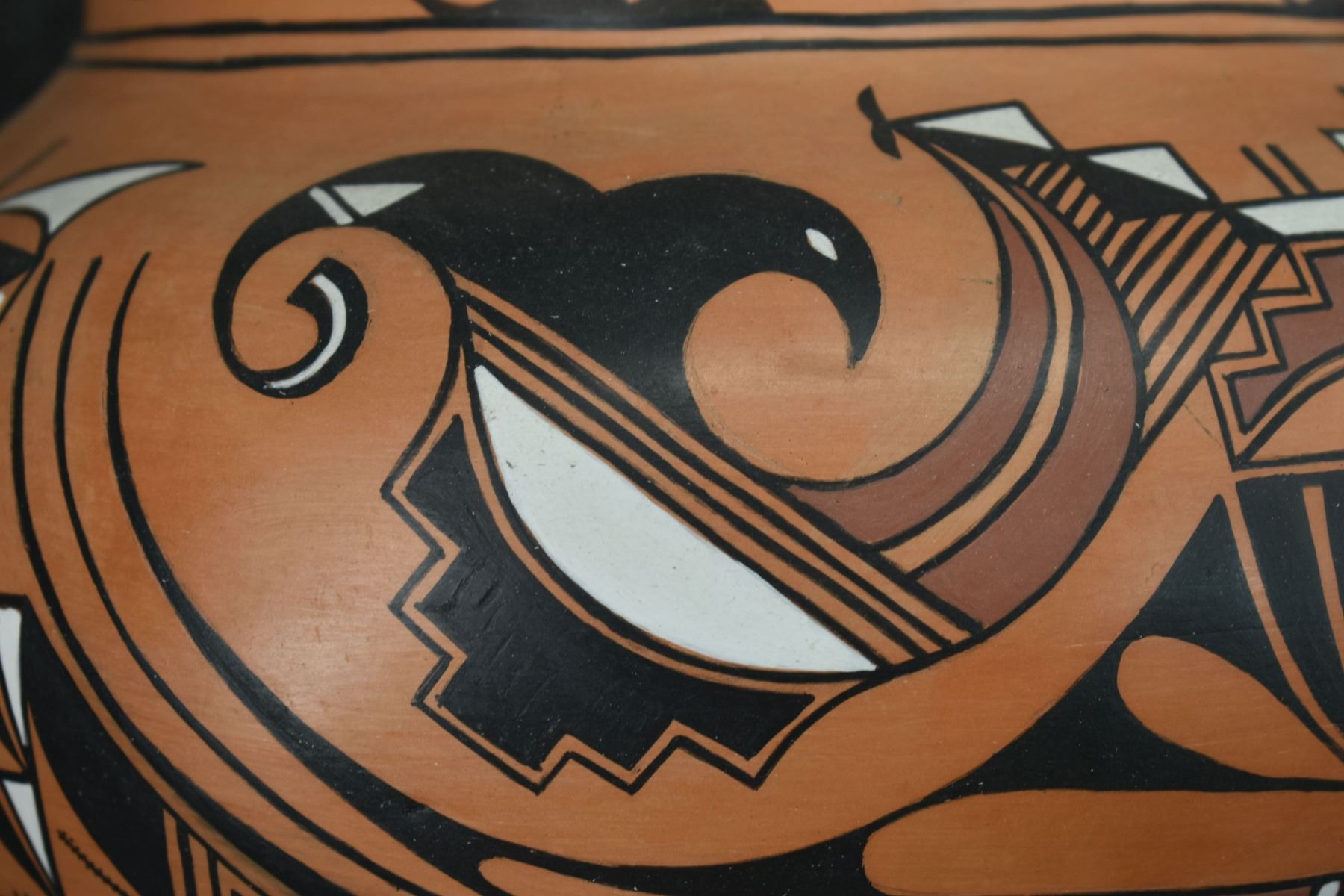 1990-2000's Laguna, hand coiled with polychrome painted design by Vincent Lewis Jr. 10.25" x 11.5"