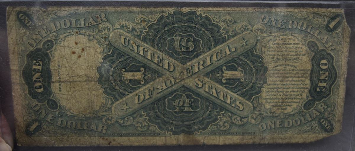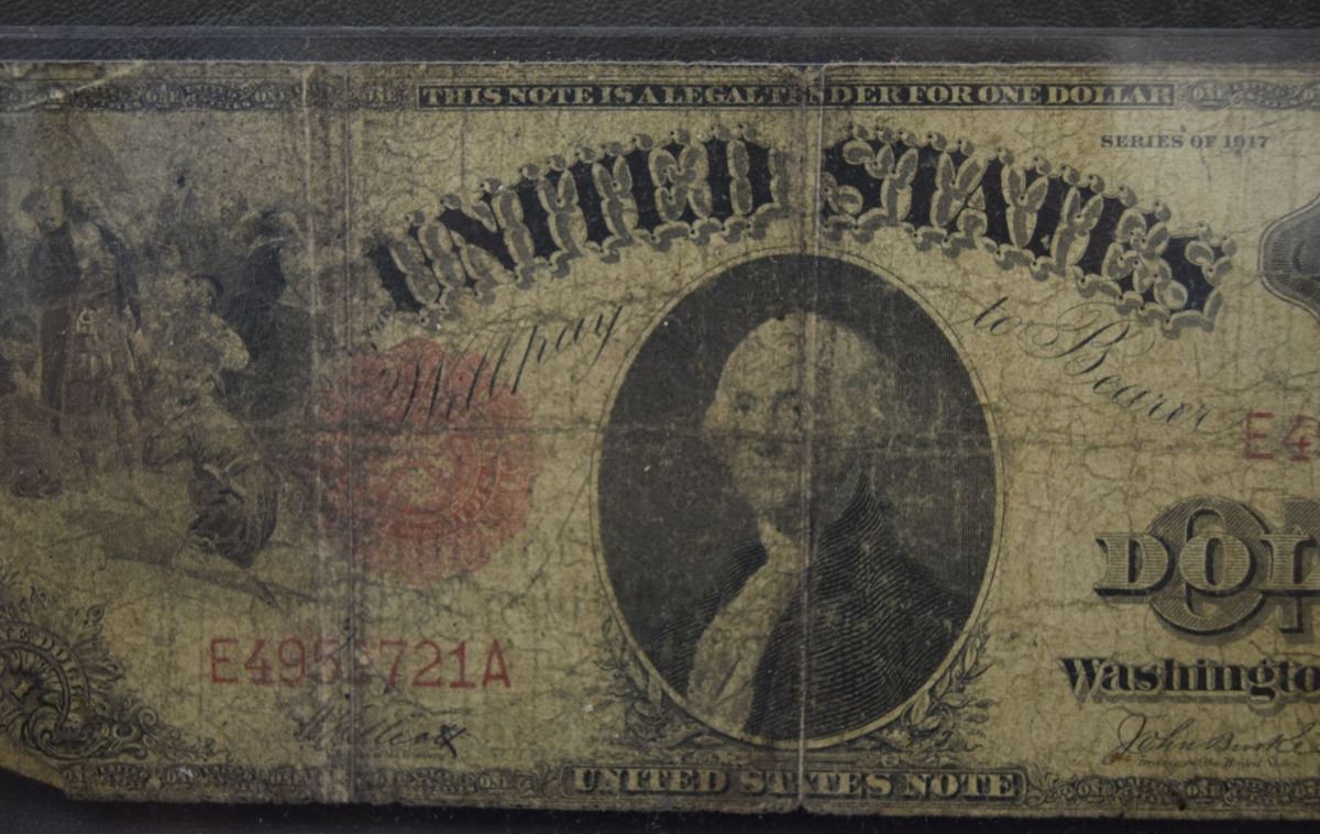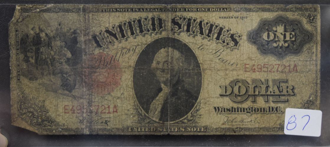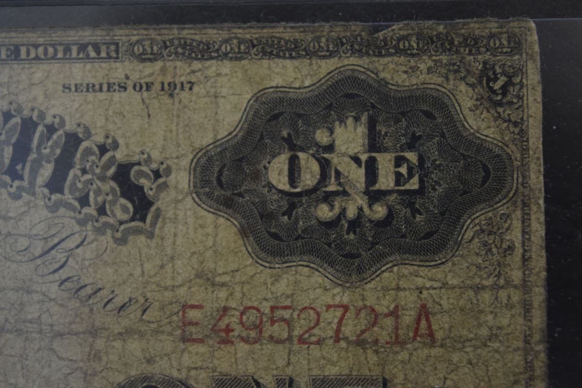 1917 large one dollar bill in poor condition 3'' x 7.25''