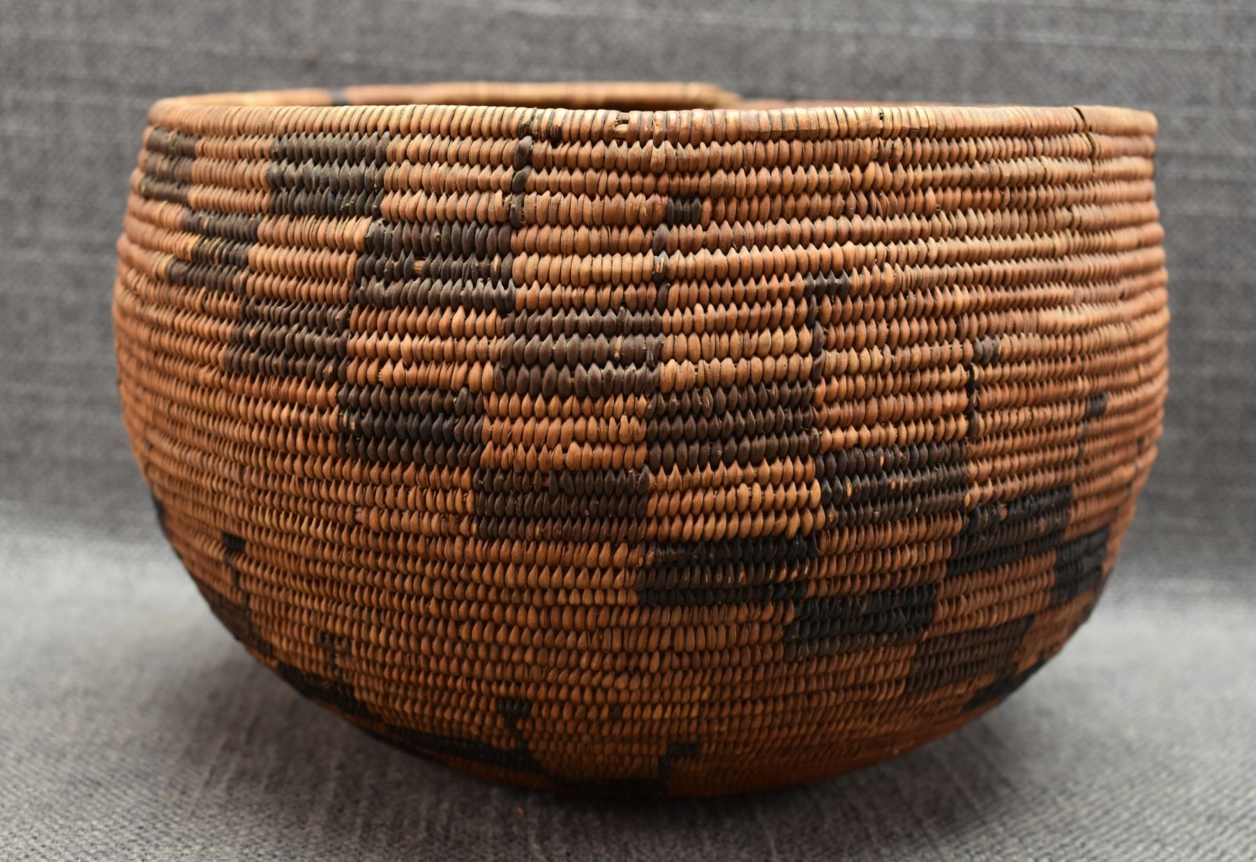 1920's Maidu. Hand woven stairstep design basketry bowl. 5'' x 9''