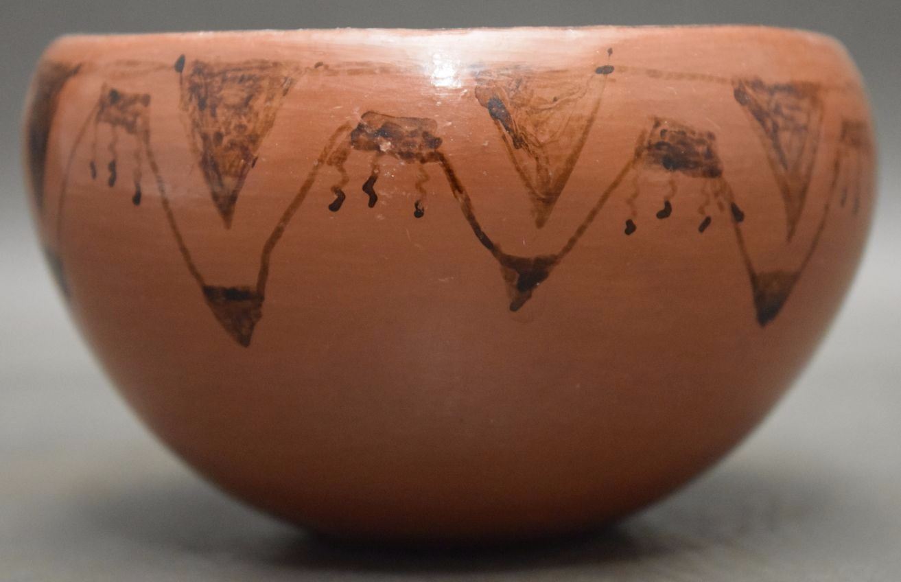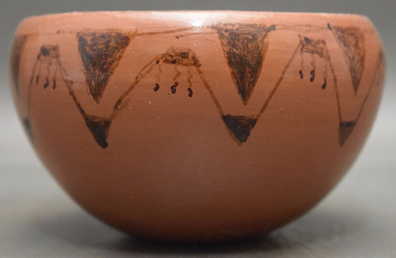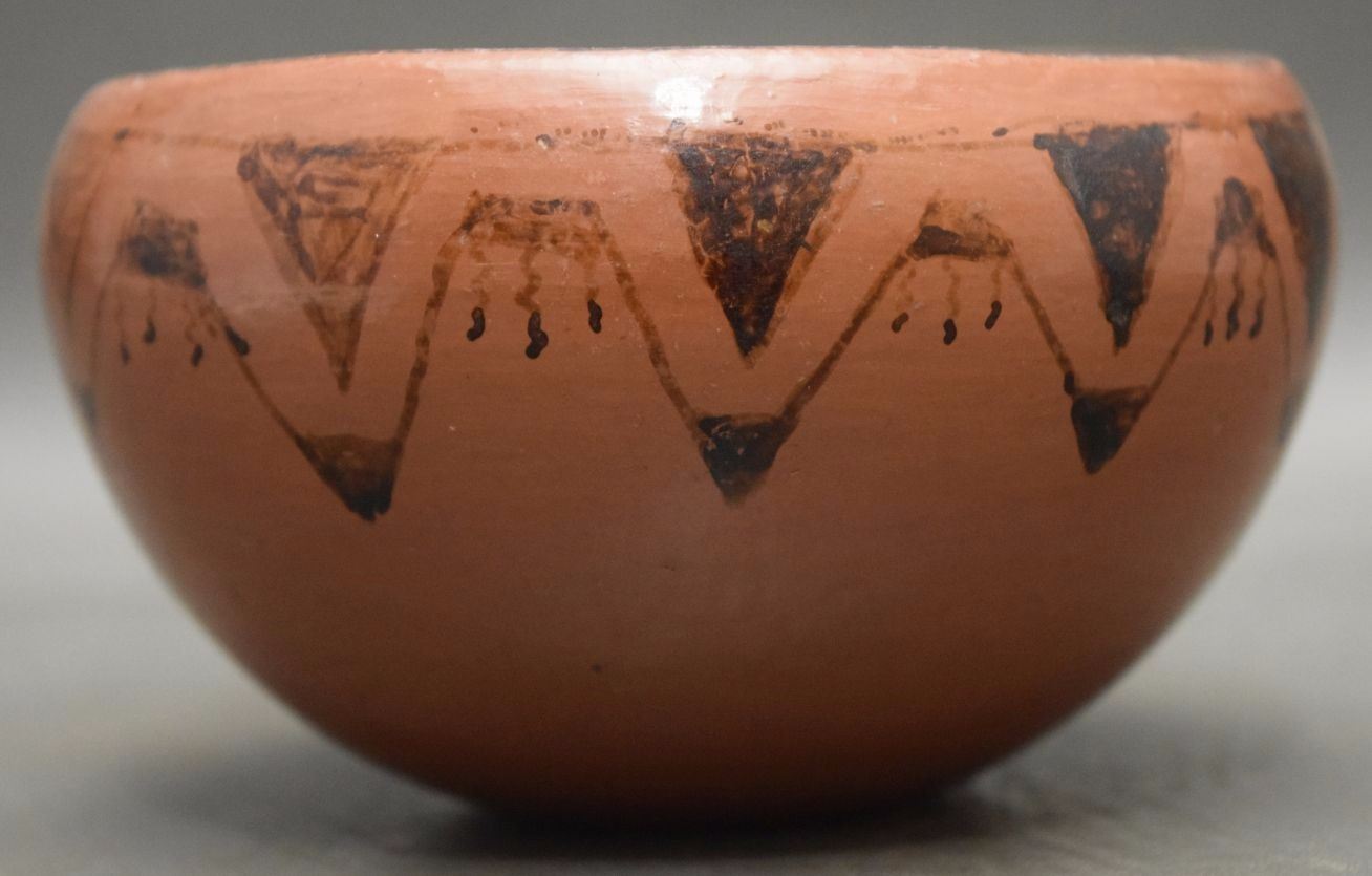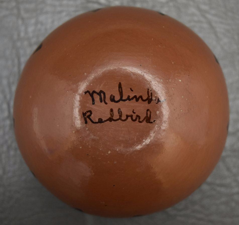 1970's black on red painted design signed Malinda Redbird. 2.75'' x 4.5''