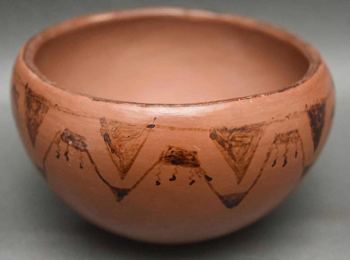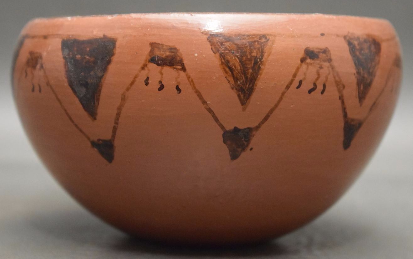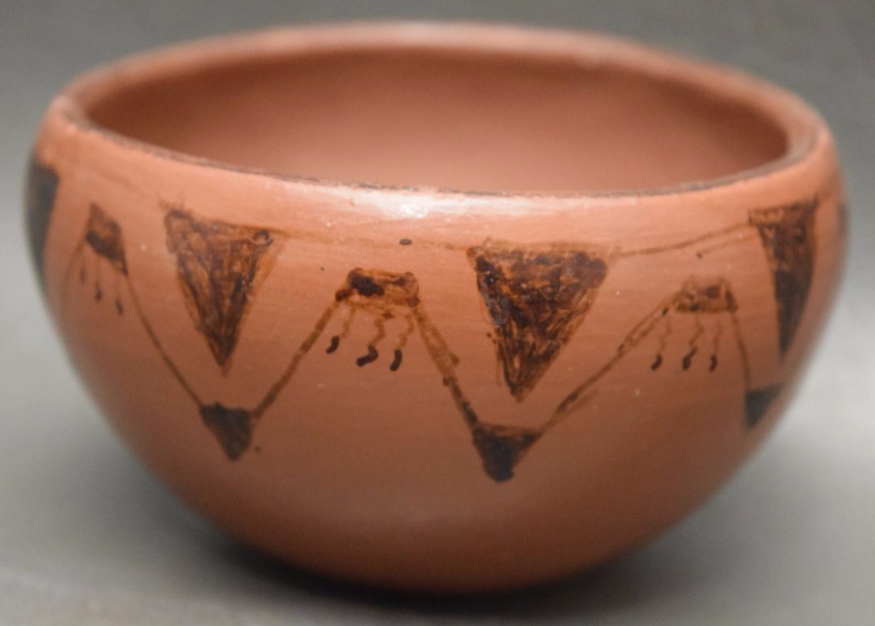 1970's black on red painted design signed Malinda Redbird. 2.75'' x 4.5''