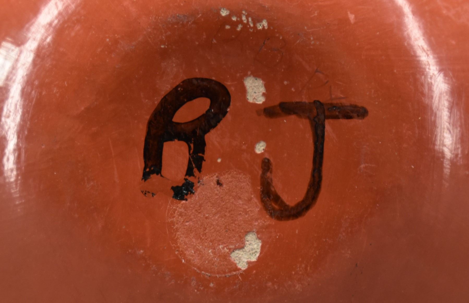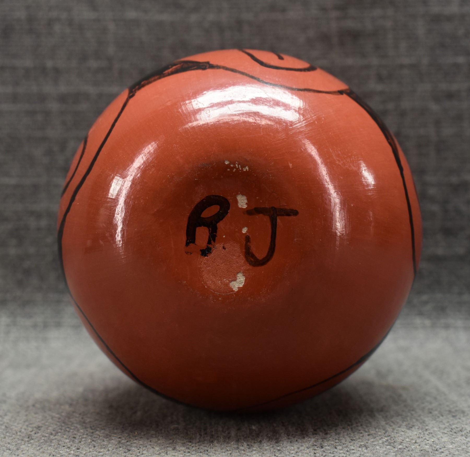 1960-70's Maricopa, hand coiled with painted geometric design signed BJ for Brabara Johnson 5.5" x 3.5"