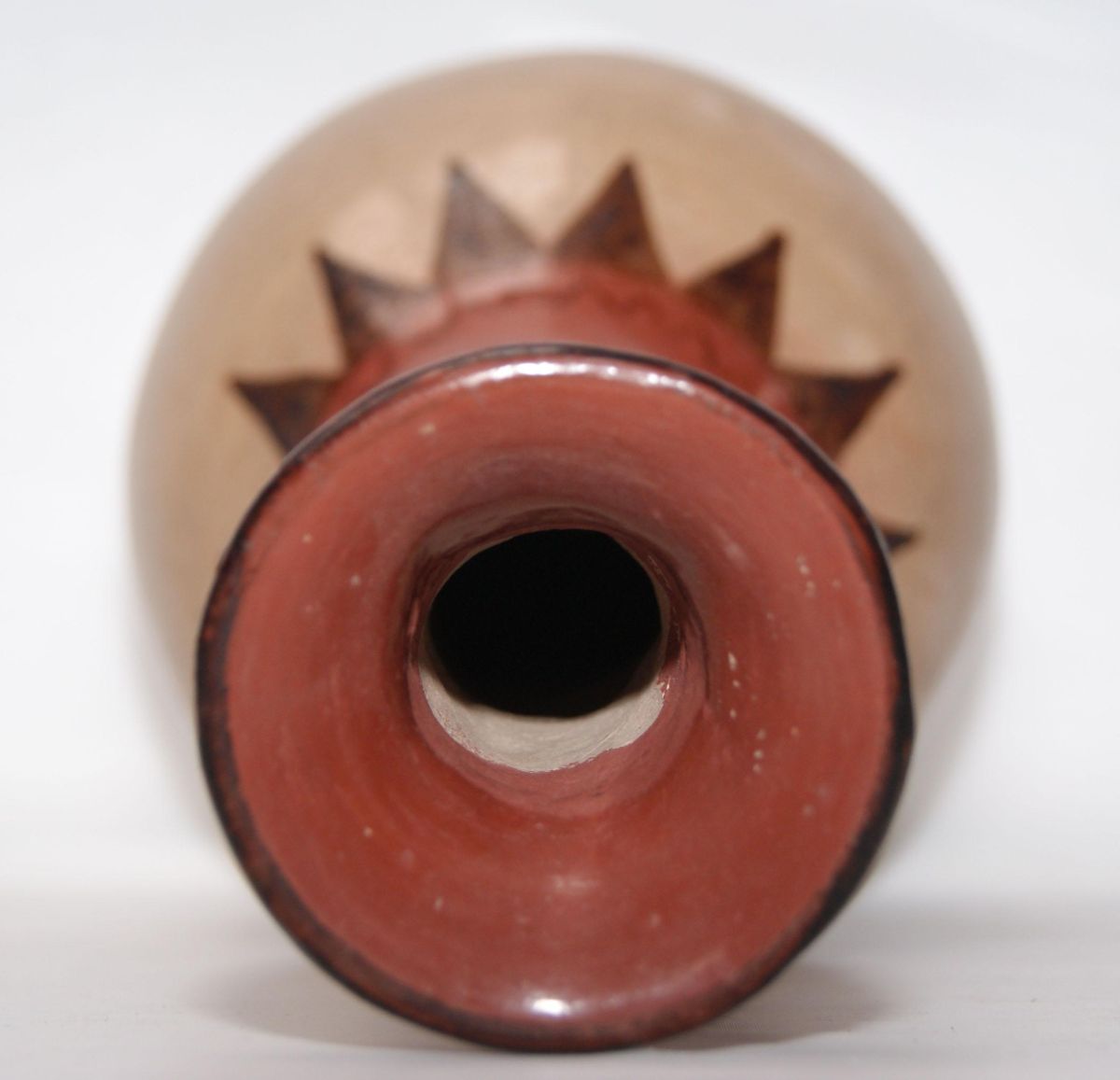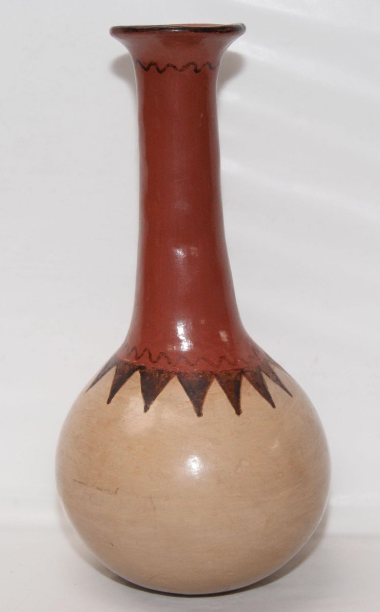 1960'S long neck, polychrome design, signed Mable Sunn, 11.5" x 5.5"