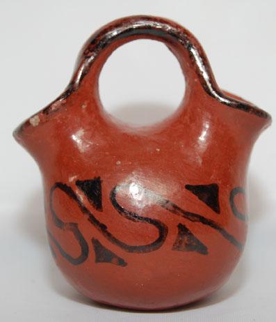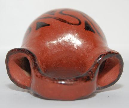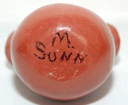 1970'S black on red design, signed Mable Sunn, minor chip, 3" x 2.75"
