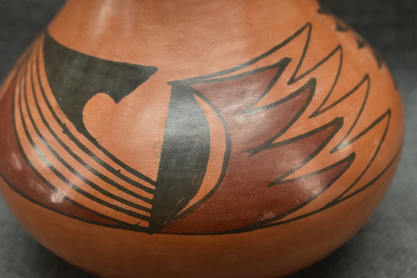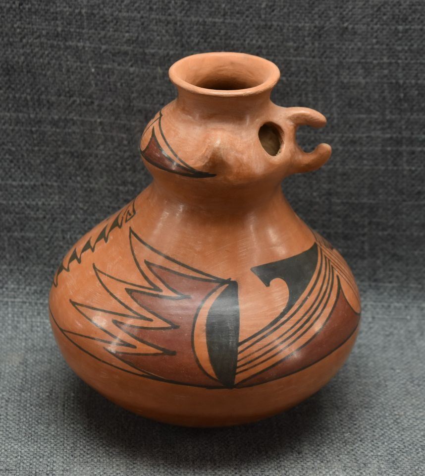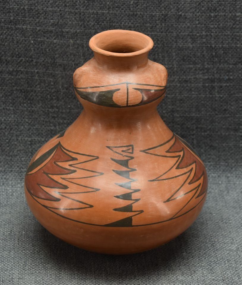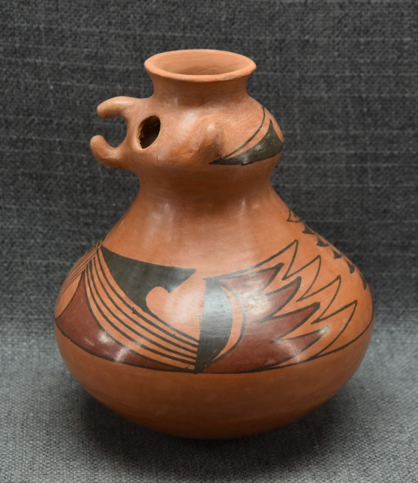 1990's Mata Ortiz, hand made with polychrome painted design signed Reinaldo Pedregon L. 6.5" x 5.5"