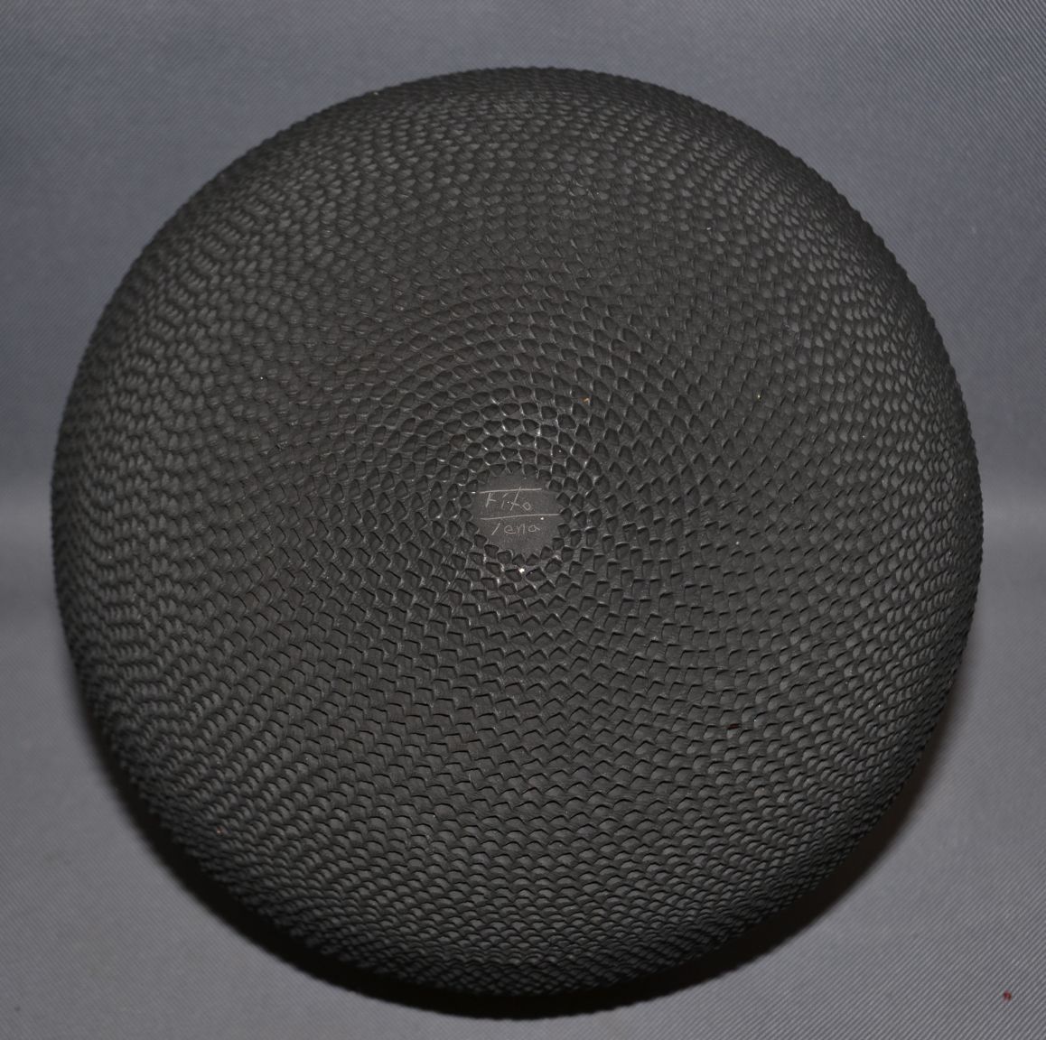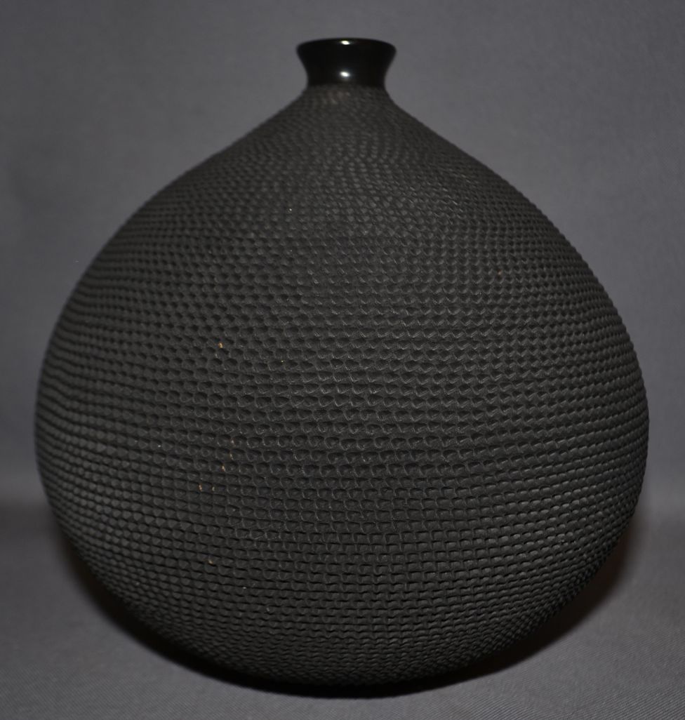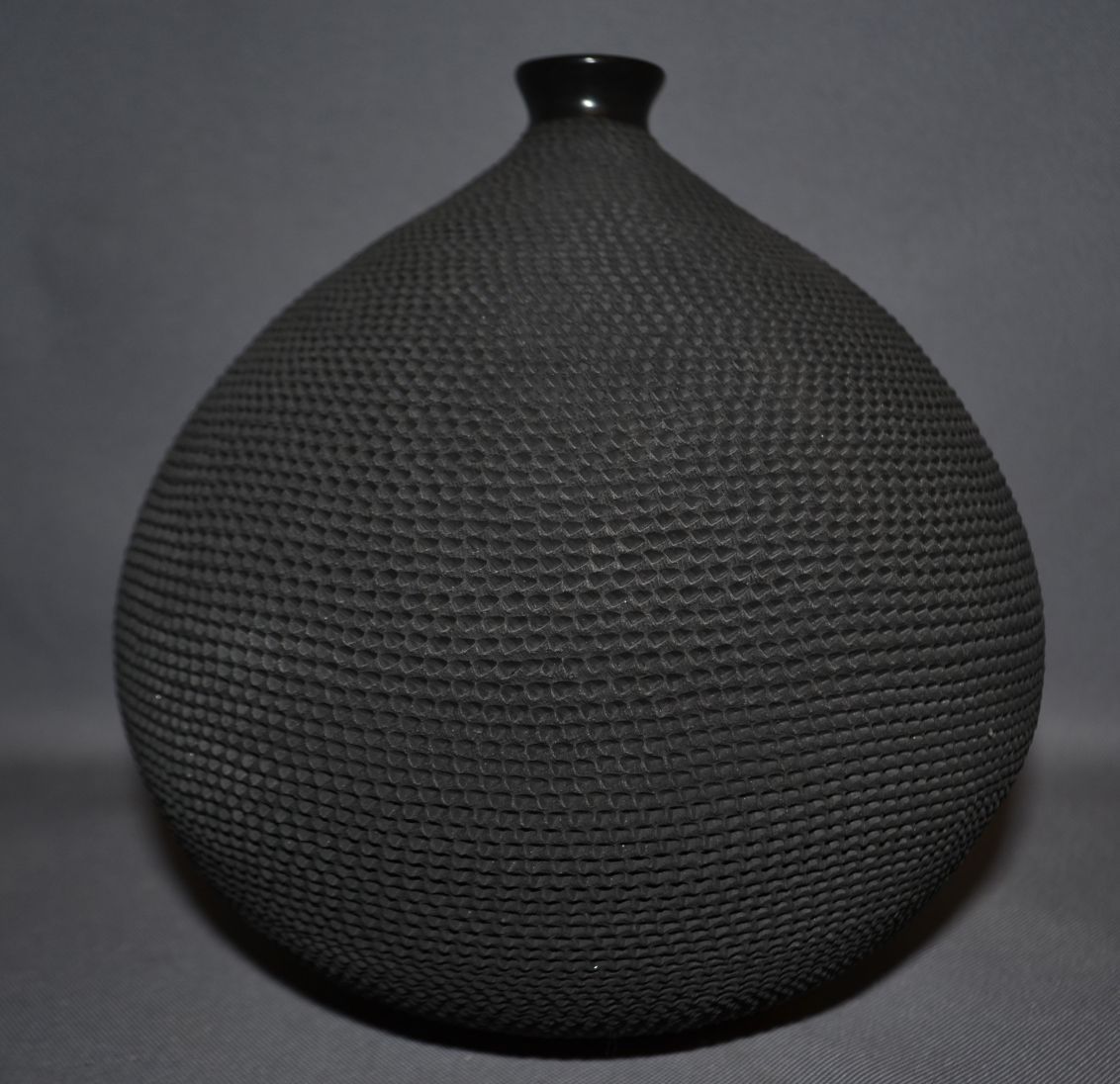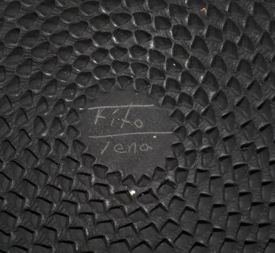 1980s 90s corrugated design black ware signed Kito Tena 9.5" x 8.5"