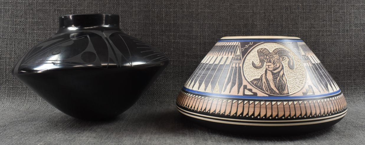 mata ortiz matt on black signed mary Quezada pottery olla and Navajo ceramic vase signed bob lansing. 5.5" x 7.5"