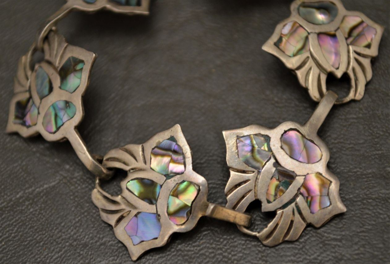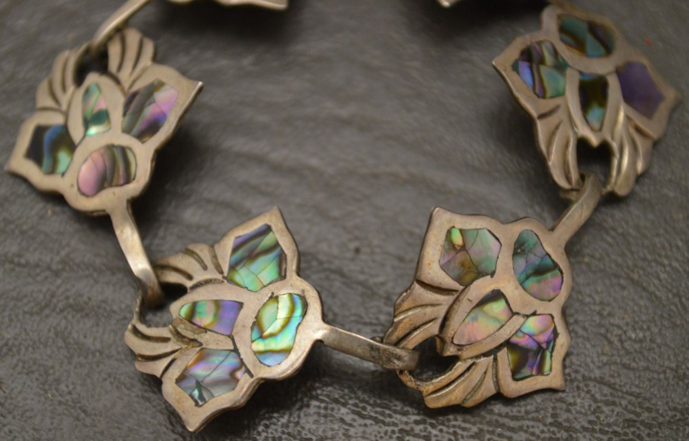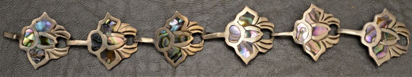 1960's Mexican sterling silver and Abalone shell deign bracelet. .75'' x 6'' total weight 11 grams