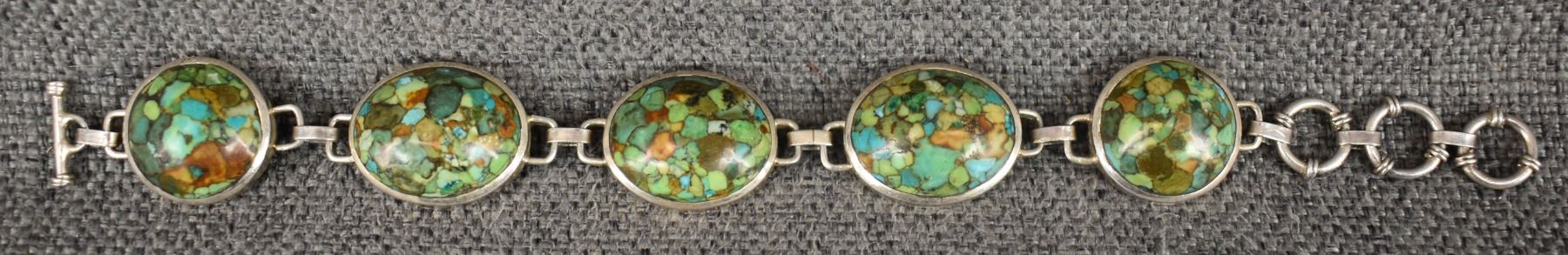 1980's Mexican, sterling silver and turquoise, .75" x 8.5" total weight 67 grams