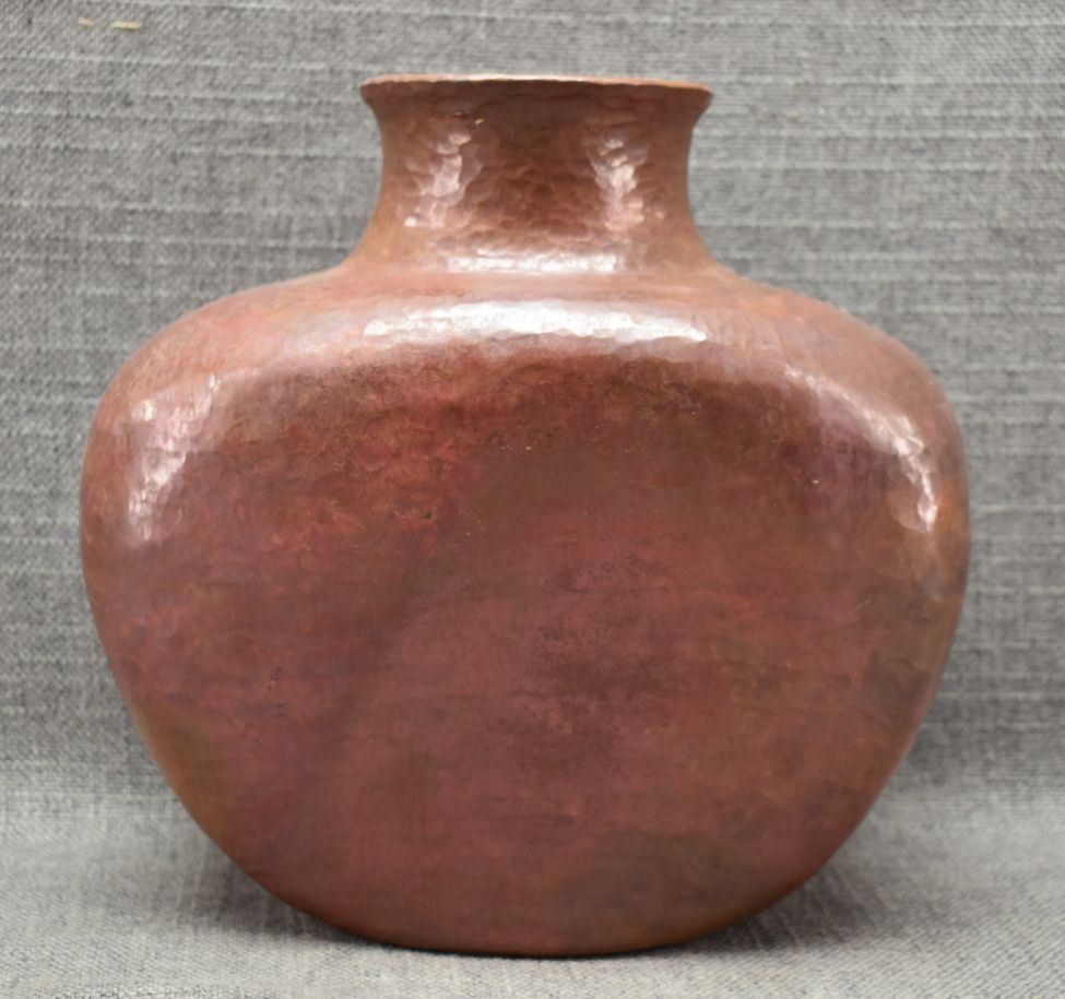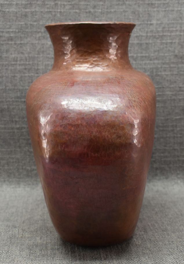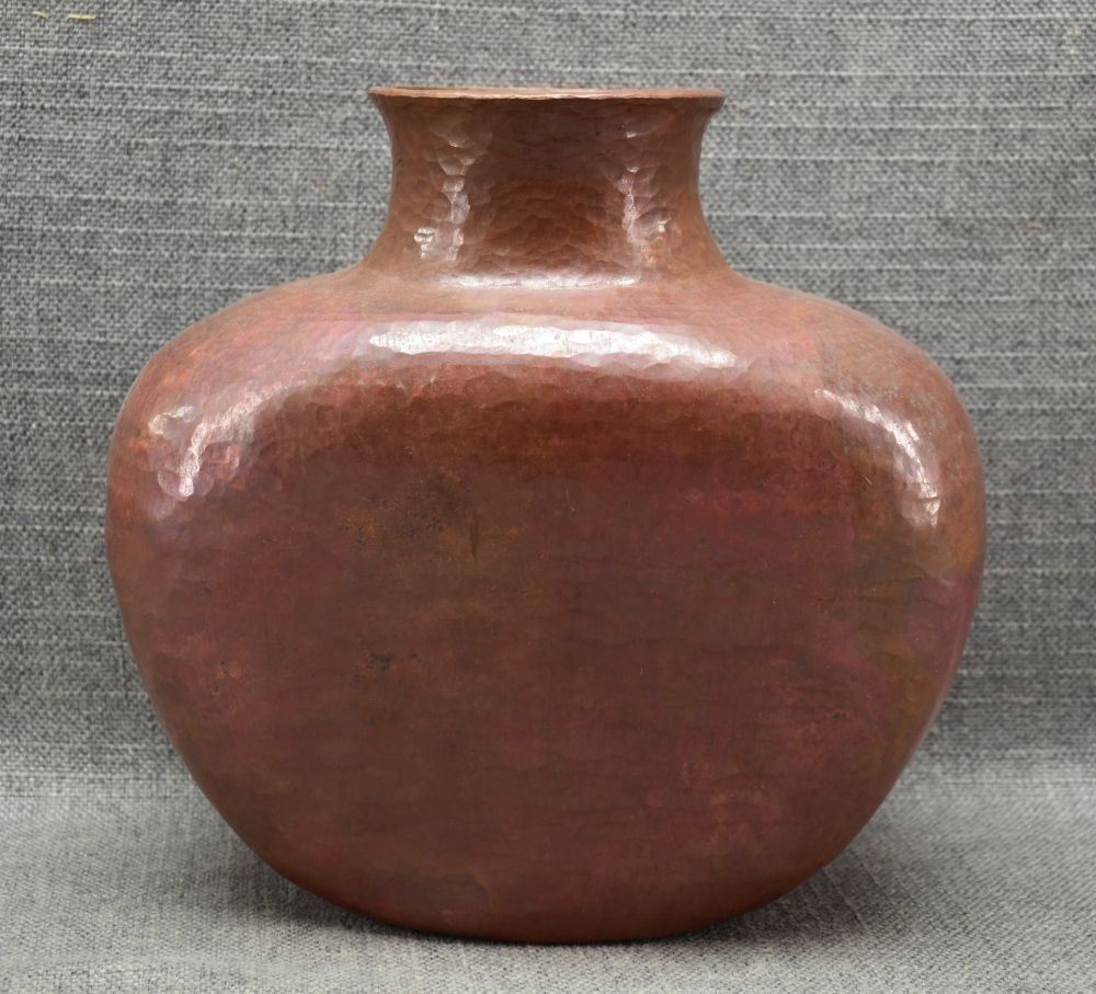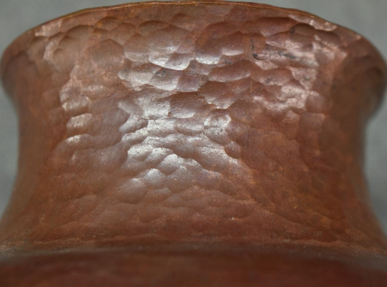 1980's Santa Clara Del Cobre Michoacan. Hand hammered copper vase. 9" x 9" x 5"