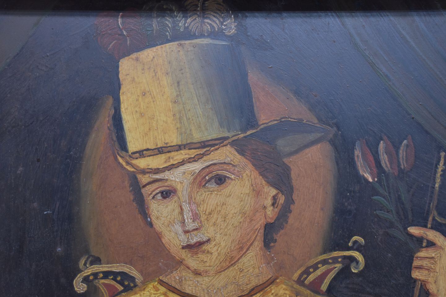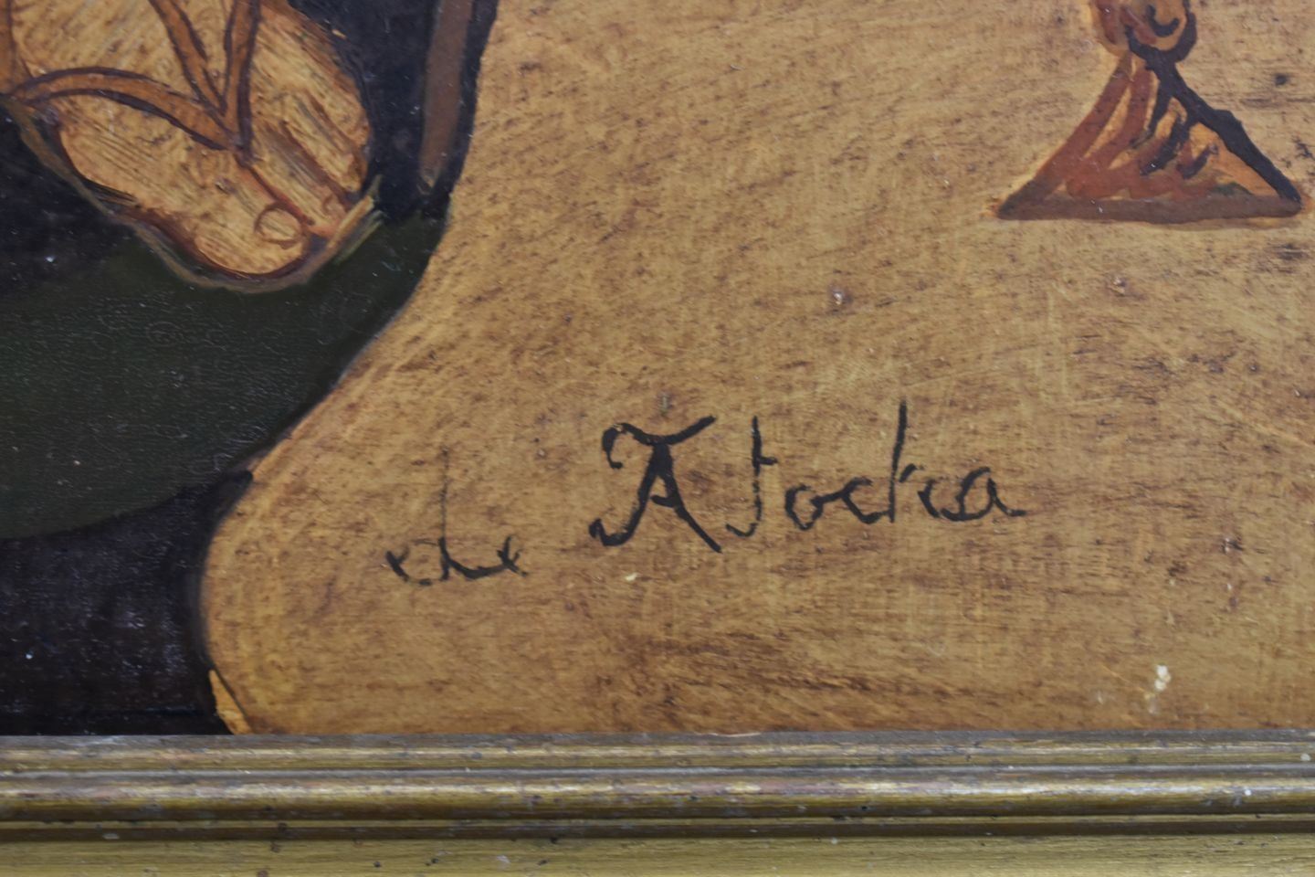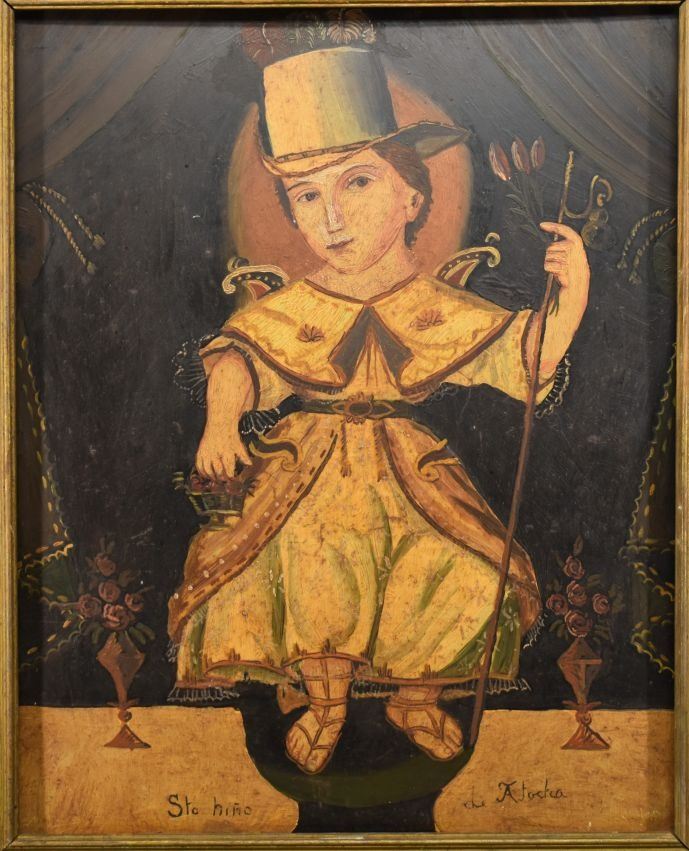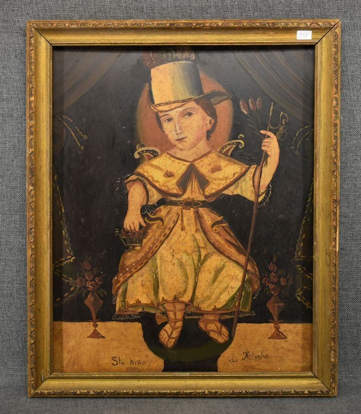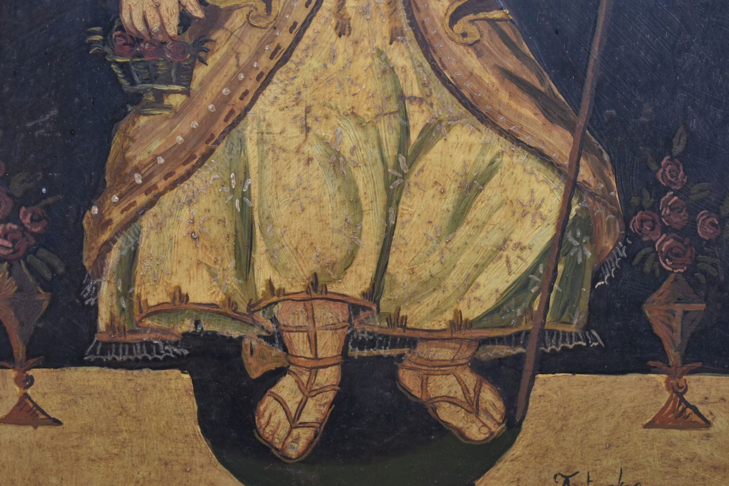 20th century Mexican. Hand painted design on tin. 20'' x 16'' frame size 23'' x 18''