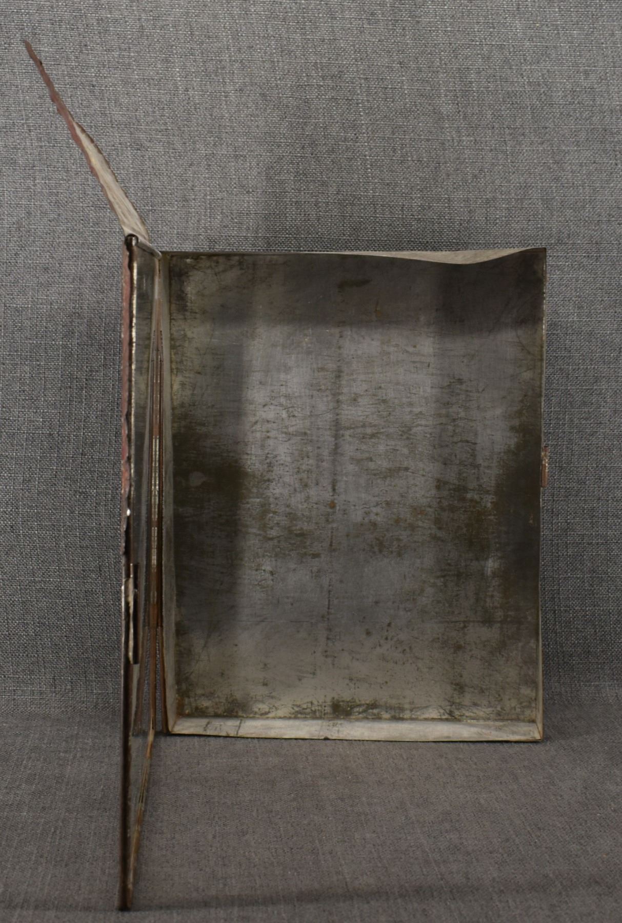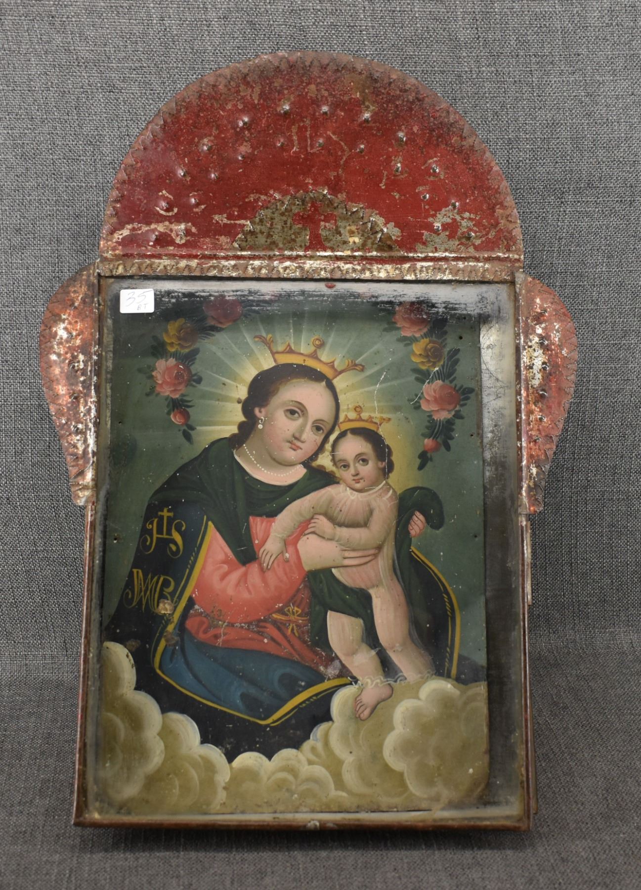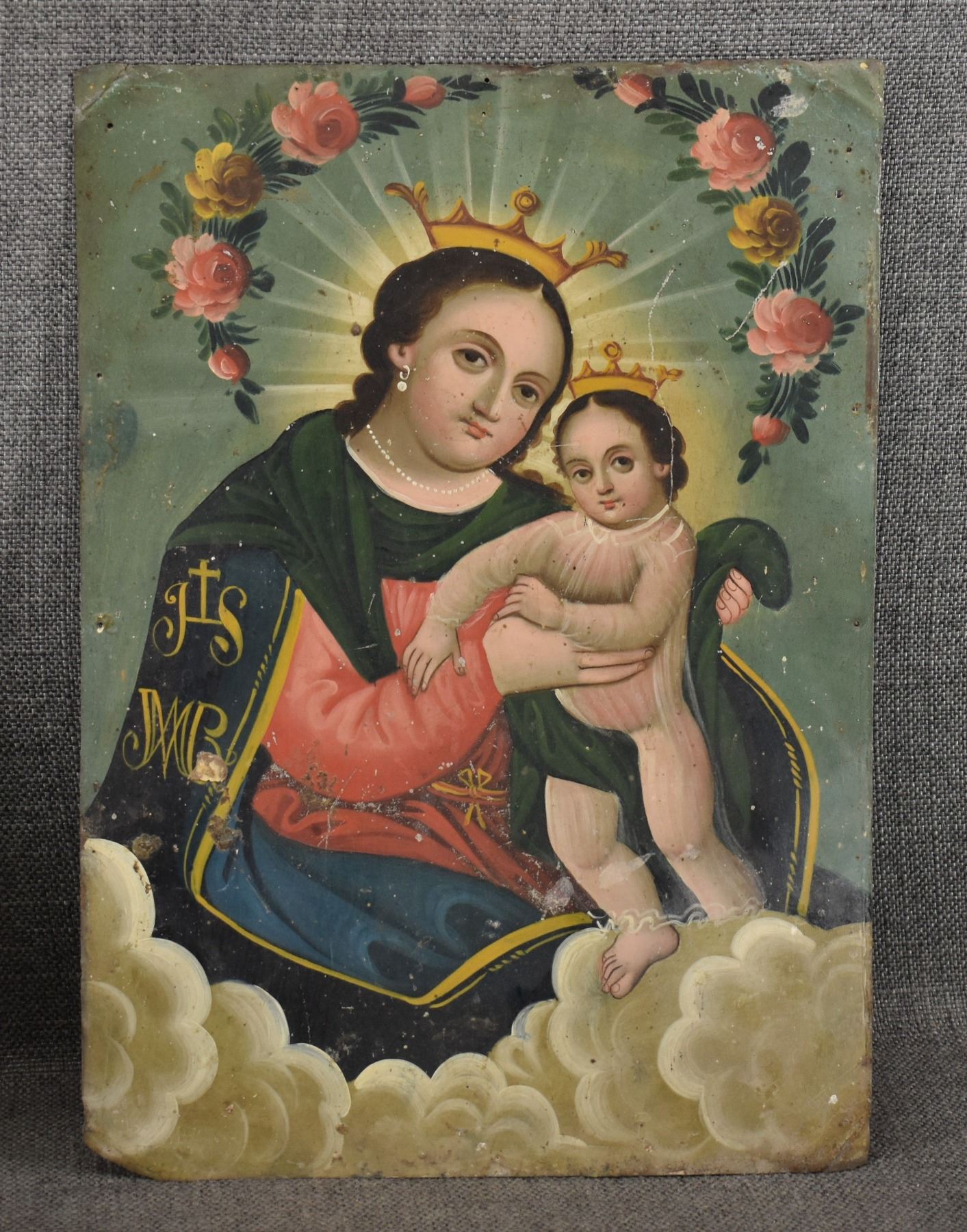 20th century, hand painted on tin 14" x 10" in tin frame 2" x 18.25" x 14"