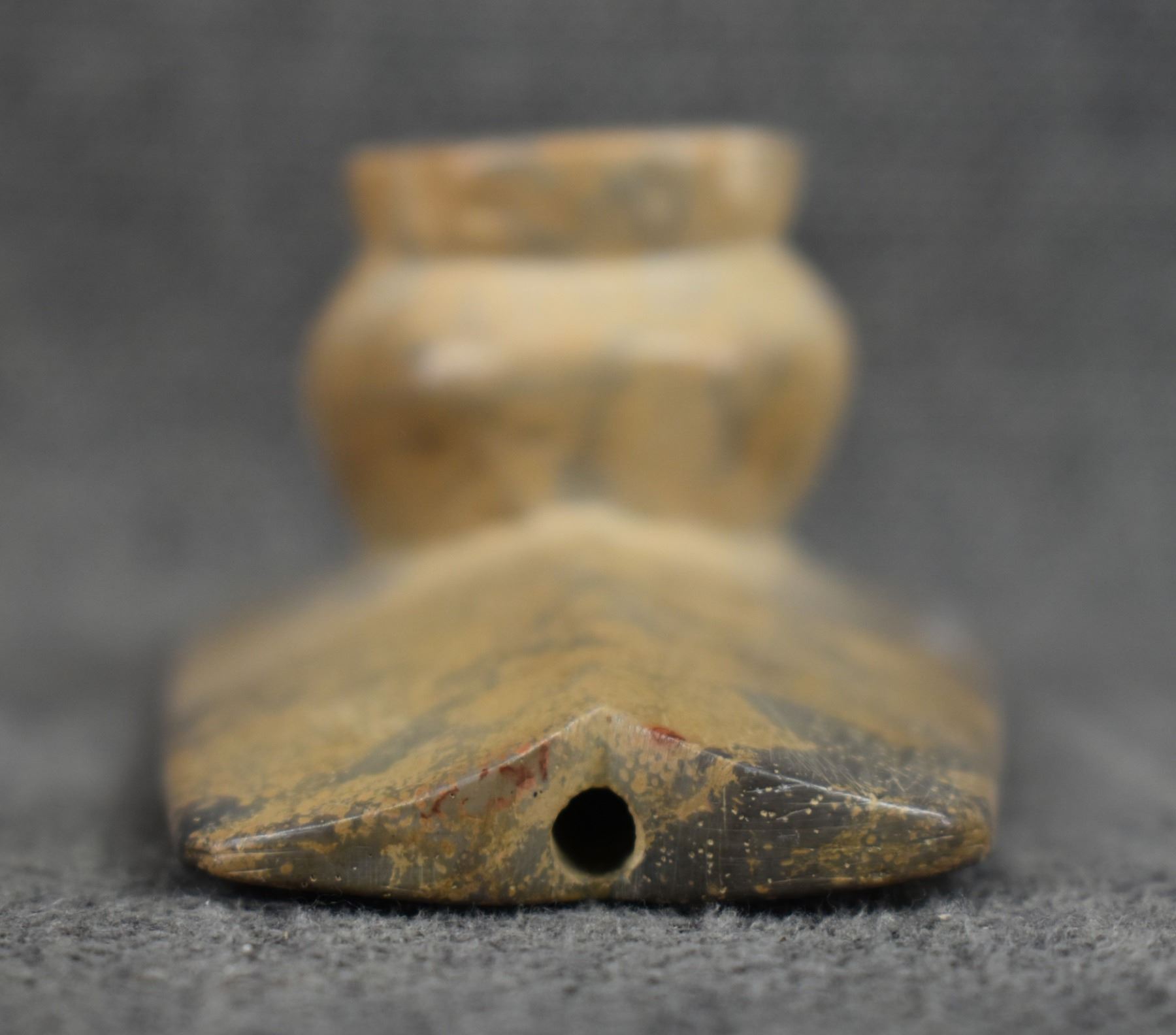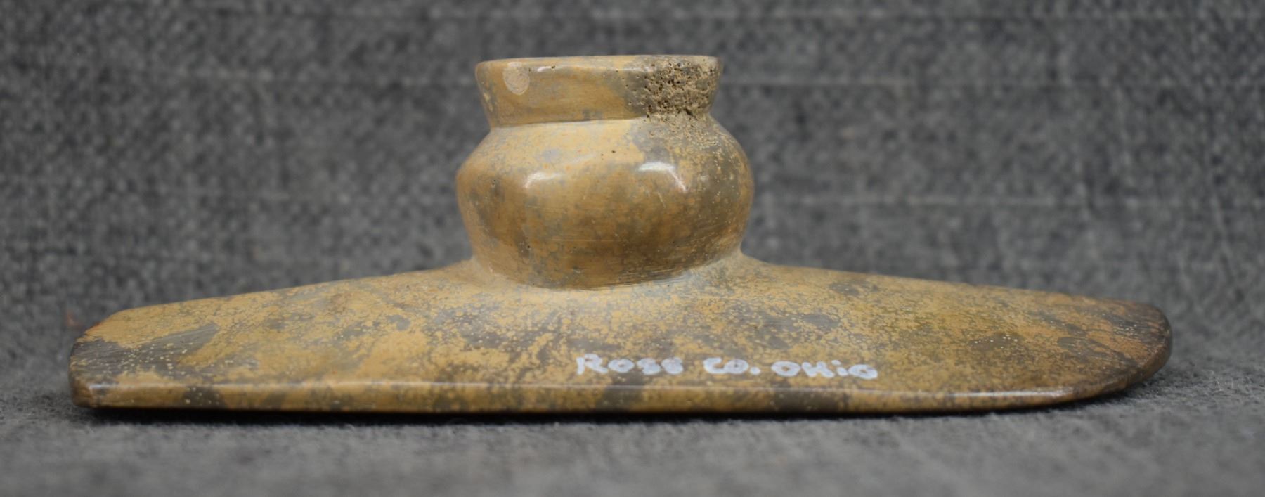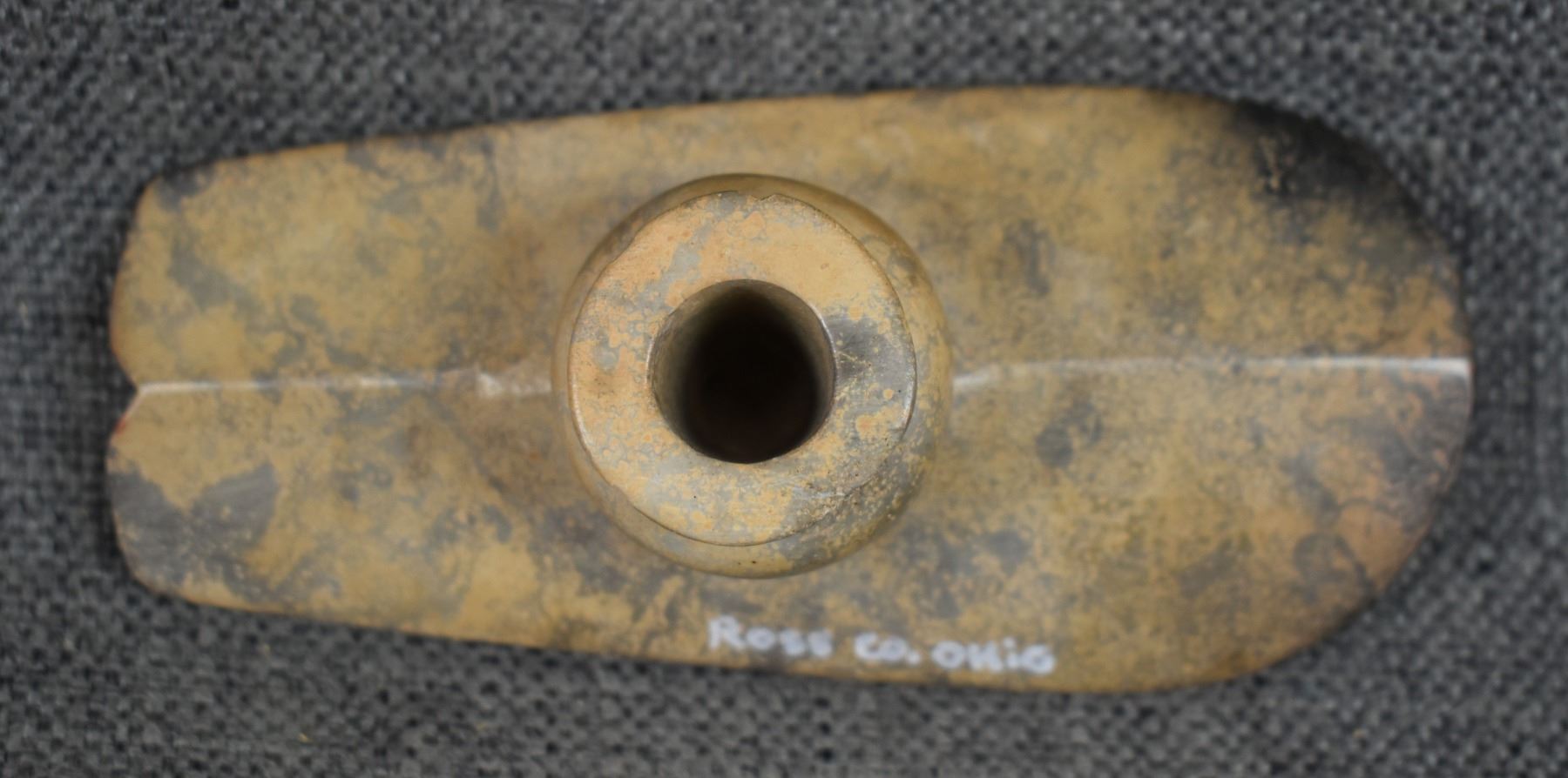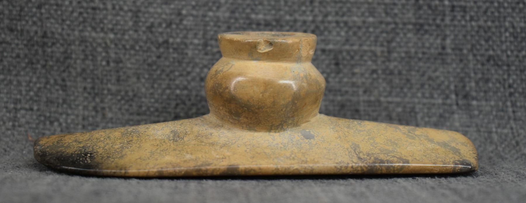 age unknown. Hand made stone platform pipe. 1.75'' x 5'' x 2.25''