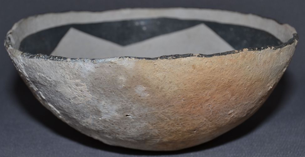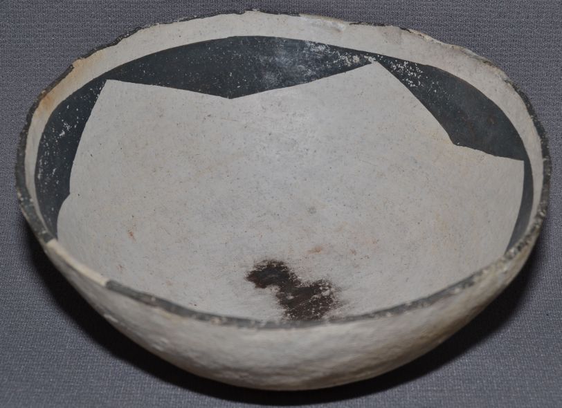 prehistoric black on white design minor paint loss as found condition 2.5"x6.25"