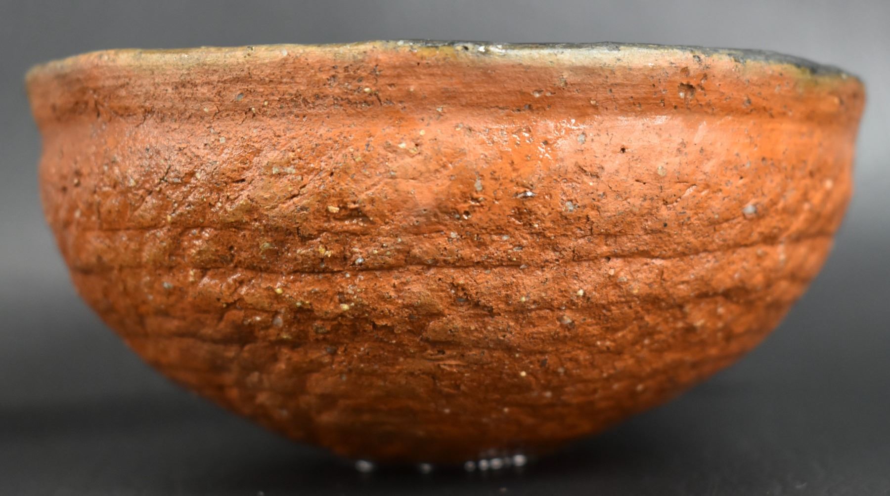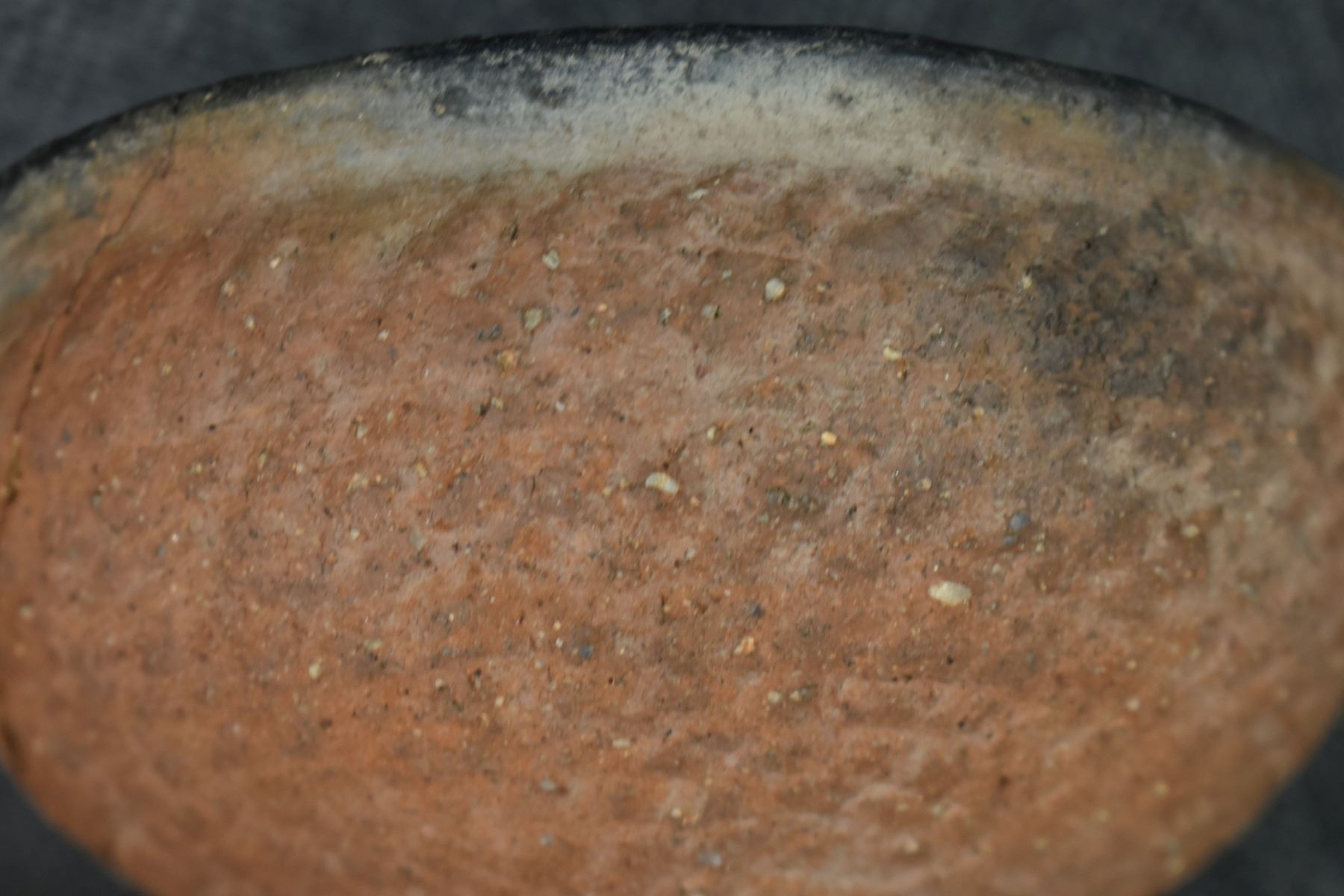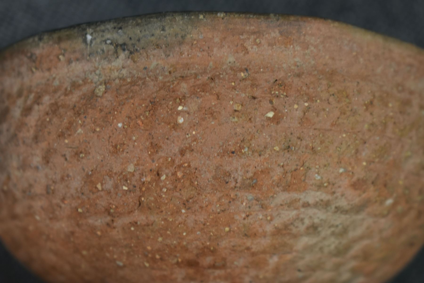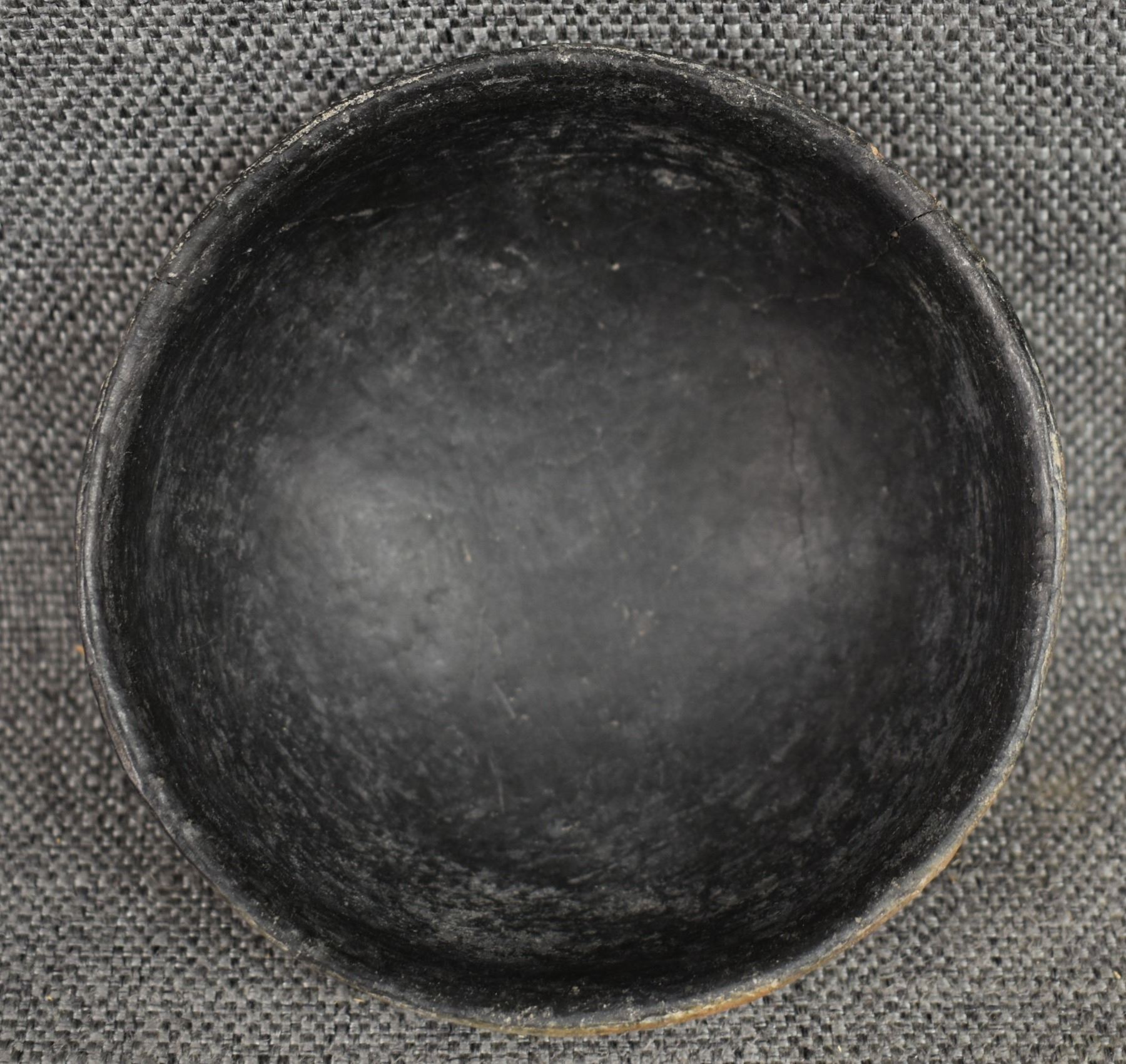 Prehistoric Mimbres. Hand coiled corrugated pottery bowl. 2'' x 4.75''. Has been broken and glued