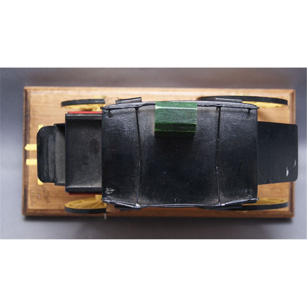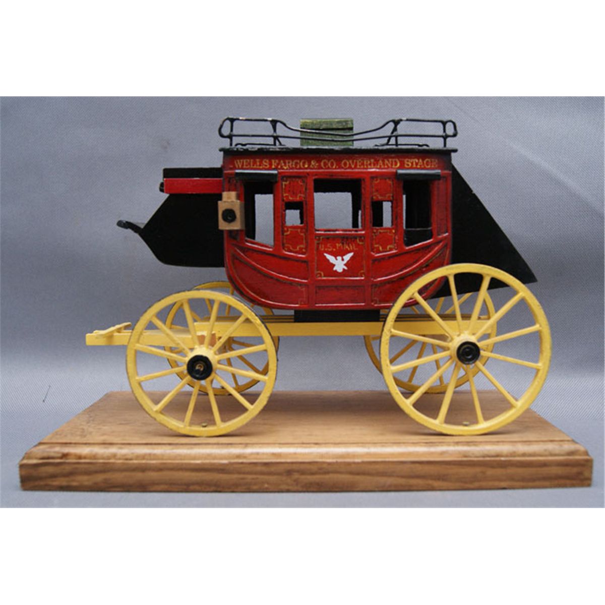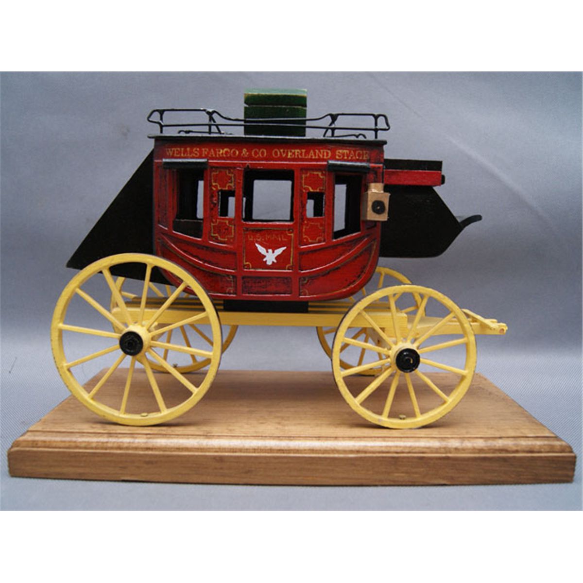 1980s hand made from wood with Wells Cargo painted design has minor chips, 6.75" x 9" x 4.25"