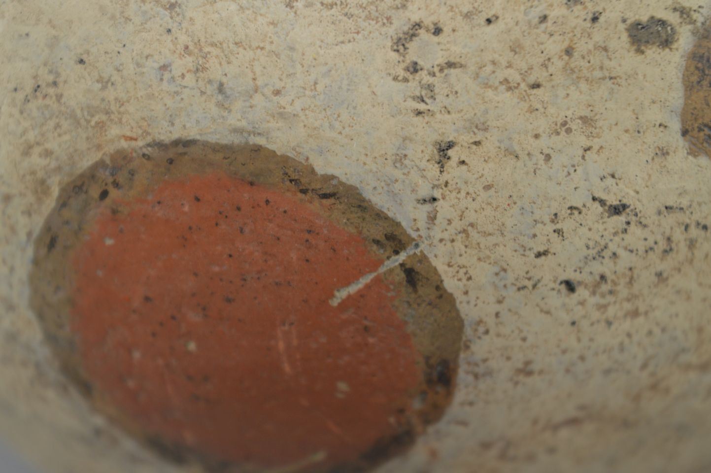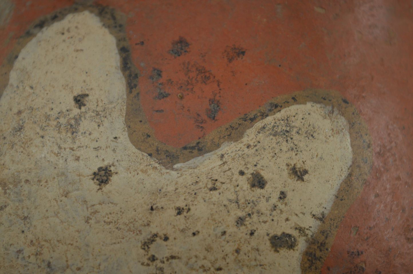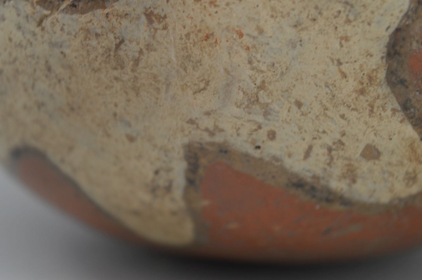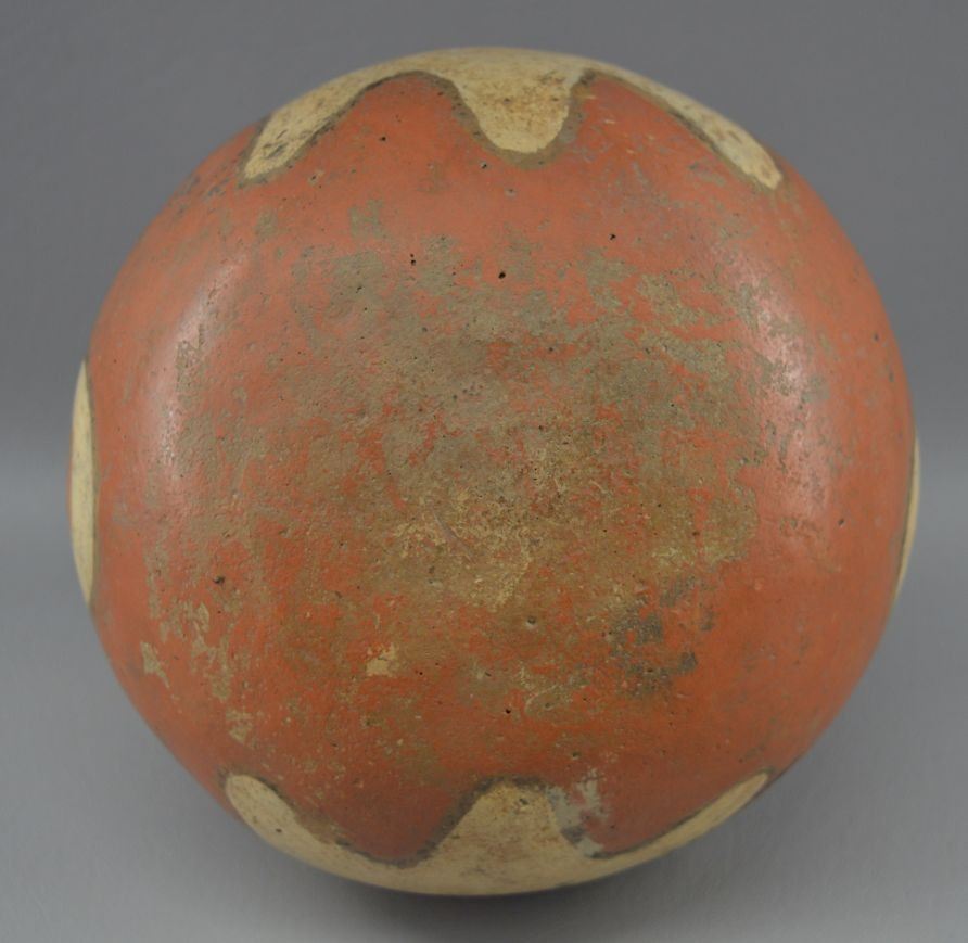 prehistoric Mississippian culture, hands coiled an painted design pottery stirrup vase. 8'' x 6''