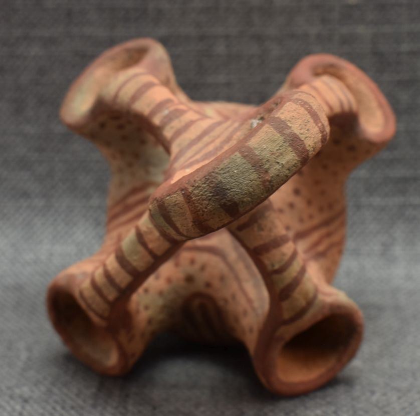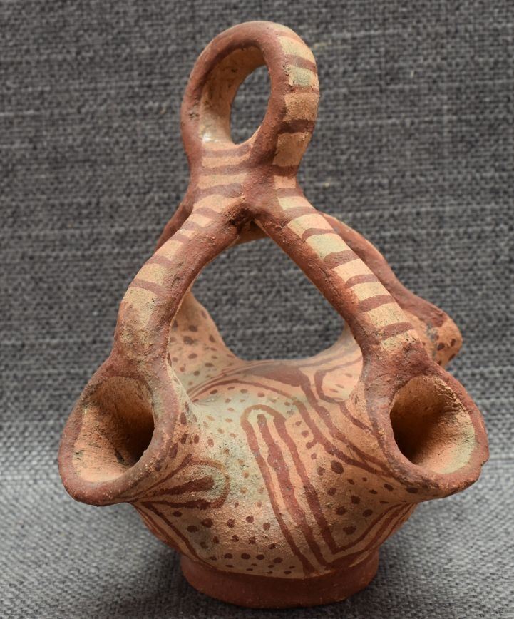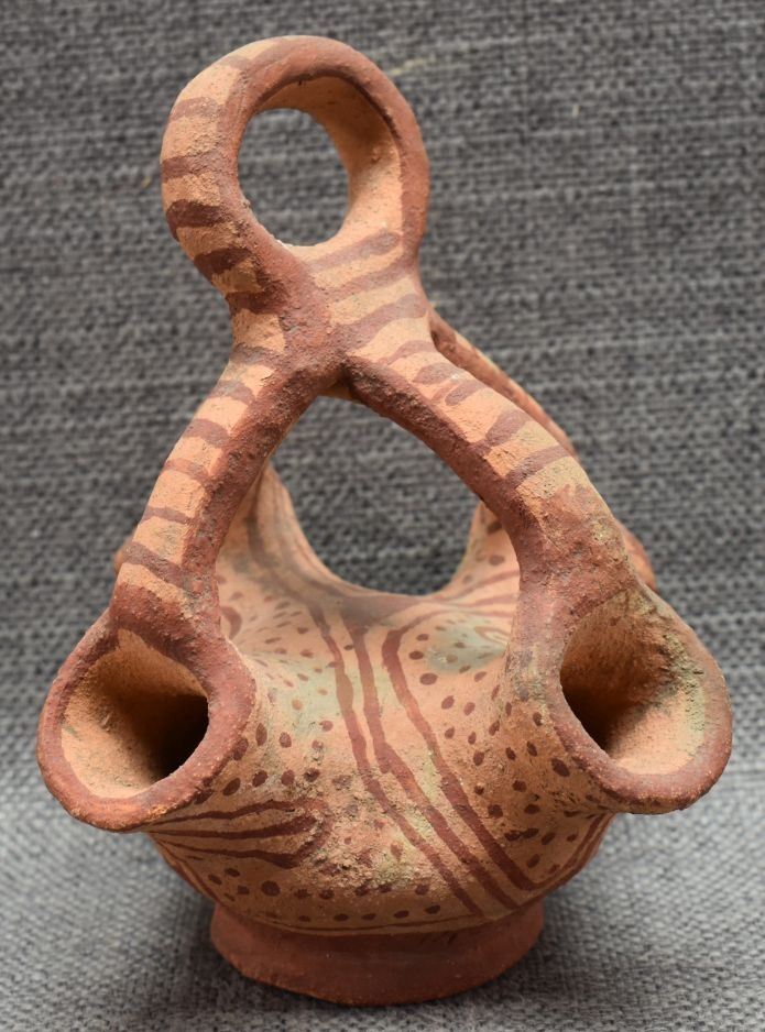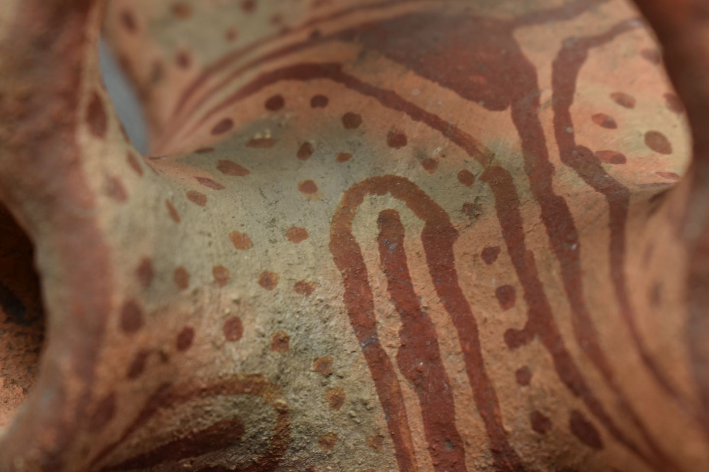 1950's Mojave Indian. Hand coiled and painted red on buff design pottery vase. 6'' x 5''
