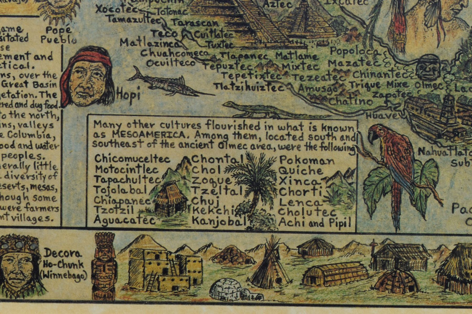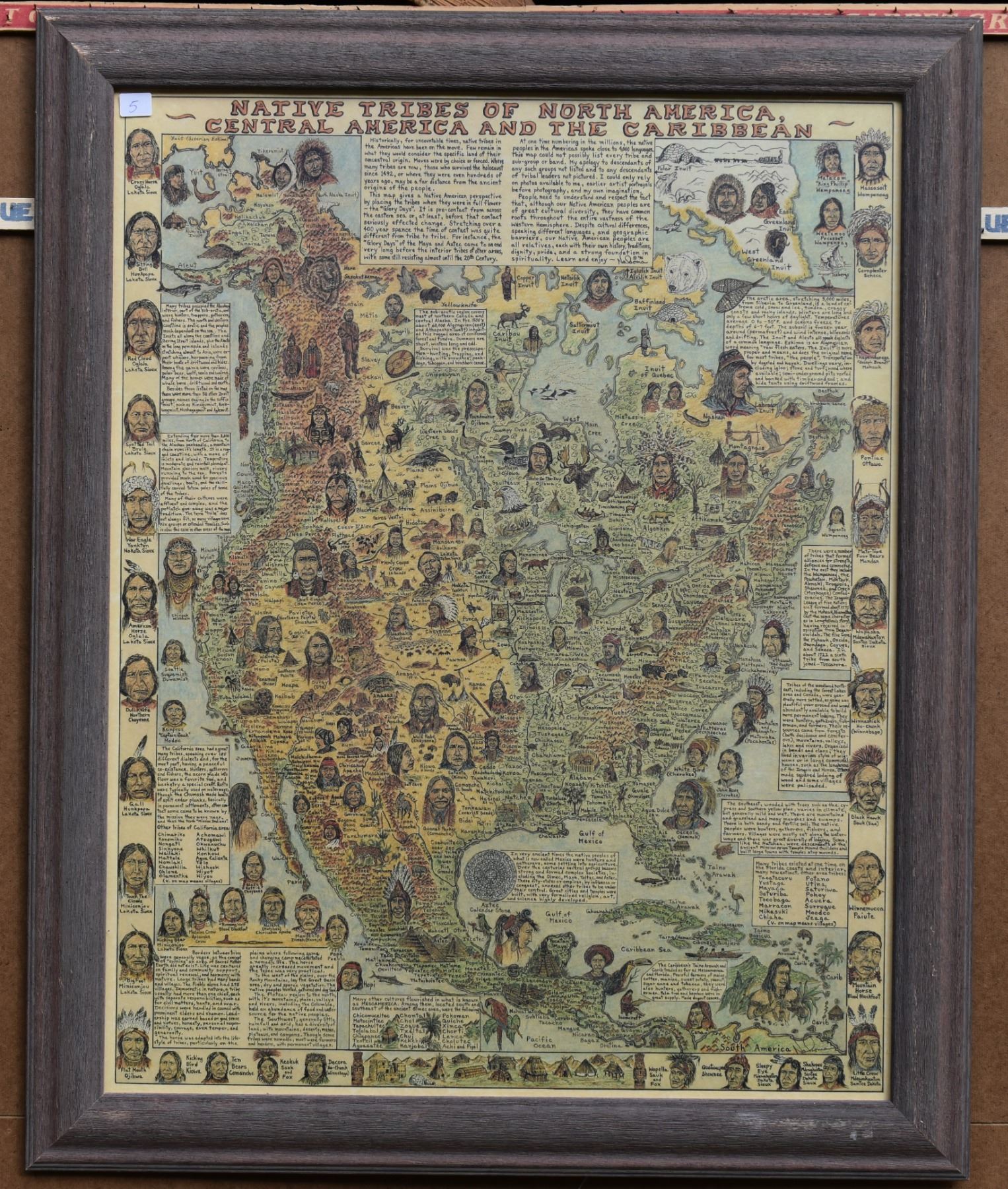 1996, print titled "Native Tribes of North America, Central America and the Caribbean" by Michael McArdle-Nakoma 27.5" x 21.5" framed to 32" x 26"