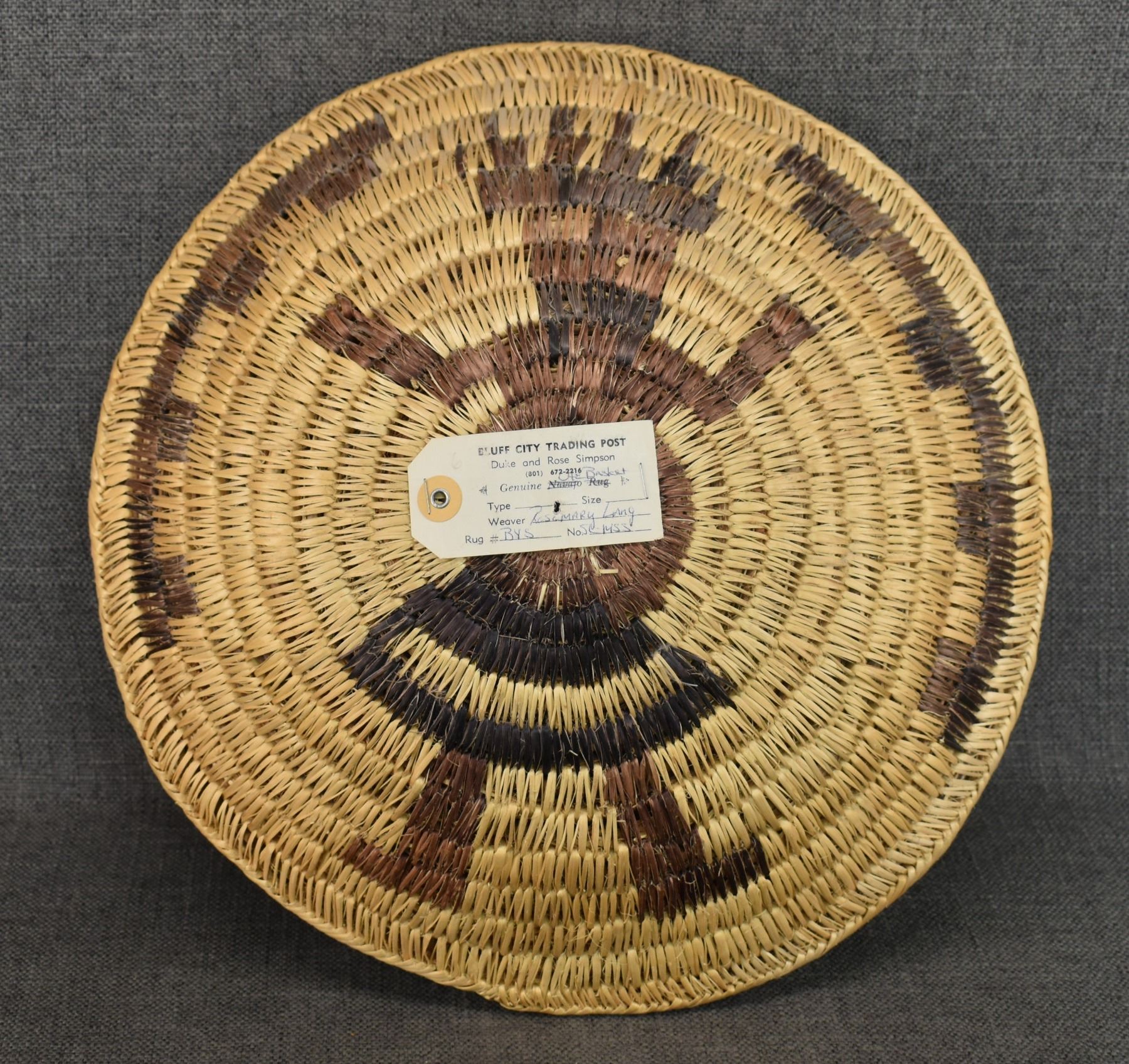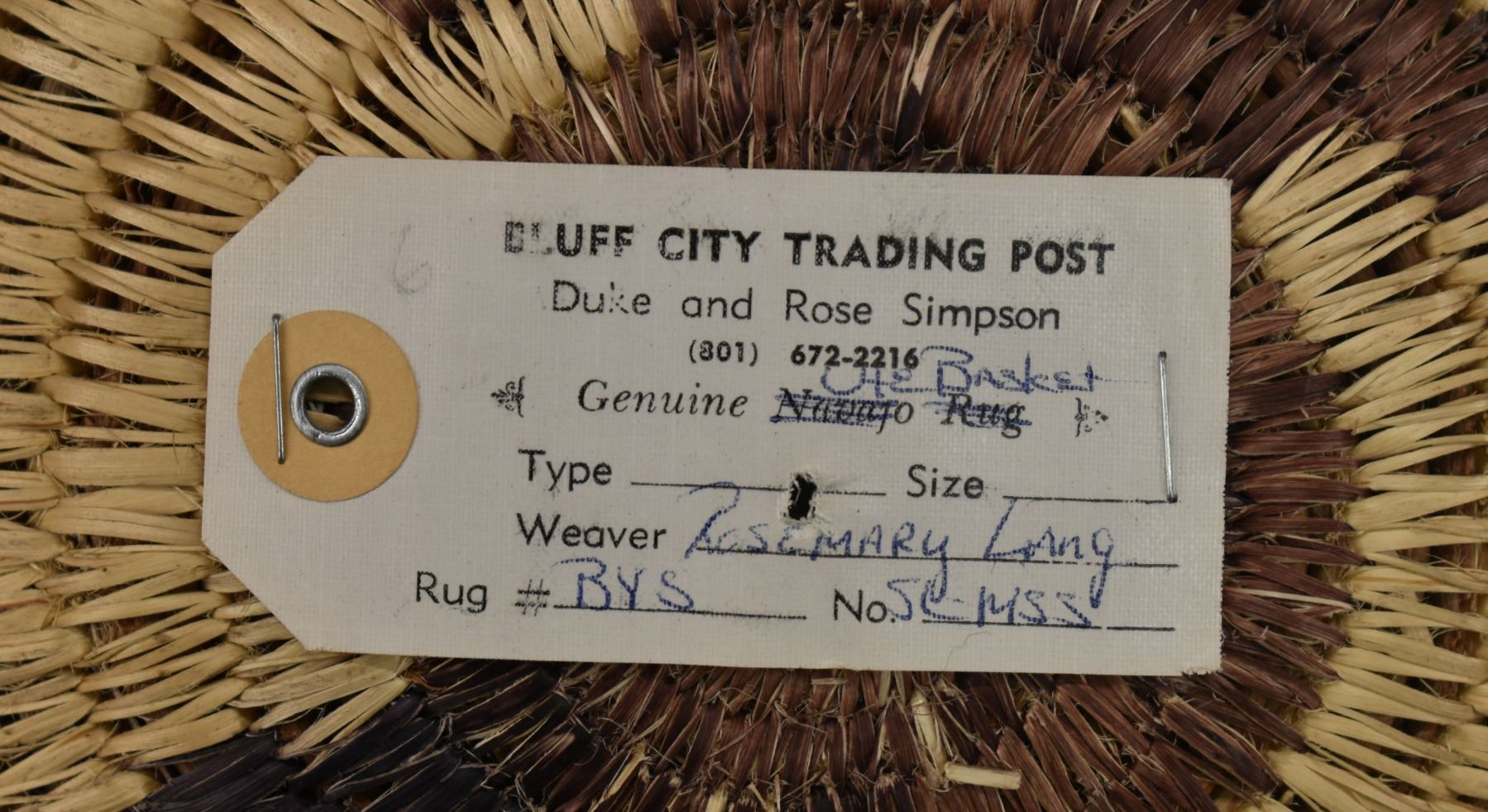 1980's Navajo. Hand woven design depicting mud head kachina. By Rosemary Long. Has fade. 3.5'' x 14''