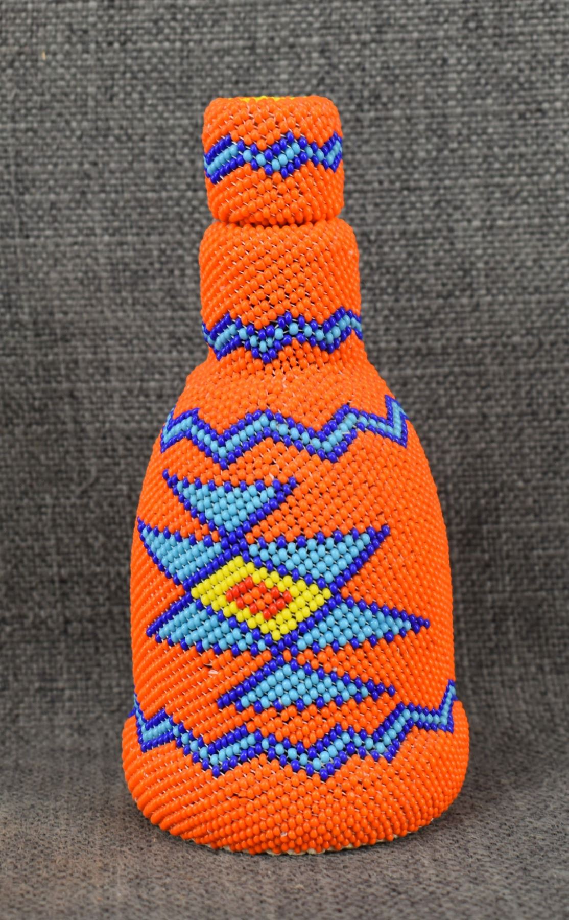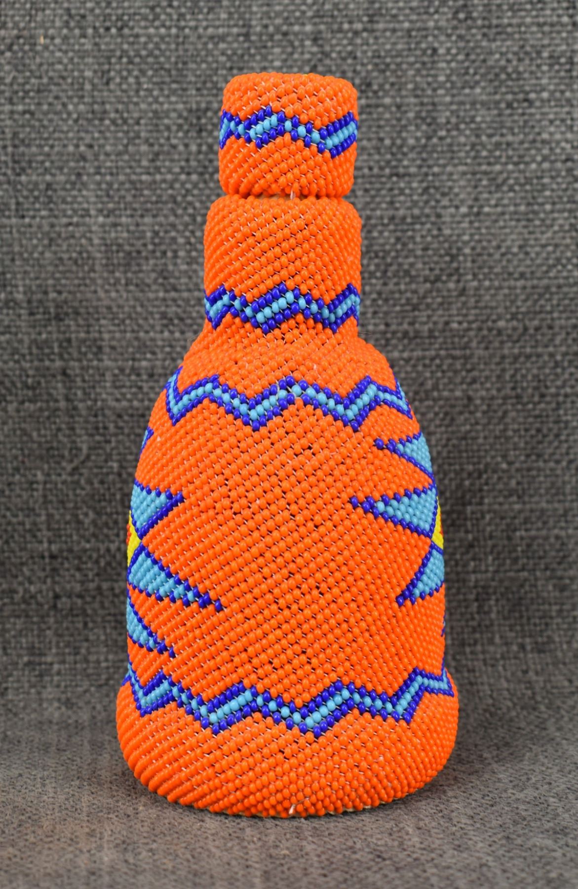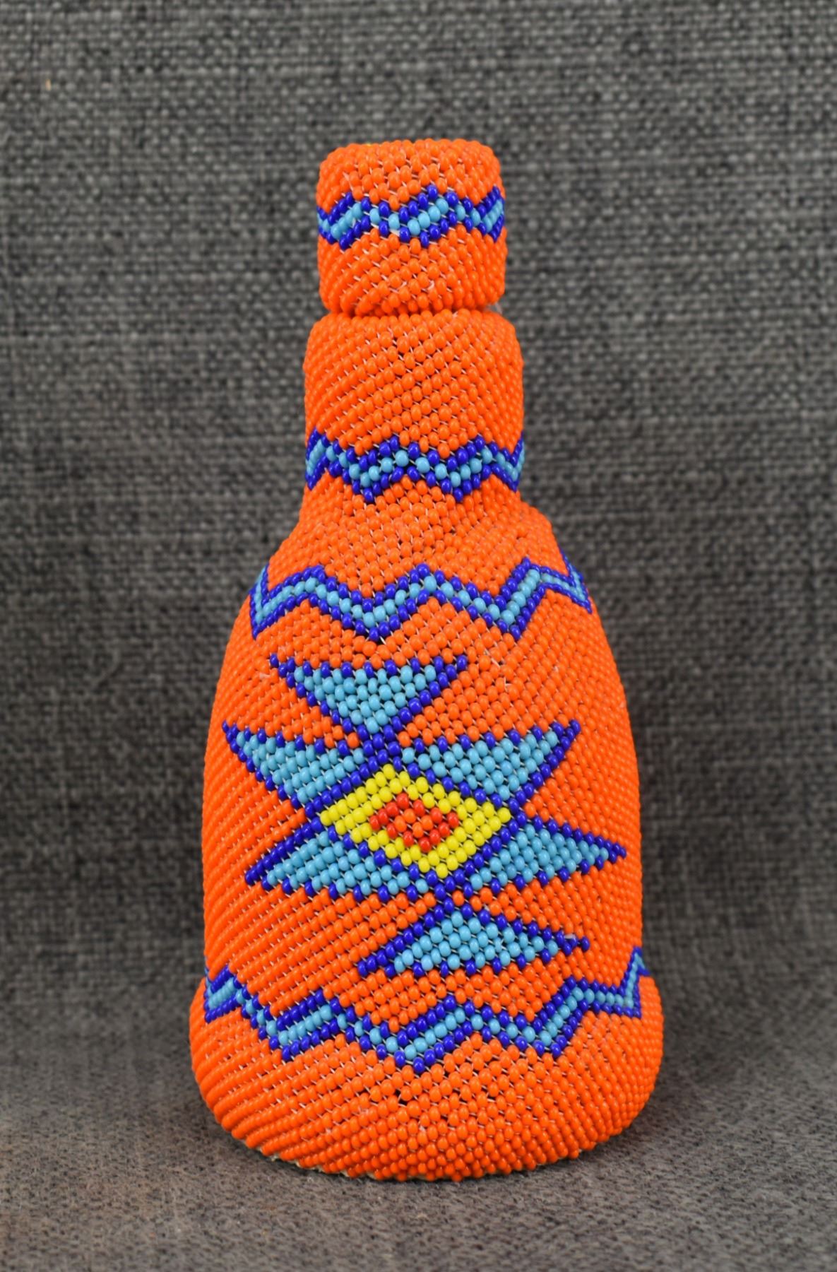 1980's Navajo, loom beaded geometric design over glass bottle 5.75" x 2.75"