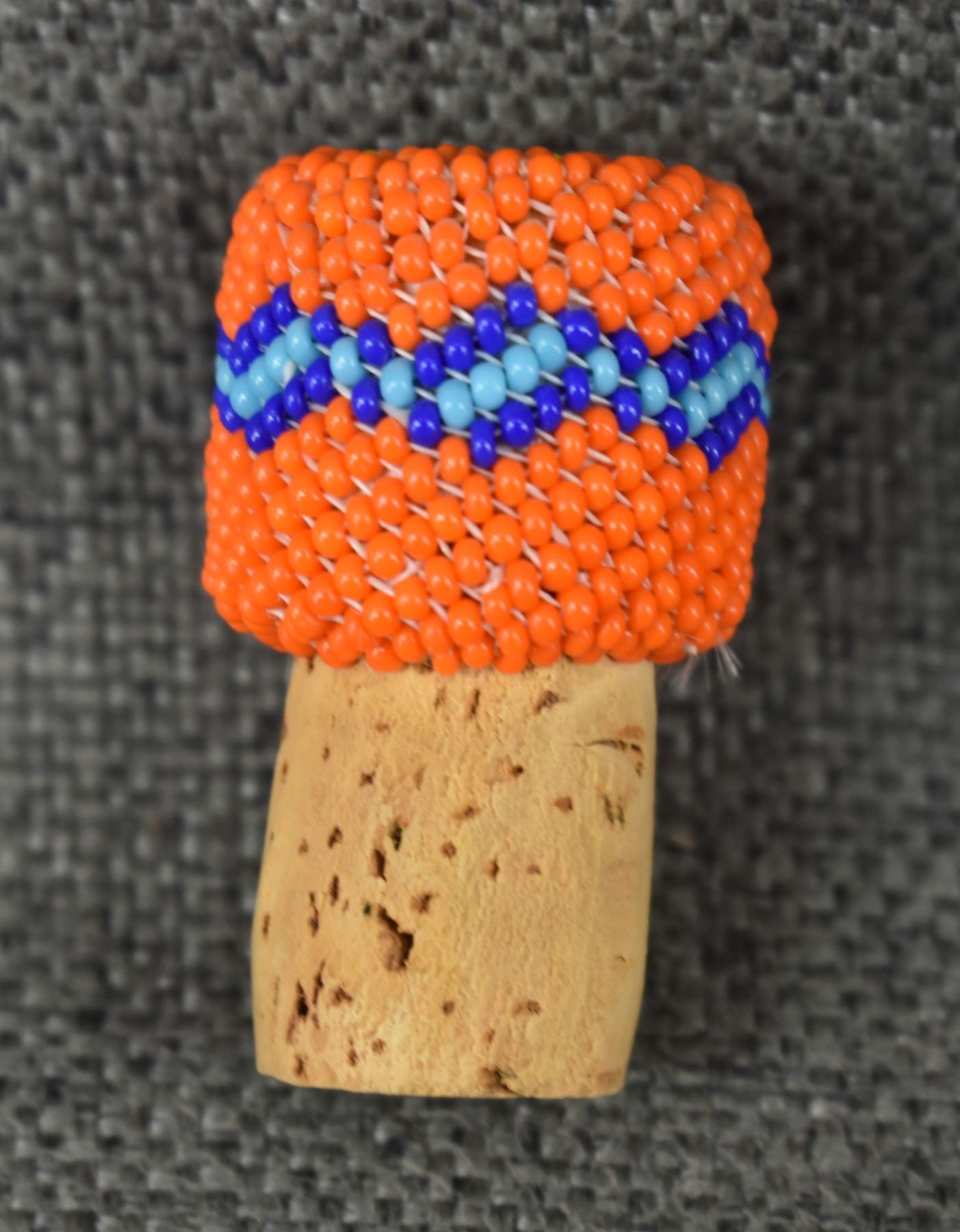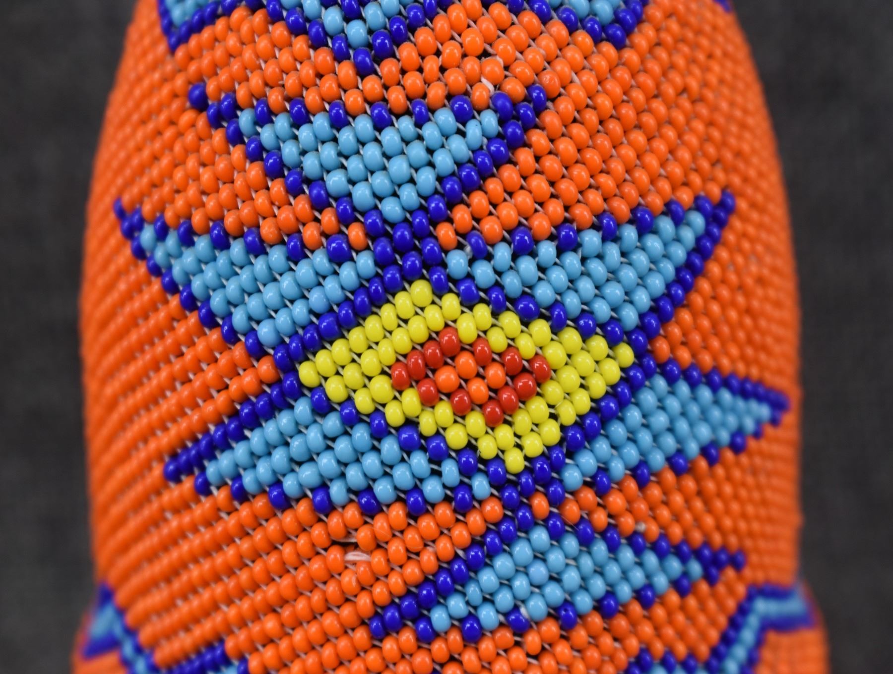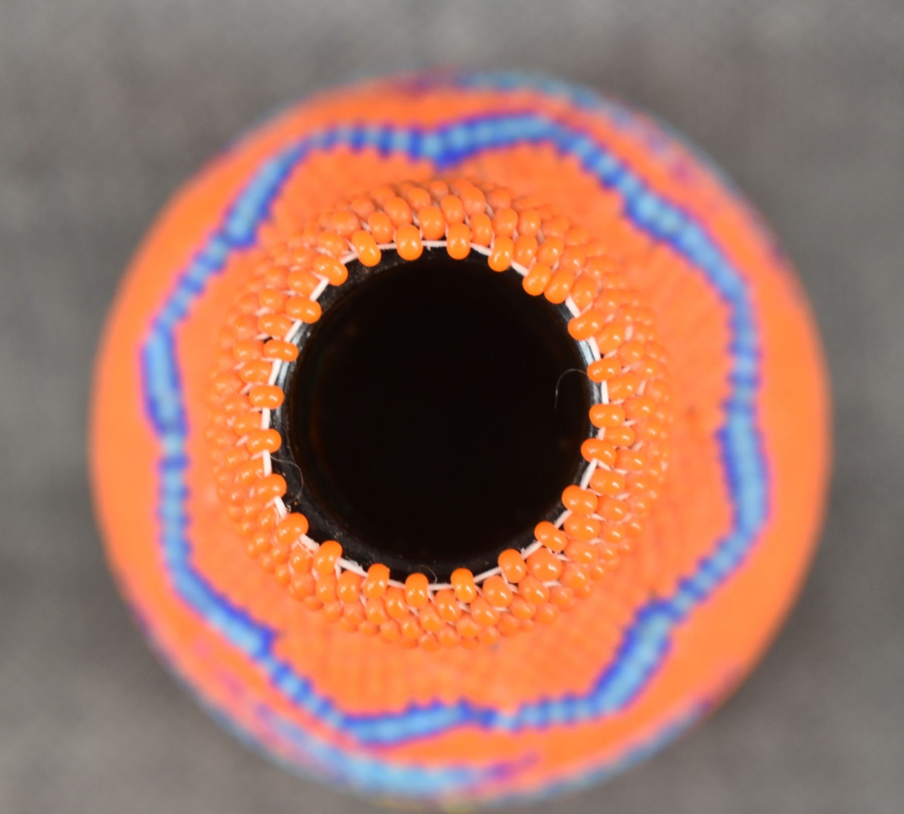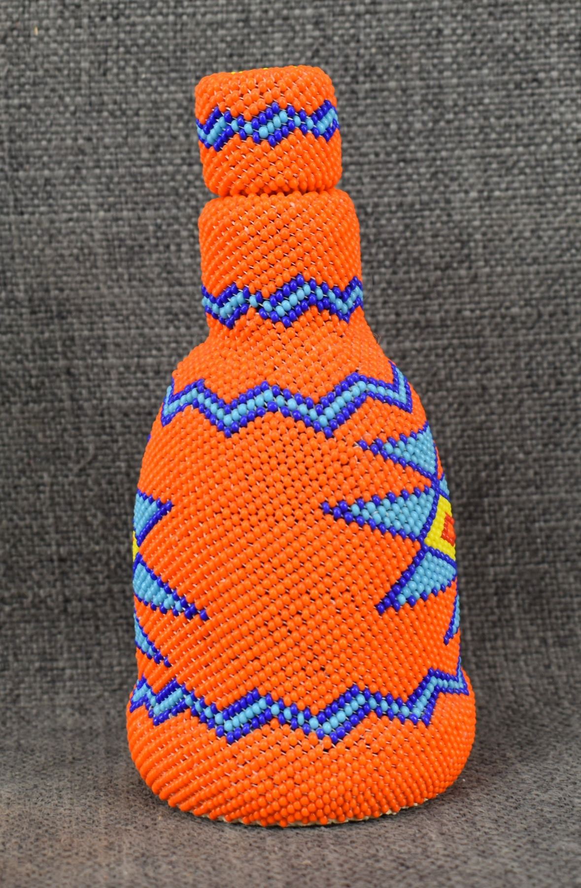 1980's Navajo, loom beaded geometric design over glass bottle 5.75" x 2.75"