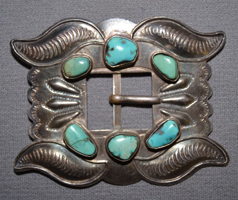 1960's sterling silver and turquoise 2.5" x 3.5" made for .75" belt
