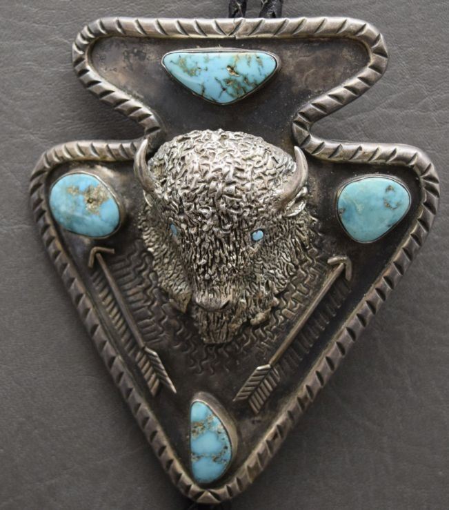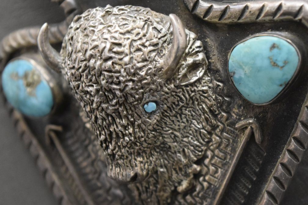 1970's steeling silver and turquoise depicting buffalo 5'' x 4'' total weight 210 total weight