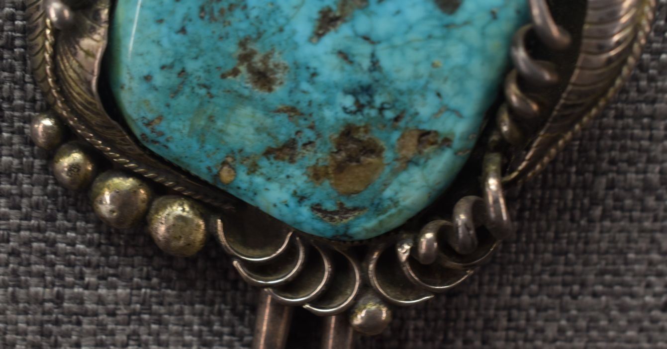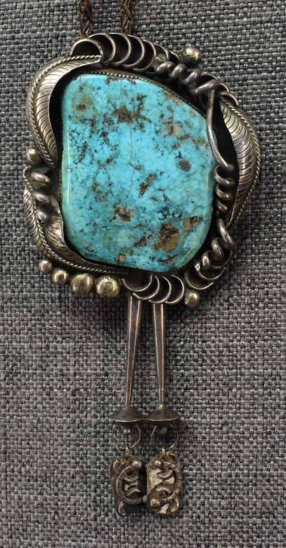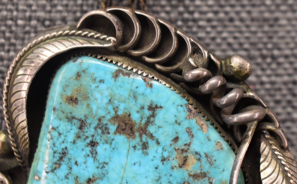 1970-80's Navajo, sterling silver and turquoise signed with hallmark for Cindy Piaso, 3.5" x 3" total weight 147 grams