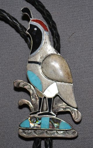 1970s 80s sterling silver channel inlay signed with logo quail design 3.25" x 1.5"