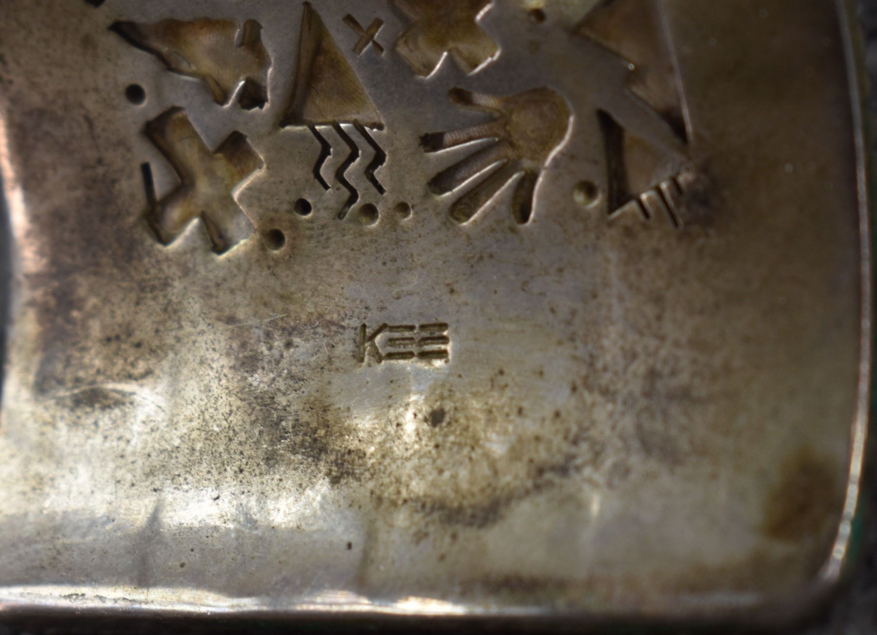1990-2000's Navajo, Sterling silver and 14kt gold cutout and stamped design signed KEE for Kee Yazzie 1.5" x 5.5" x 1.25" total weight 123 grams
