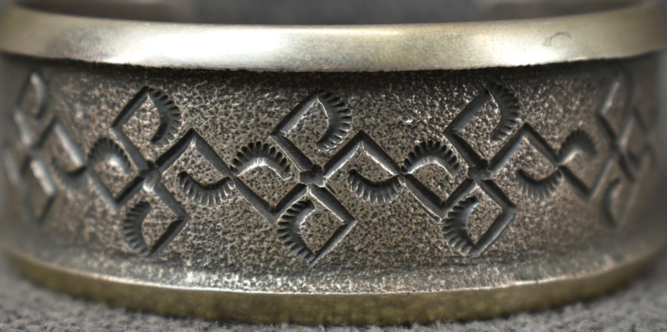 1990-2000's Navajo, sterling silver Tufa cast and stamped design singed Monty Claw with owl head hallmark 1" x 5.75" x 1.5" total weight 63 grams