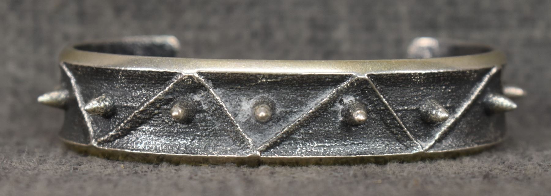 2000's Navajo, sterling silver tufa cast spike design by Monty Claw. .75" x 5.75" x 1.75" total weight 48 grams
