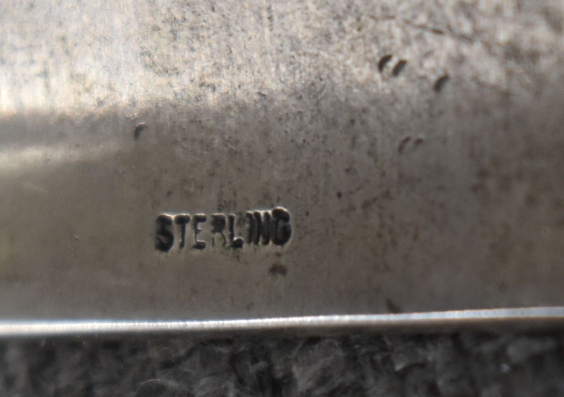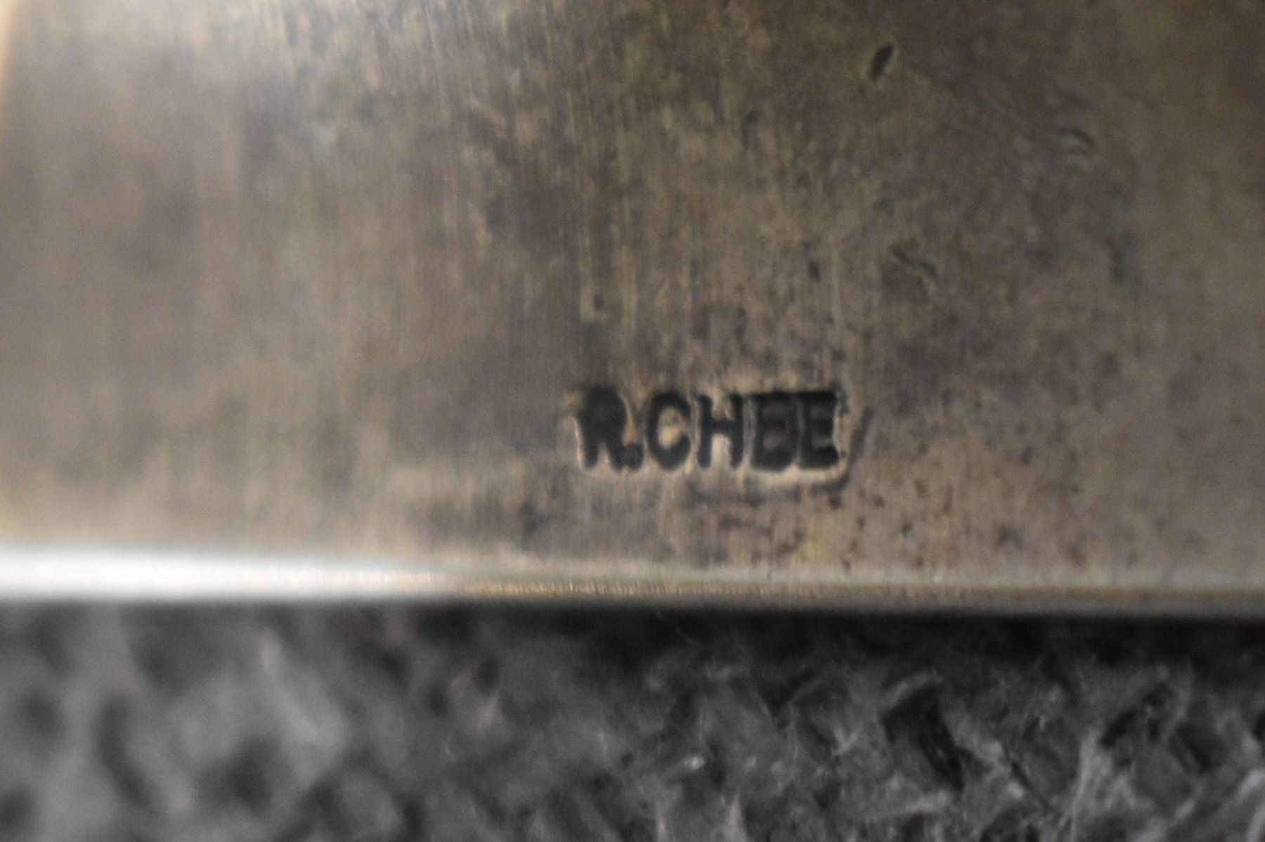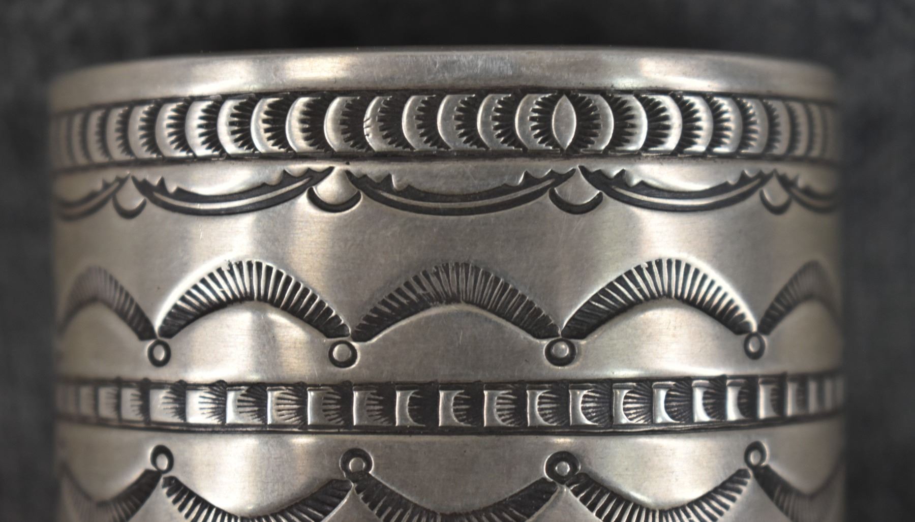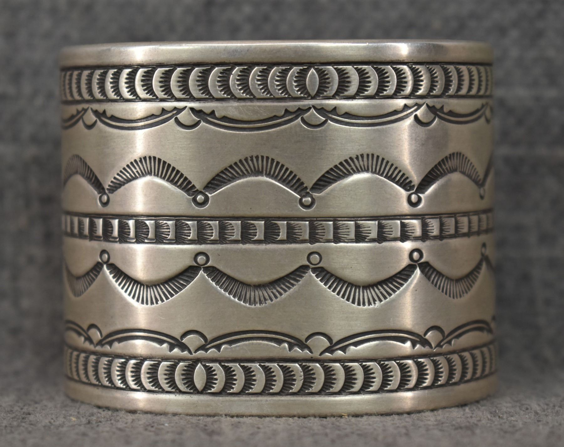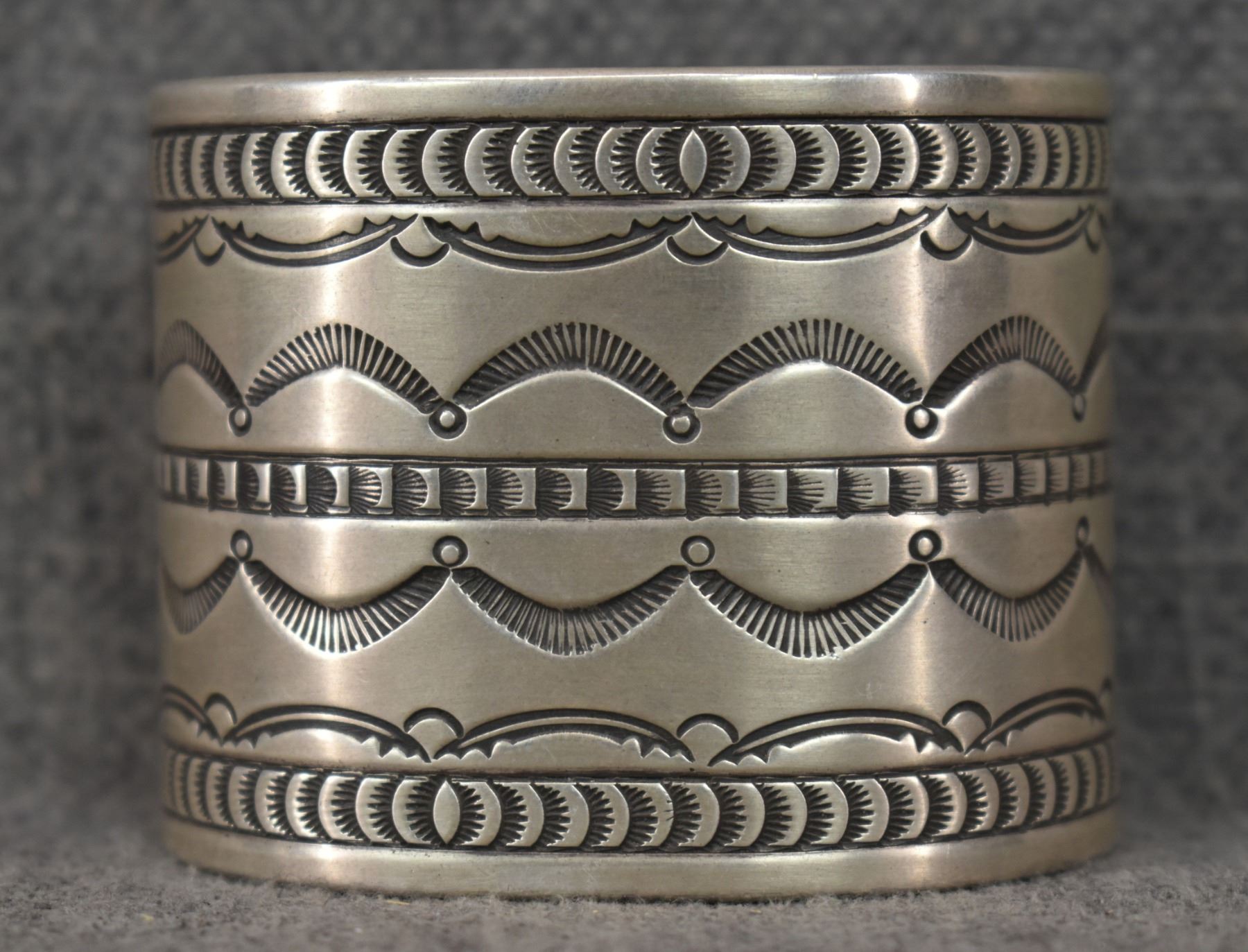 1980's Navajo, sterling silver stamped design signed R. Chee. 2" x 5.75" x 1" total weight 200 grams