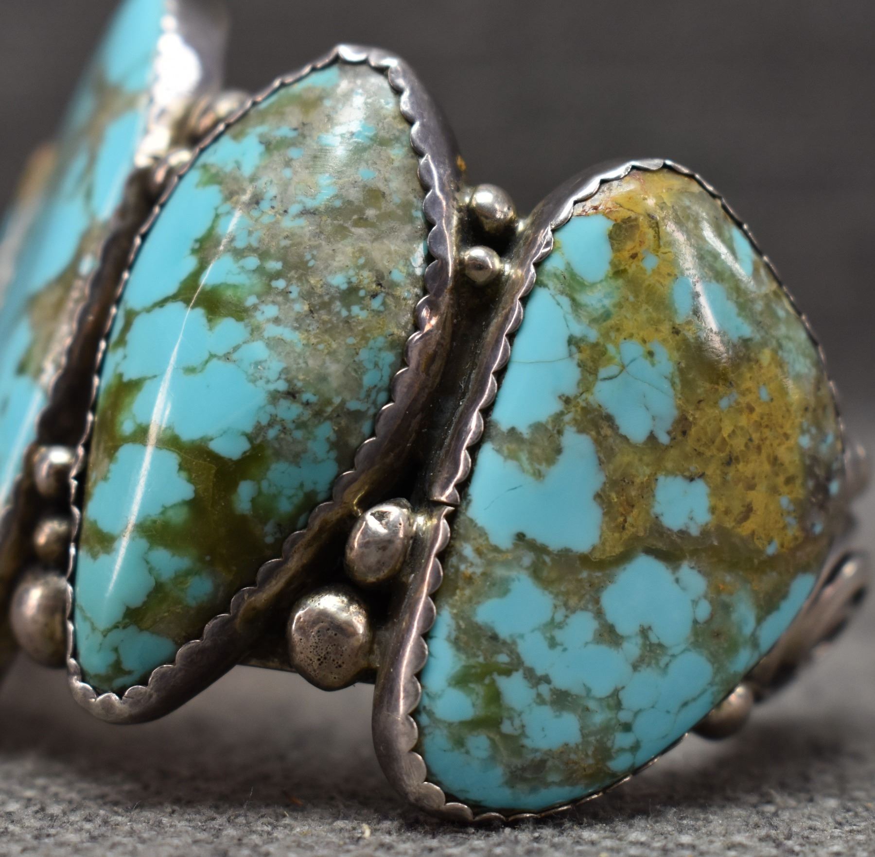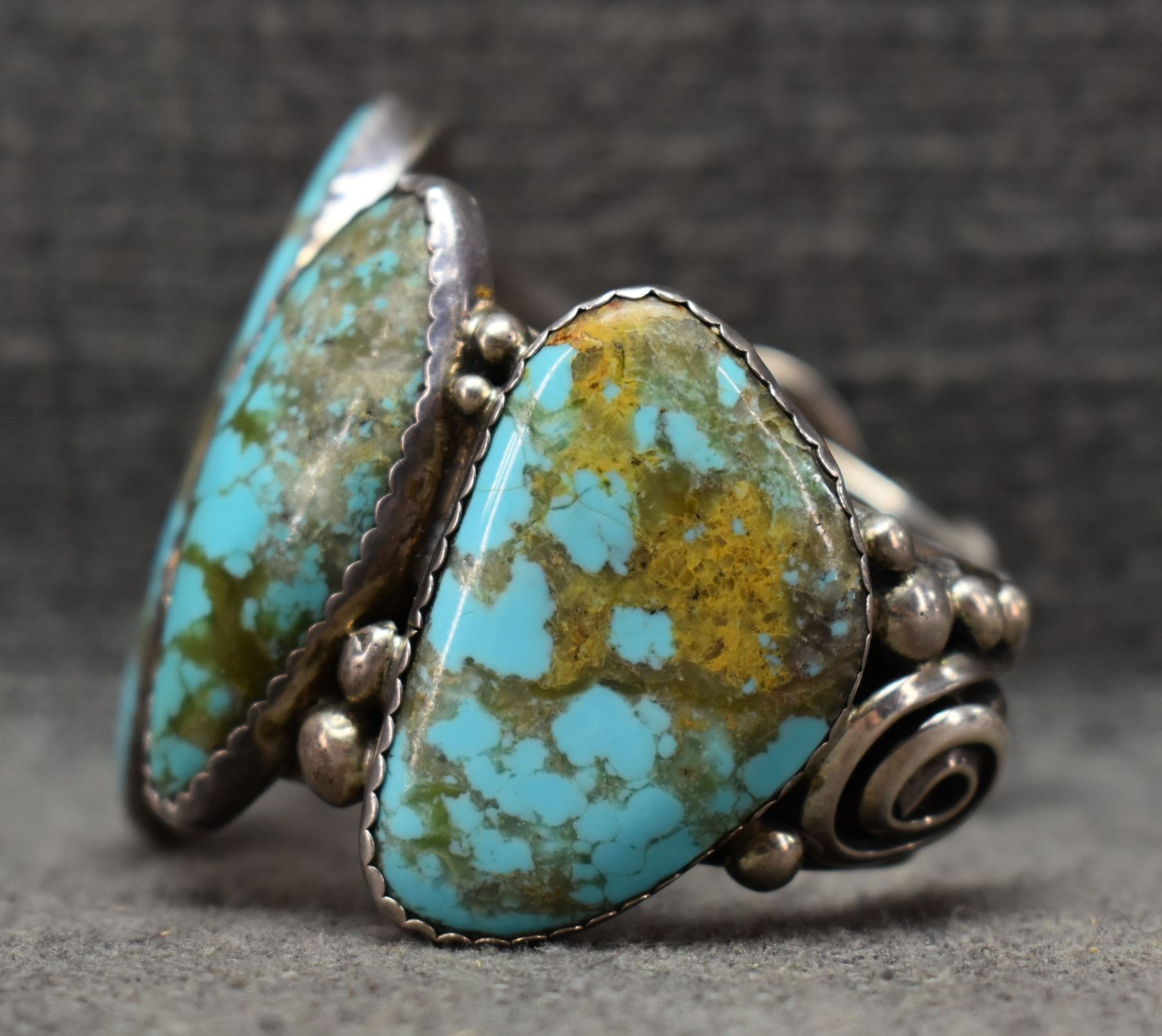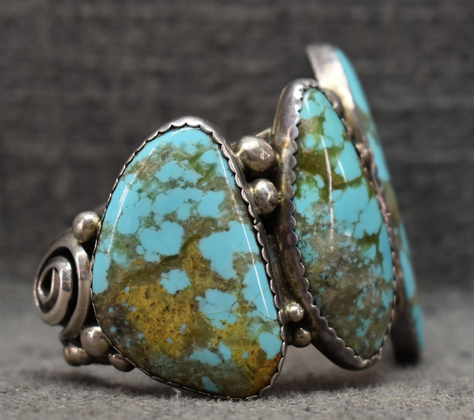 1970-80's Navajo, sterling silver and turquoise signed R. 2" x 5.75" x 1.25" total weight 96 grams