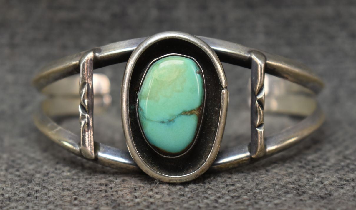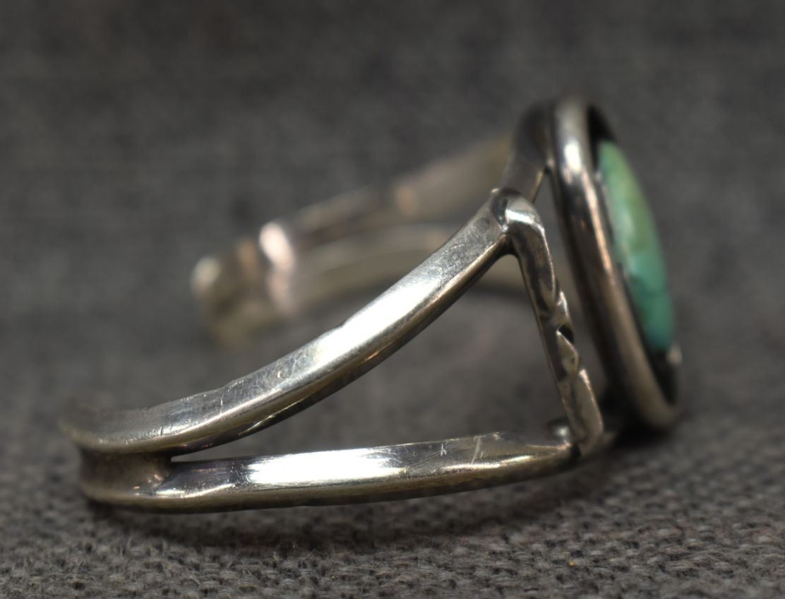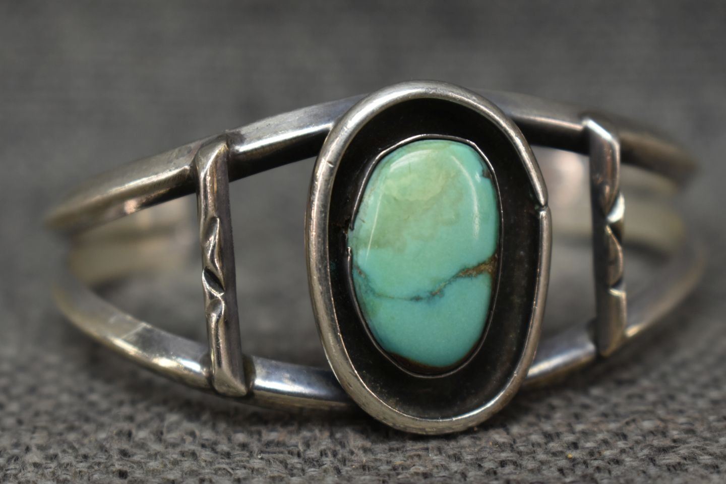 1970's Navajo, sterling silver and turquoise signed with hallmark 1" x 5" x 1.25" total weight 28 grams