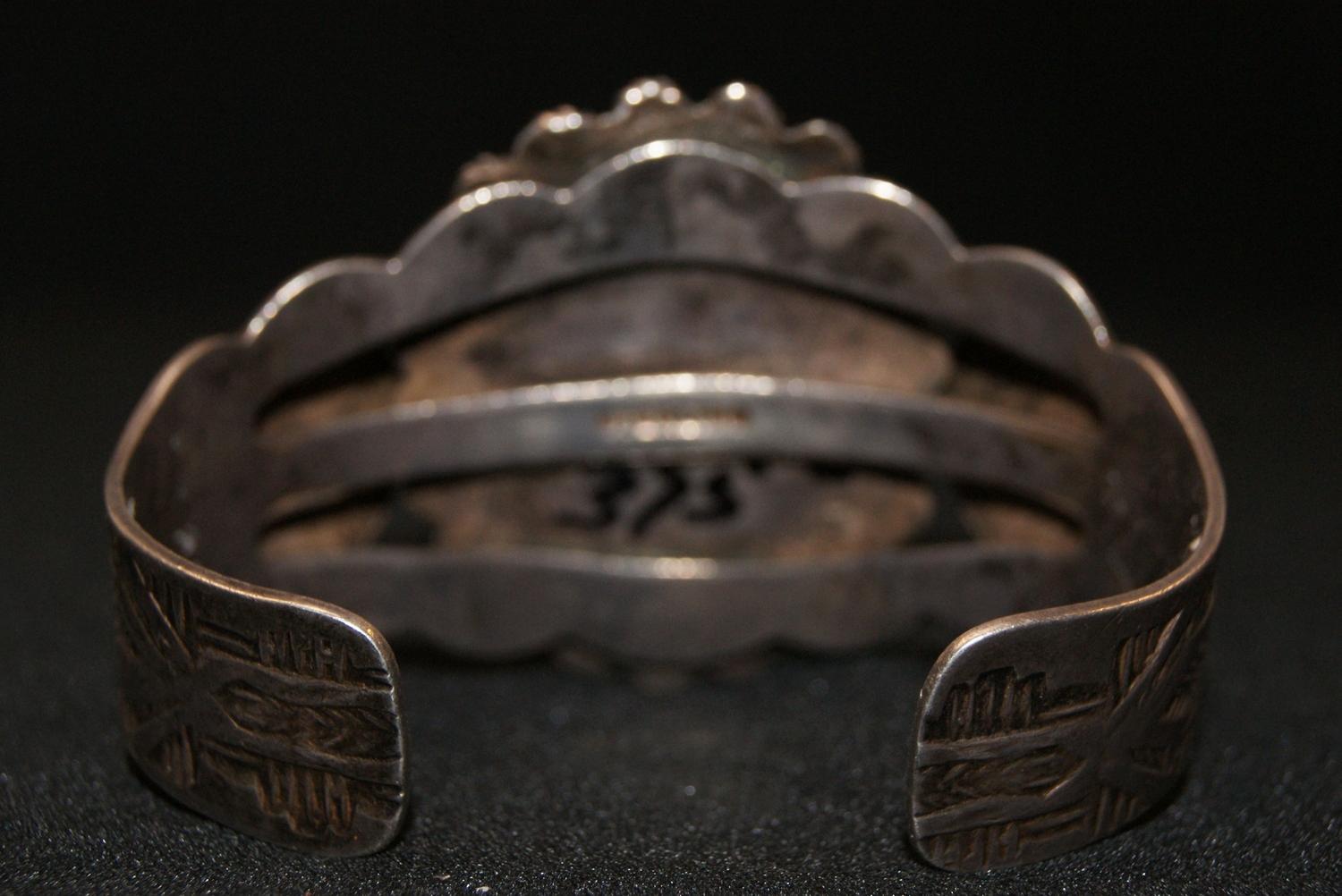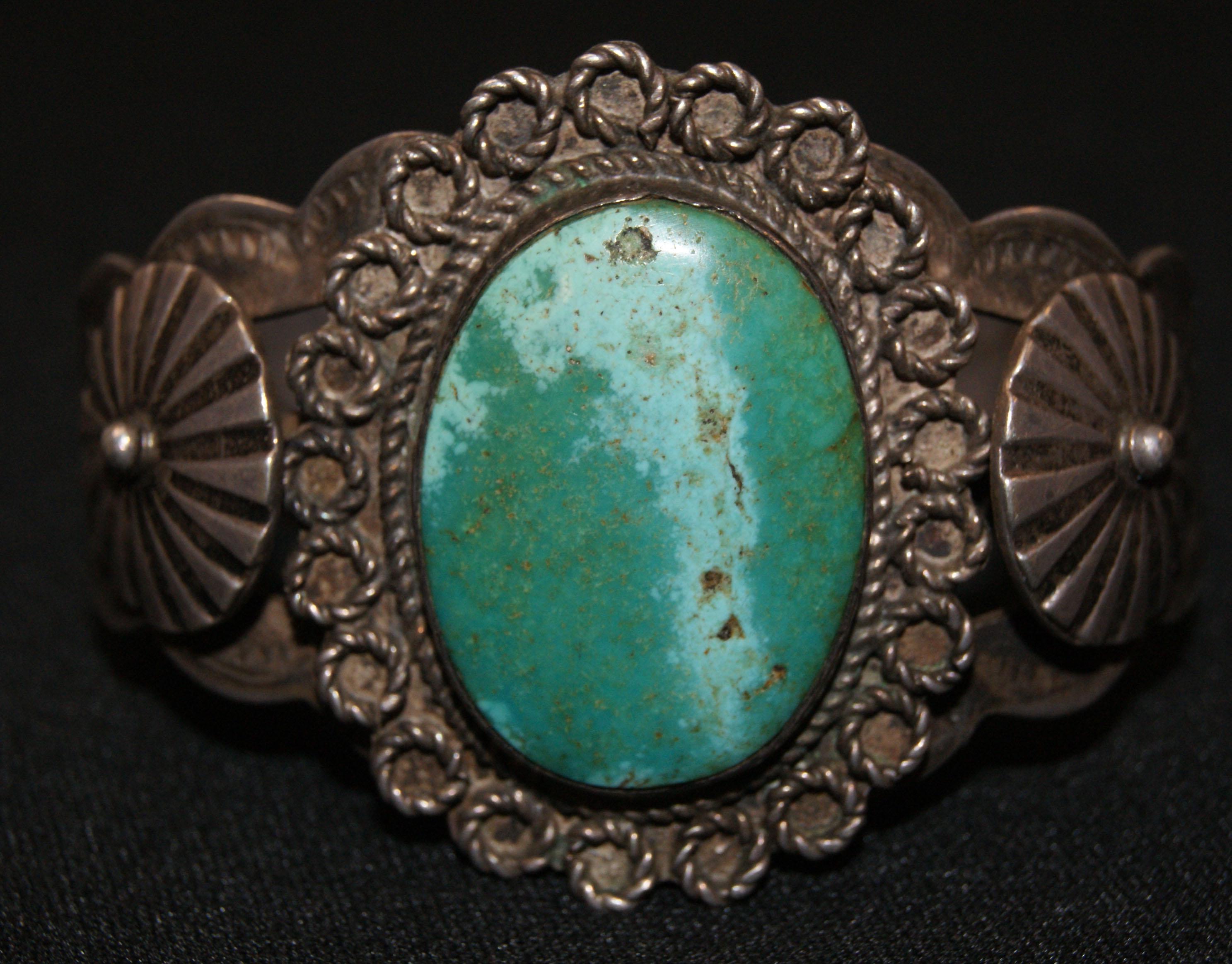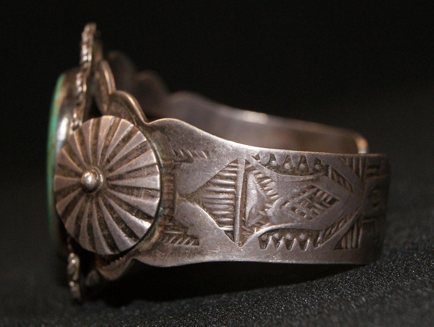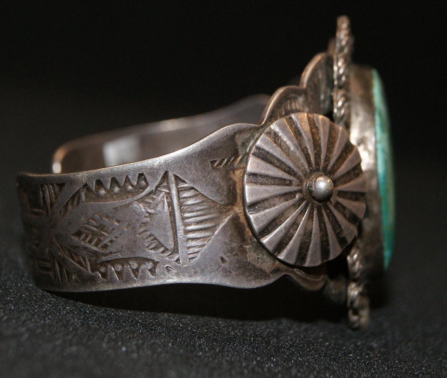 1950's sterling & turquoise, stamped design, 5.5" x 1.75" x 1"