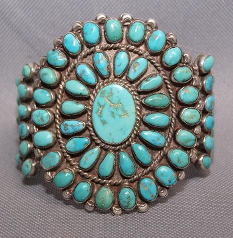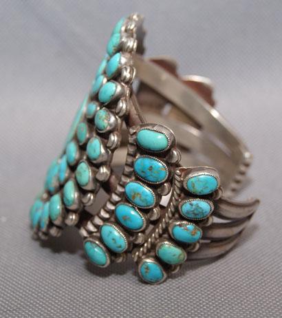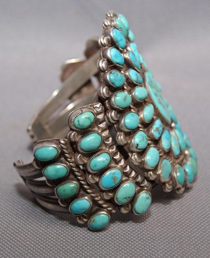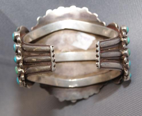 1960s heavy sterling silver and turquoise, 6" x 3" x 1"