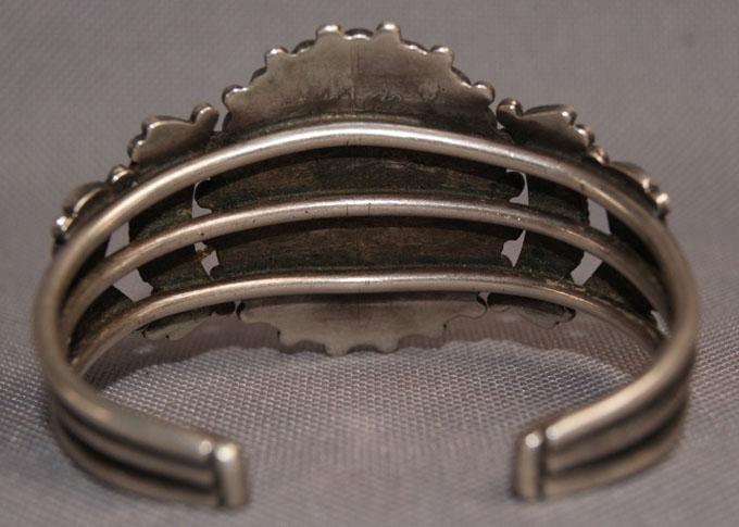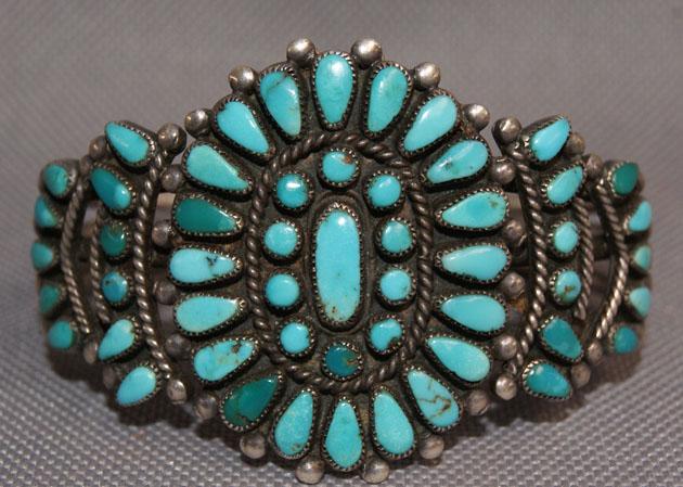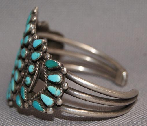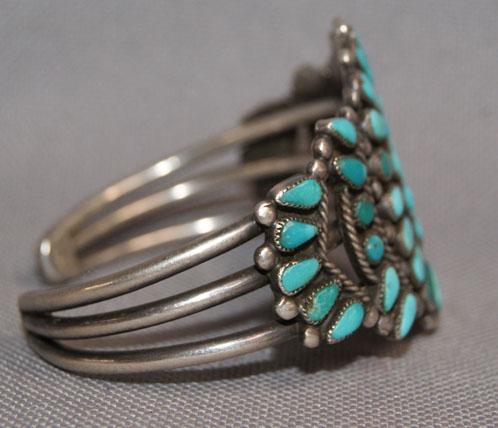 1950s 60s sterling silver and turquoise cluster style 1.5" x 5.25" 1 inch opening