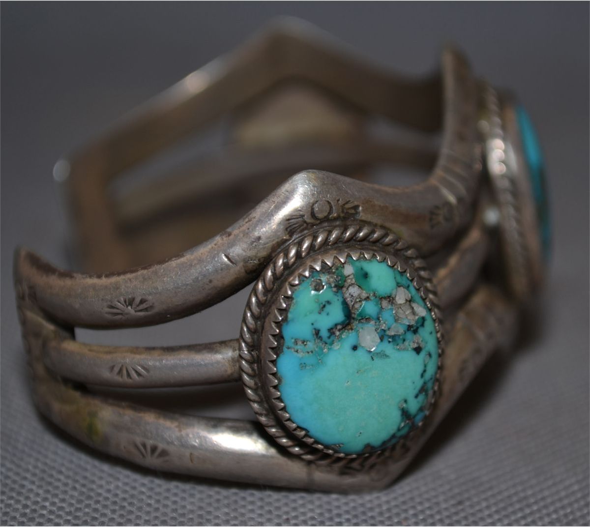 1960s sterling silver and turquoise 5.5" x 1.5" x 1.5"