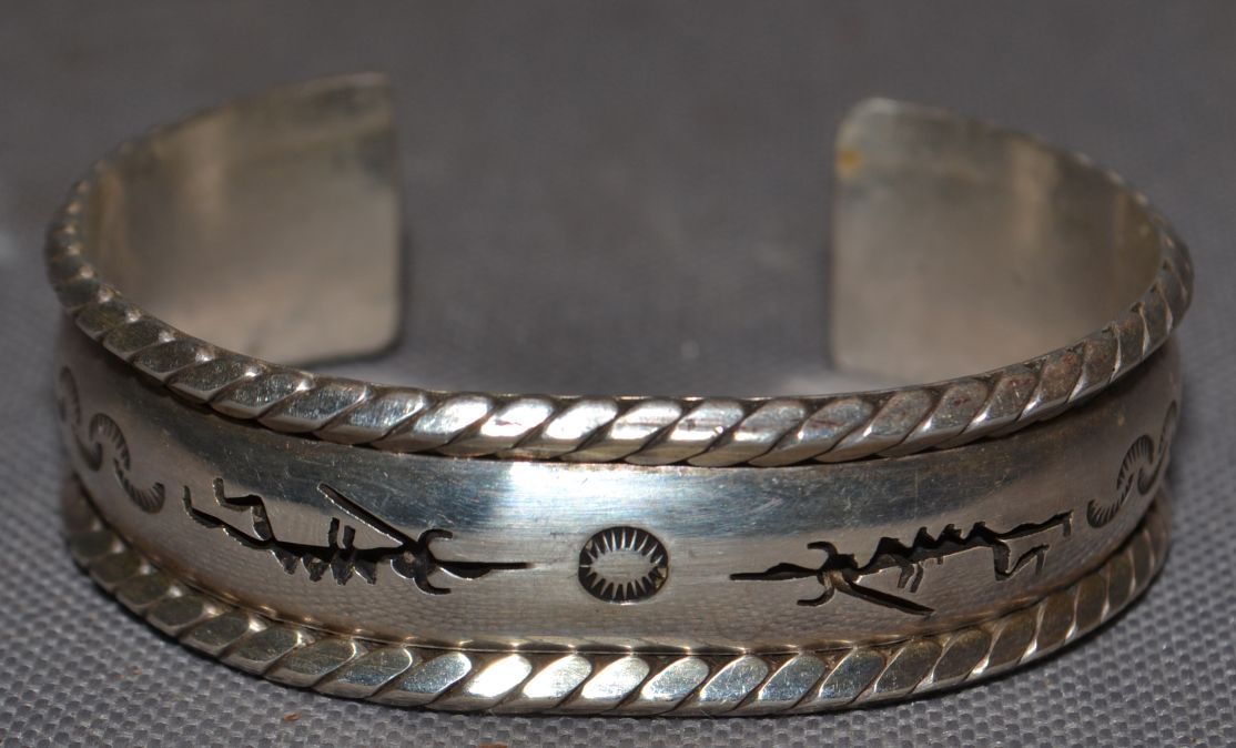 Unless noted all items have some amount of acceptable wear, scratches, nicks, missing stitches, ect. for their age. Measurements on paintings and pictures are image size, paintings and pictures that are in frames have not been examined outside the frame. Bracelets measurements are opening, inside circumference, width.