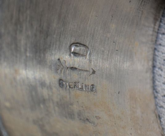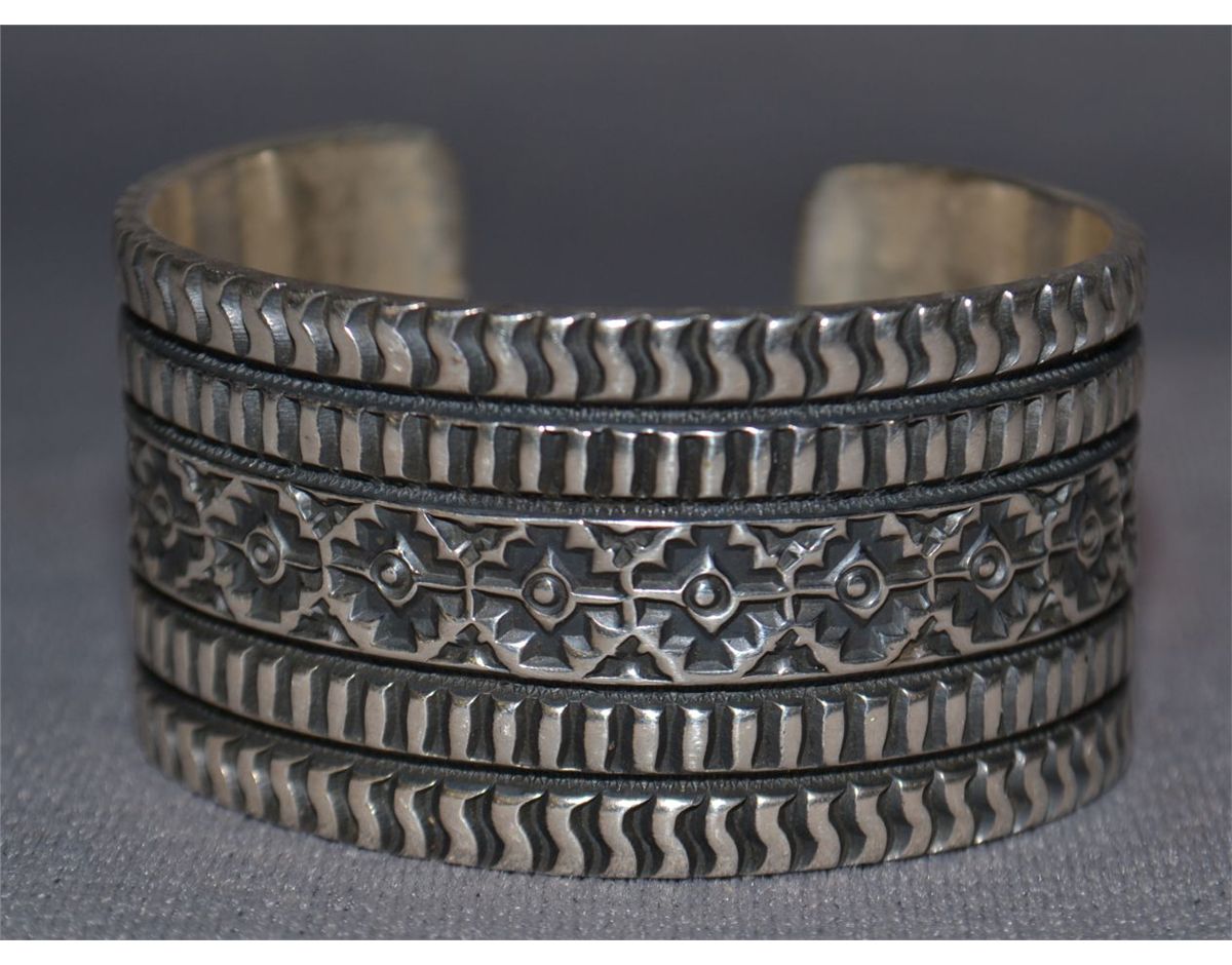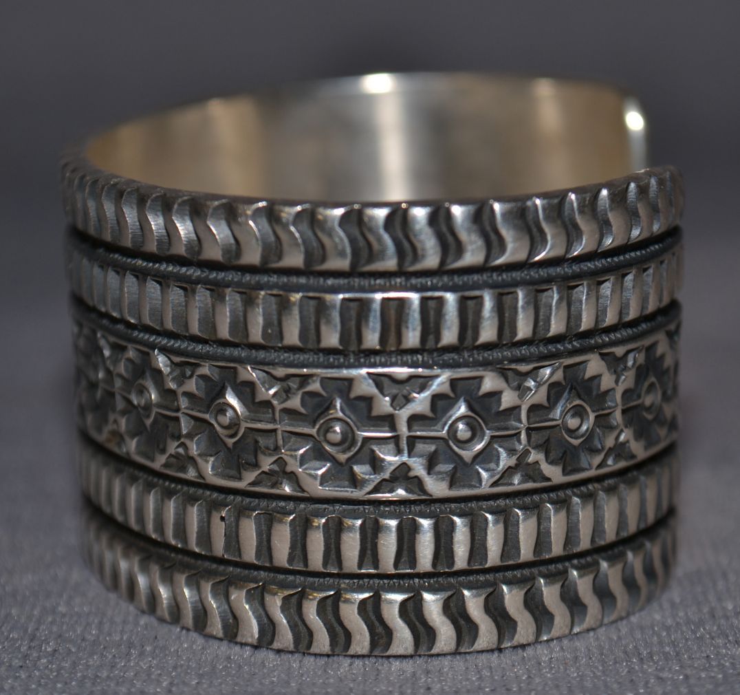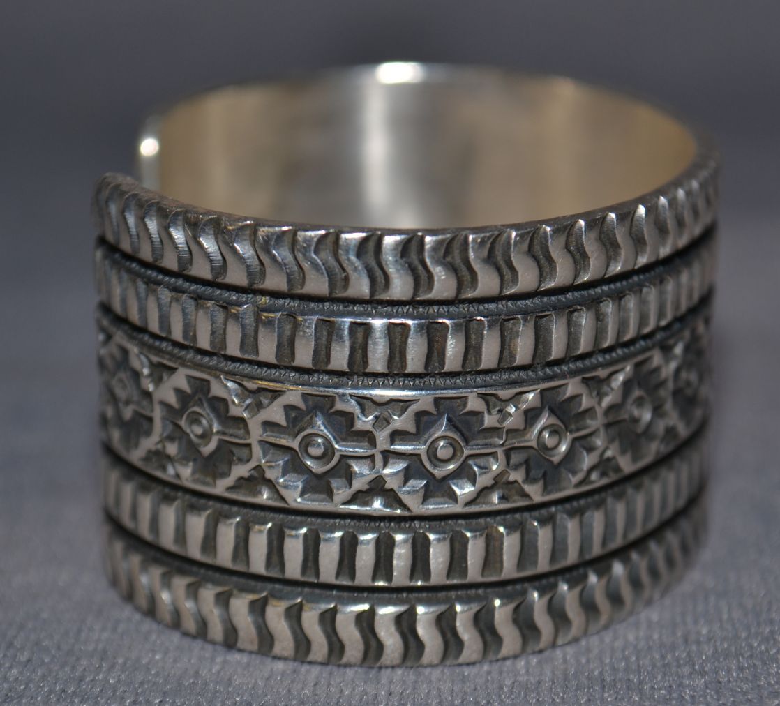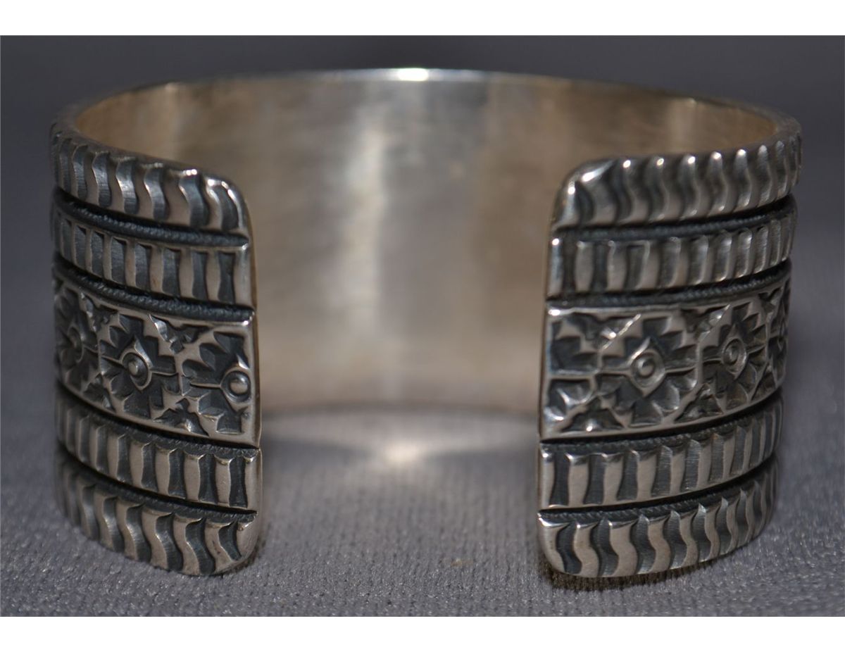 1980s sterling silver busy stamp design 4.75" x 1.25" x 1"