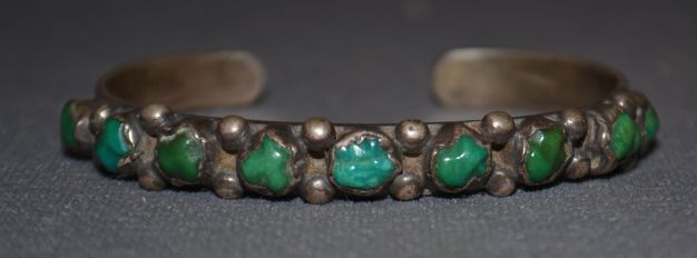 1950s 60s sterling silver 9 turquoise stones 5.25"x.25"x1"