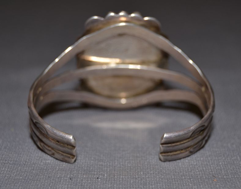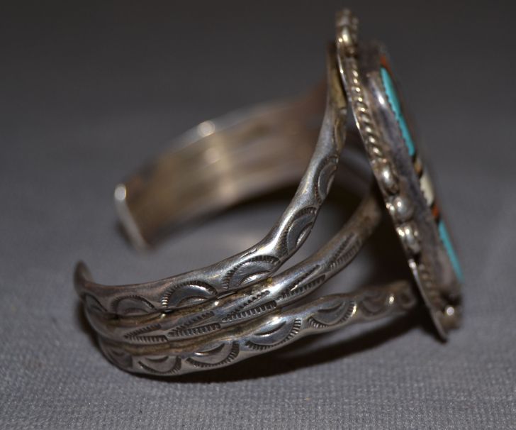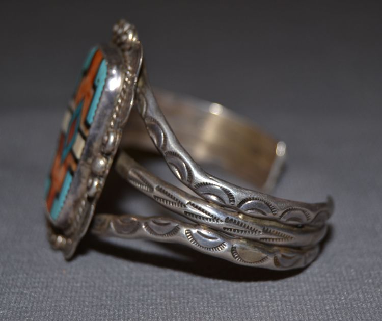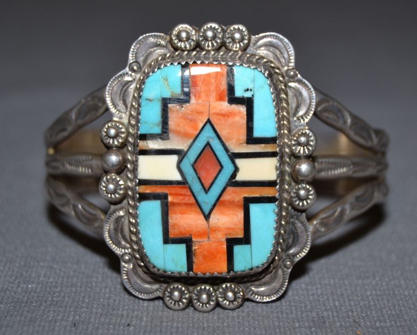 1970s 80s sterling silver stamped design stone to stone inlay 4.25"x2"x1"